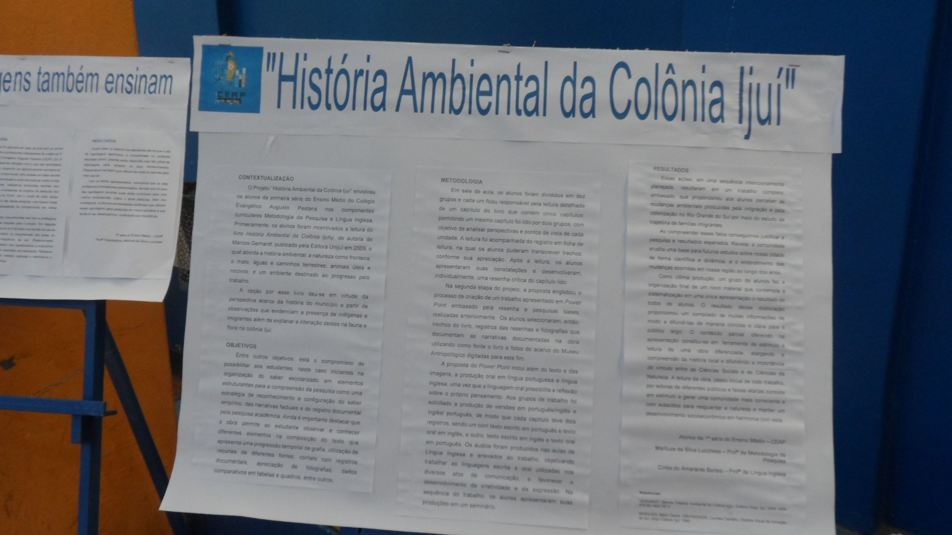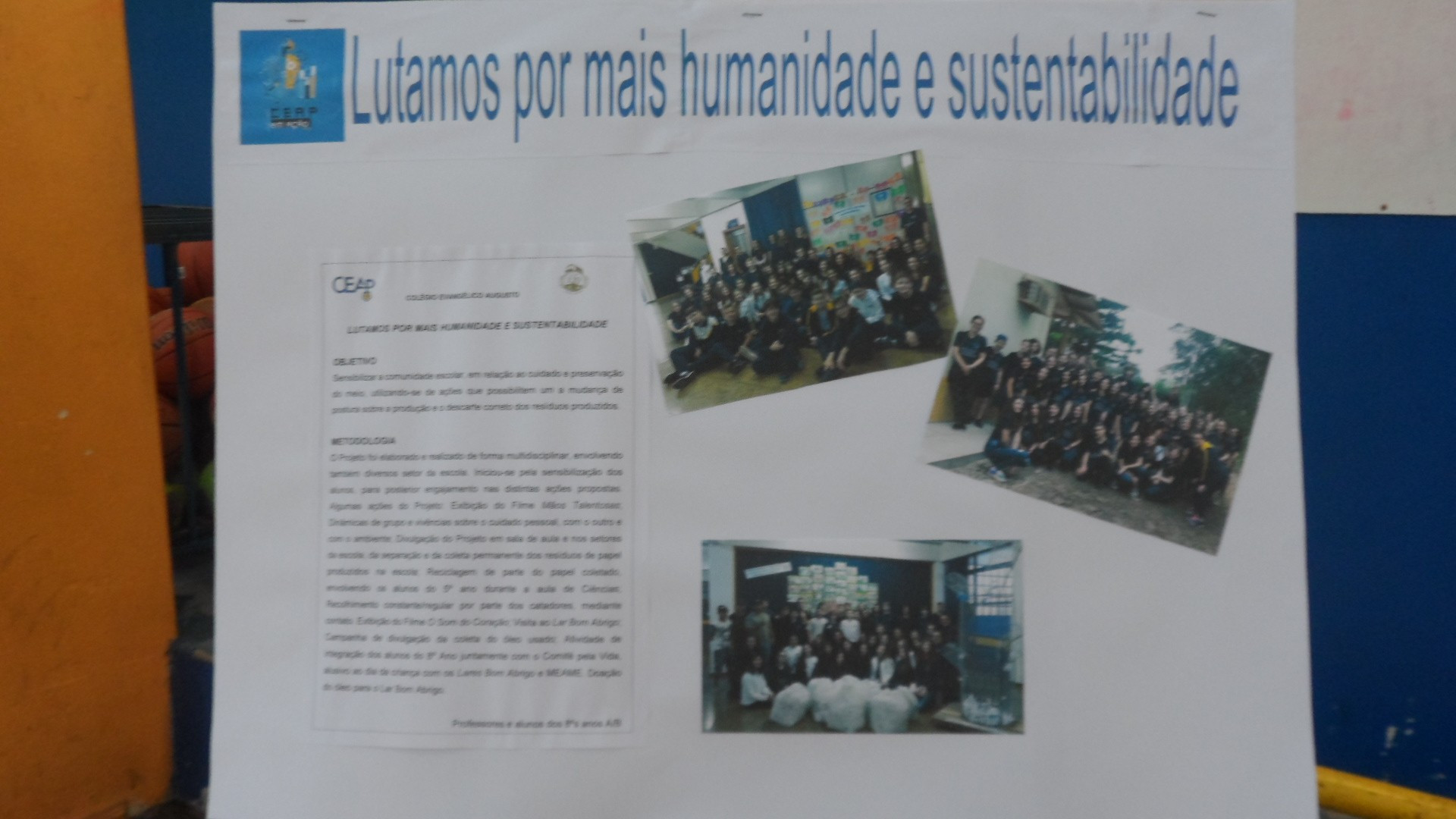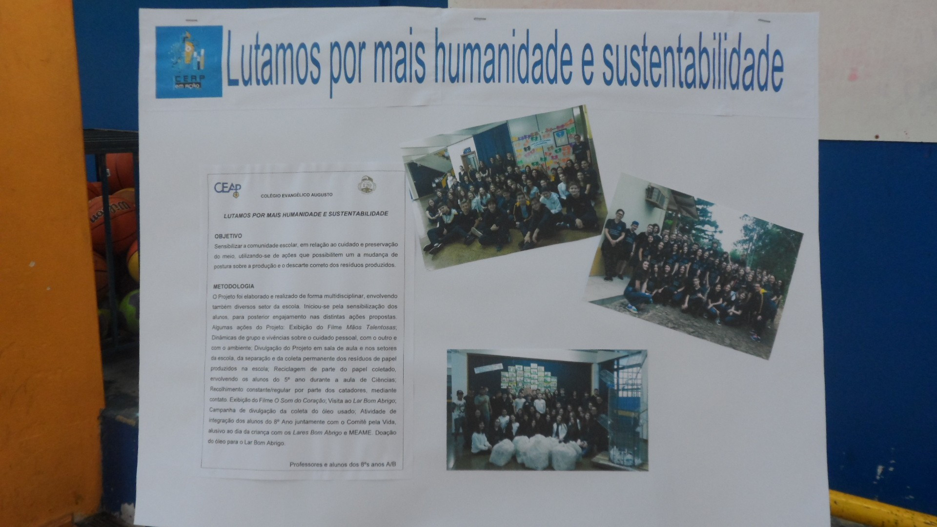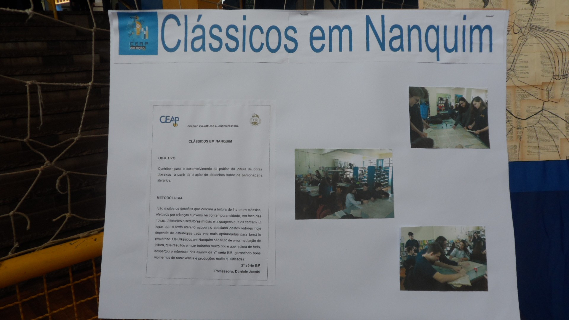 O CEAP em Ação aconteceu no dia 3 de outubro, na quadra de esporte da escola e contou também com a participação de trabalhos apresentados por outros grupos neste ano. Além dos colegas do CEAP, também prestigiaram a produção dos estudantes da 2ª série do Ensino Médio do CEAP, alunos de escolas convidadas como: 25 de julho, Tiradentes, Ruizão e Adventista.