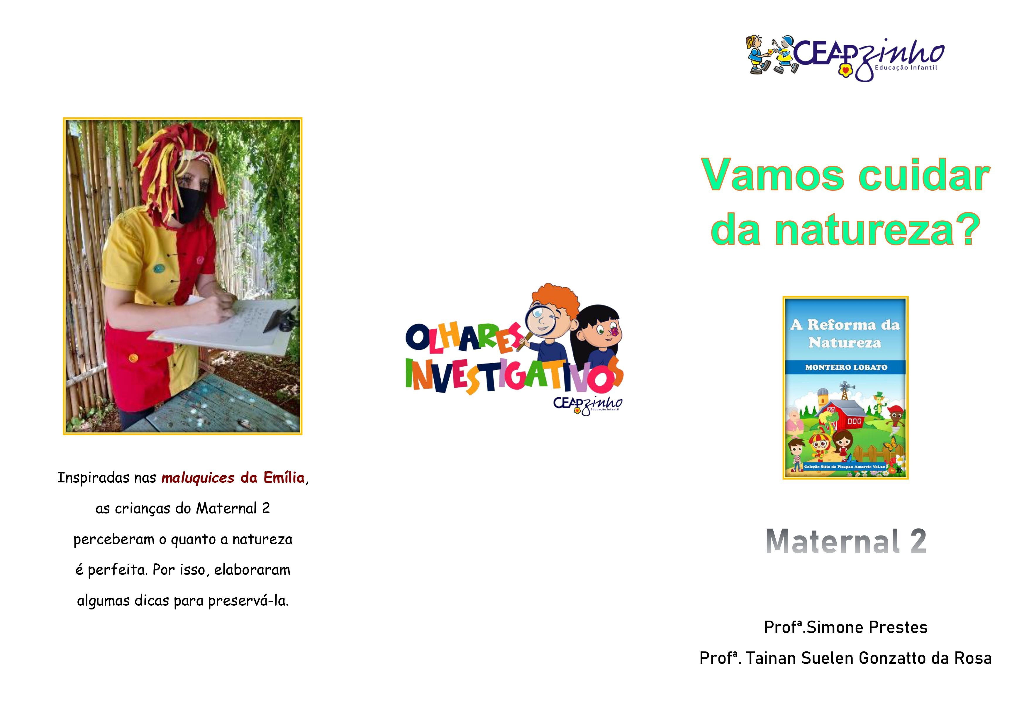 A ação foi desenvolvida pelas Professoras: Tainan da Rosa e Simone Prestes, inspiradas na obra “A reforma da natureza” de Monteiro Lobato.