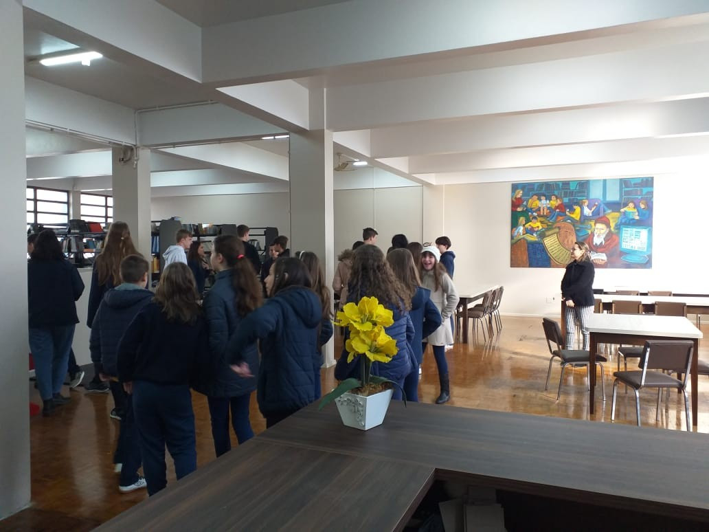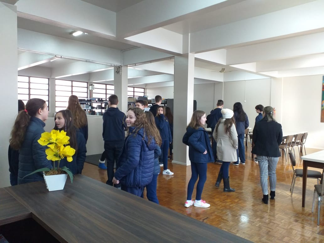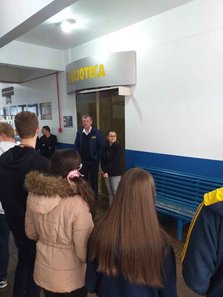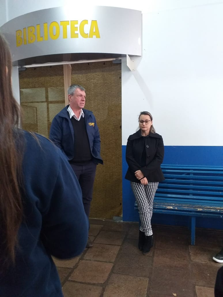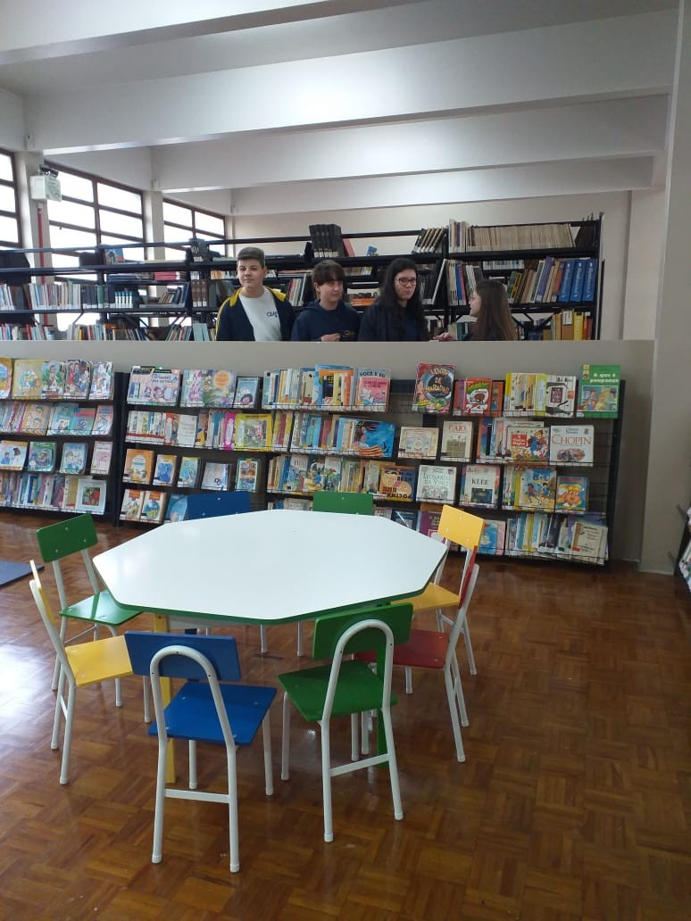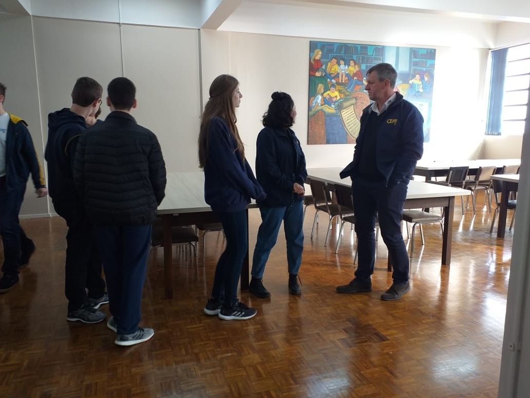 O Diretor Gustavo Malschitzky e a representante da APPA, Letícia Giovelli oficialmente conversaram com alunos representantes de turma, na manhã de terça. dia 13 de agosto, para apresentaram aos alunos o espaço da Biblioteca Escolar reorganizado. A reforma contou com investimento da Associção de Pais do CEAP.