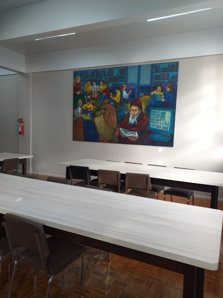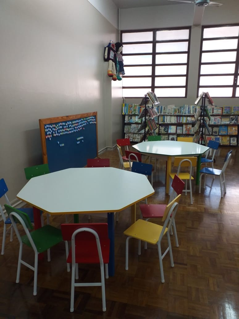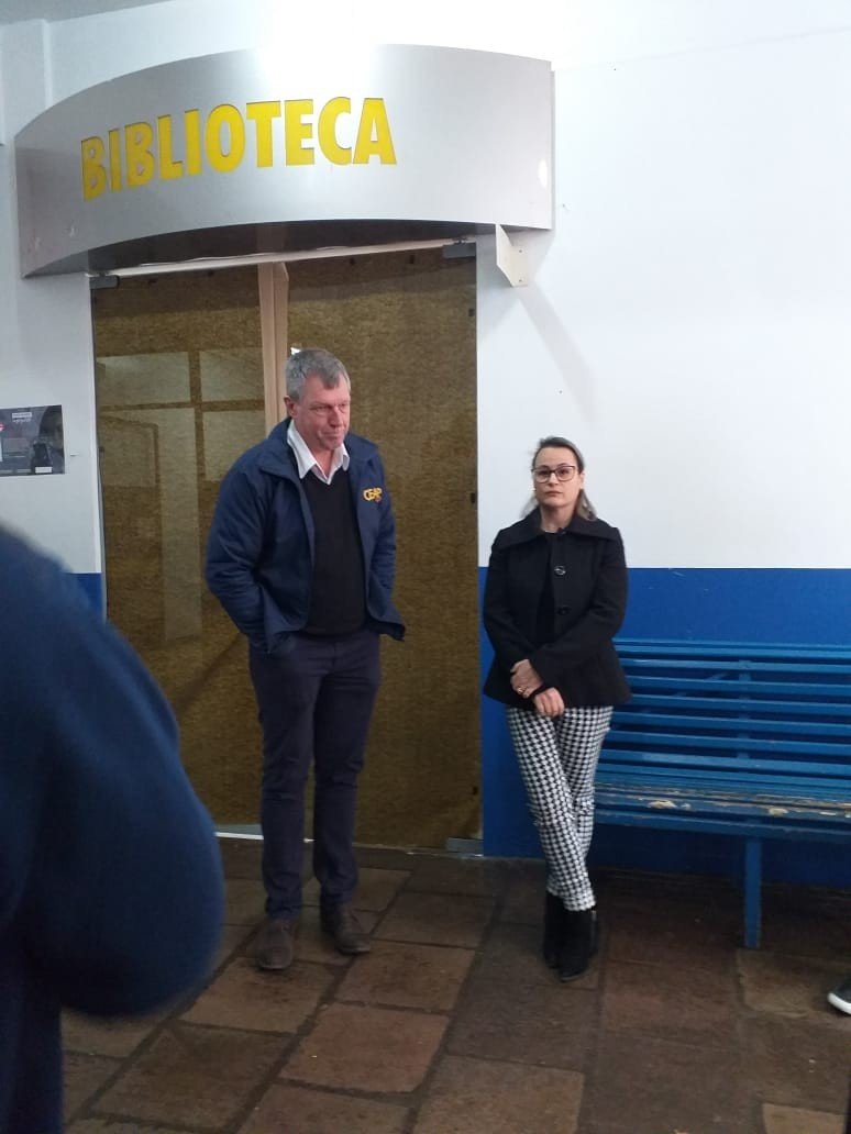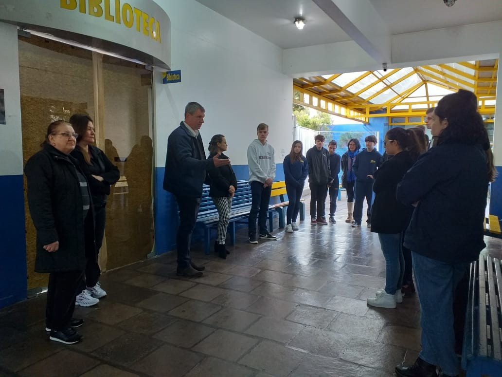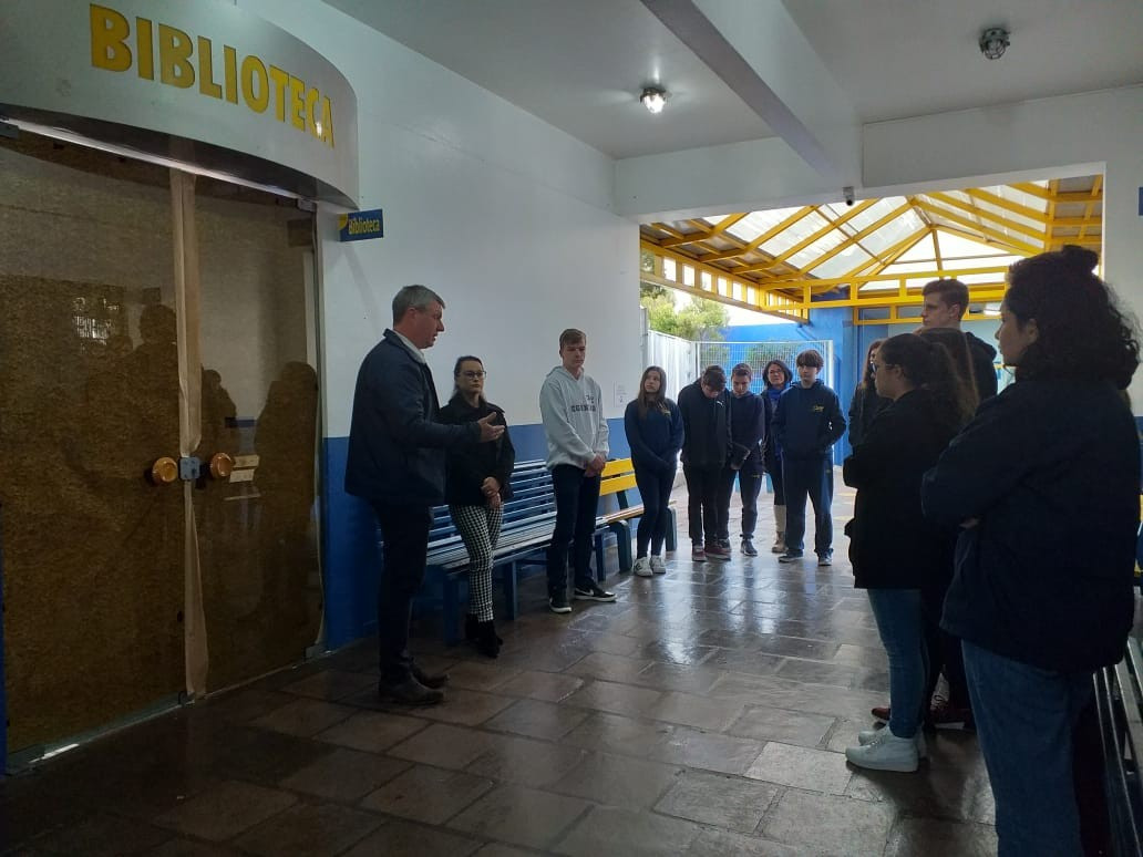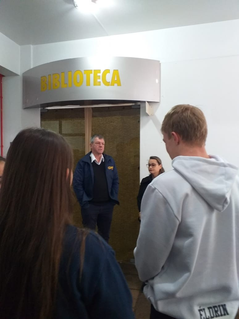 O Diretor Gustavo Malschitzky e a representante da APPA, Letícia Giovelli oficialmente conversaram com alunos representantes de turma, na manhã de terça. dia 13 de agosto, para apresentaram aos alunos o espaço da Biblioteca Escolar reorganizado. A reforma contou com investimento da Associção de Pais do CEAP.