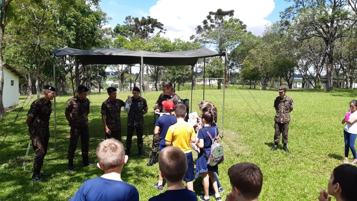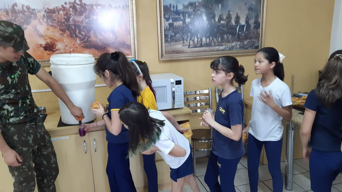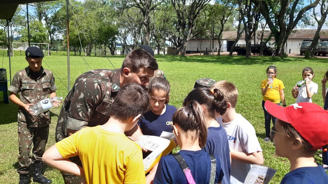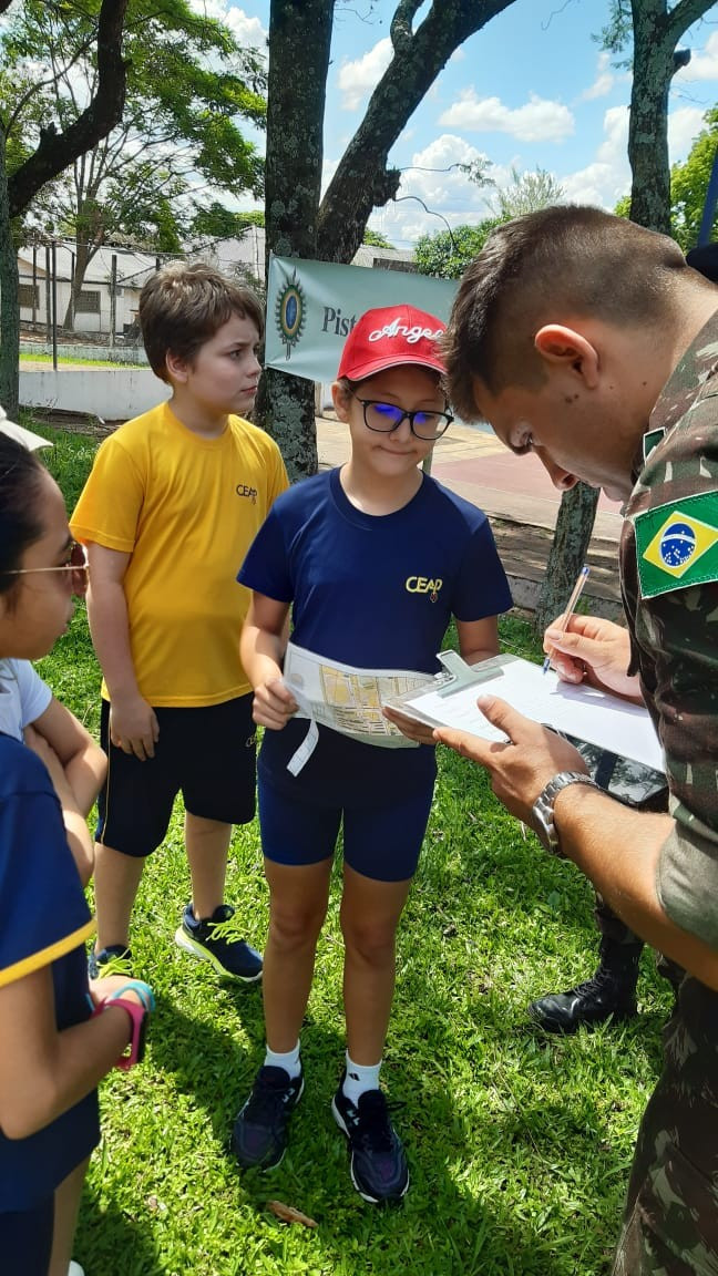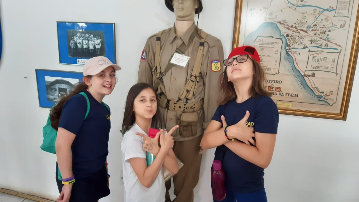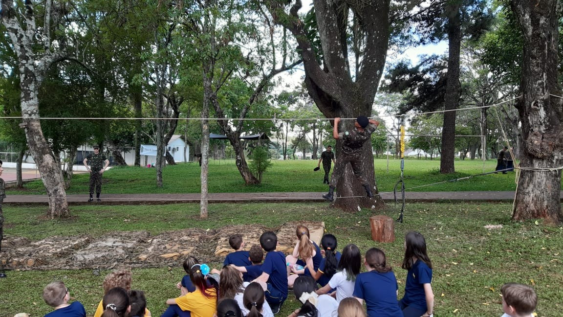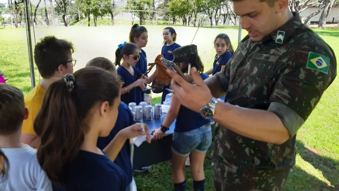 Na quinta, dia 14, as crianças do 4º ano realizaram uma visita de estudos ao Quartel do 27º GAC de Ijuí para uma atividade de orientação. A primeira ação foi conhecer as instalações do Museu, após, participaram de um passeio guiado que exigia a realização de tarefas.