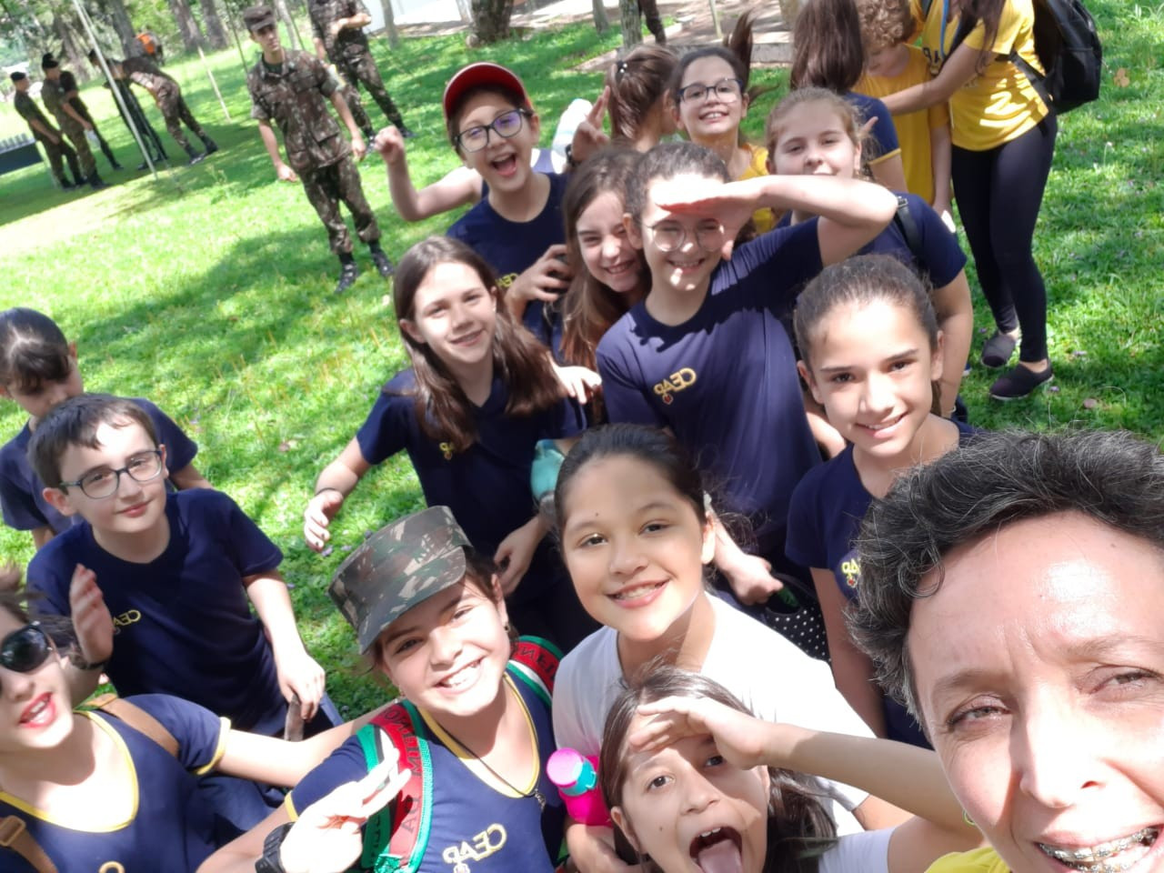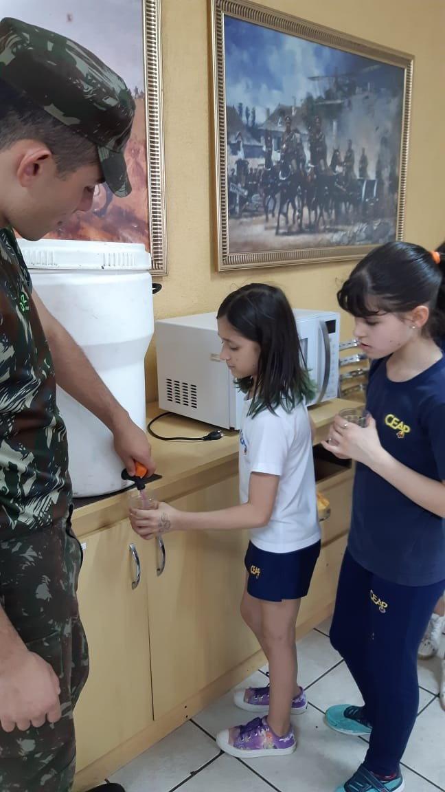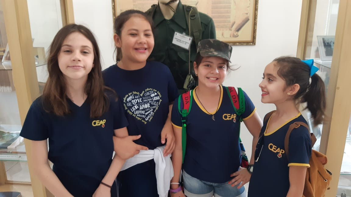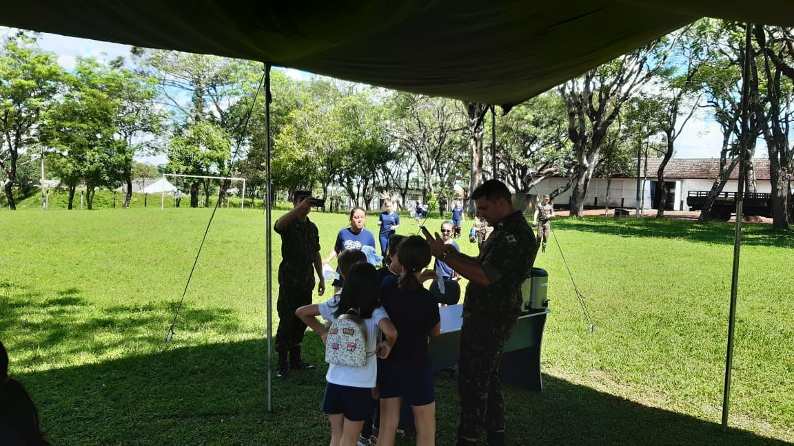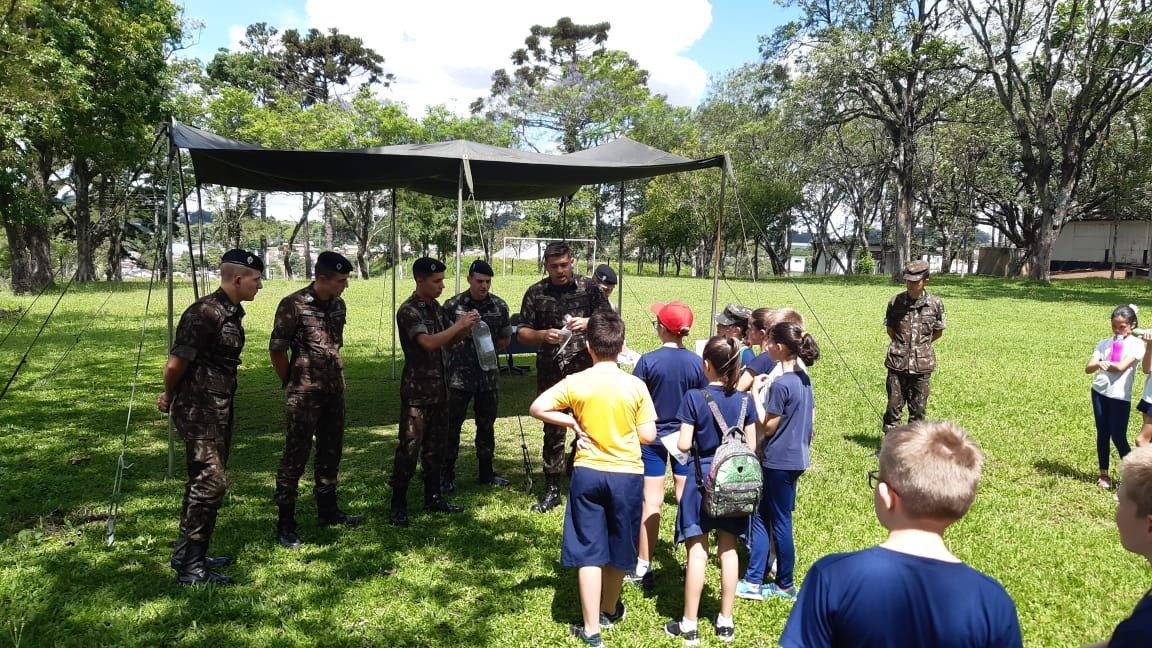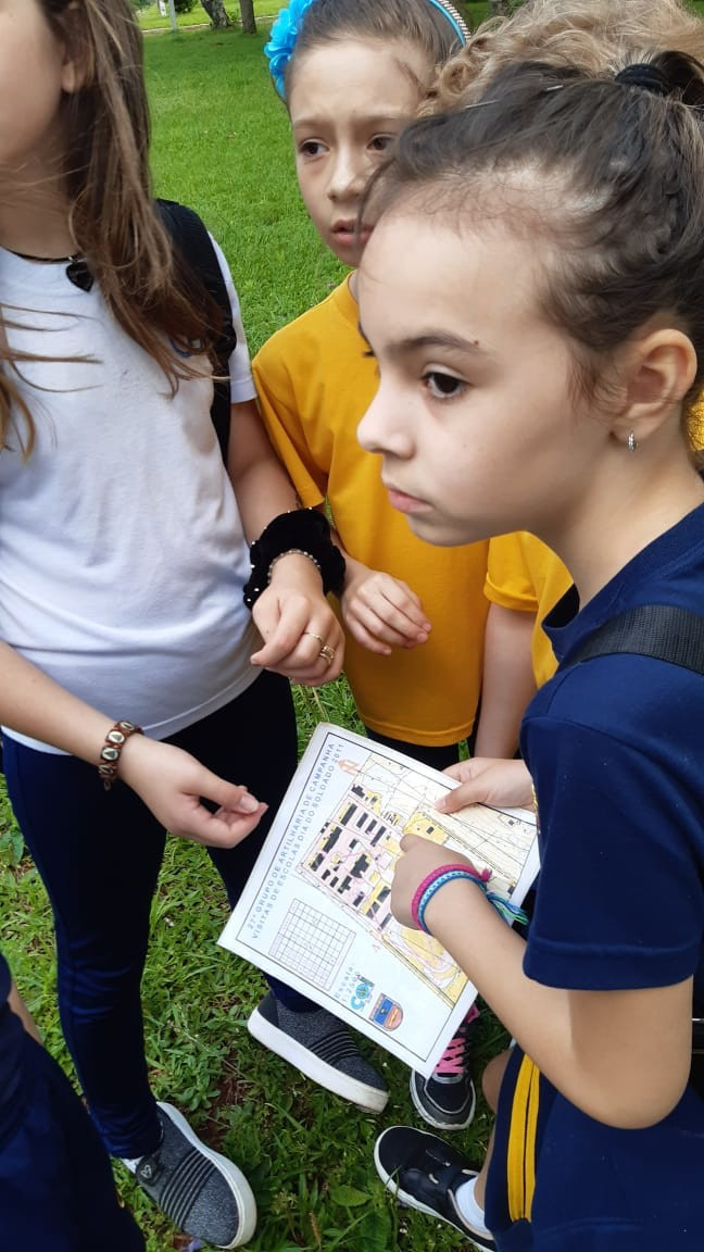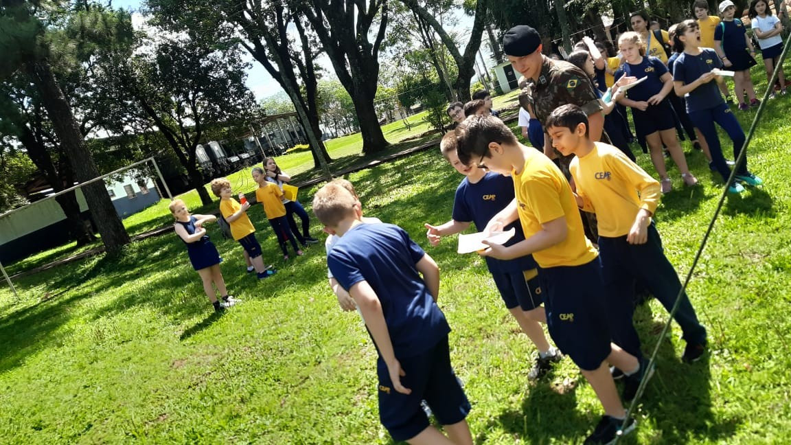 Na quinta, dia 14, as crianças do 4º ano realizaram uma visita de estudos ao Quartel do 27º GAC de Ijuí para uma atividade de orientação. A primeira ação foi conhecer as instalações do Museu, após, participaram de um passeio guiado que exigia a realização de tarefas.