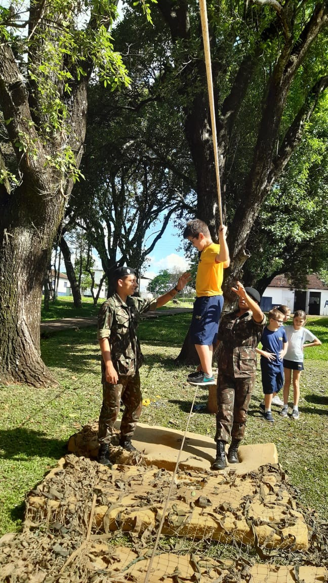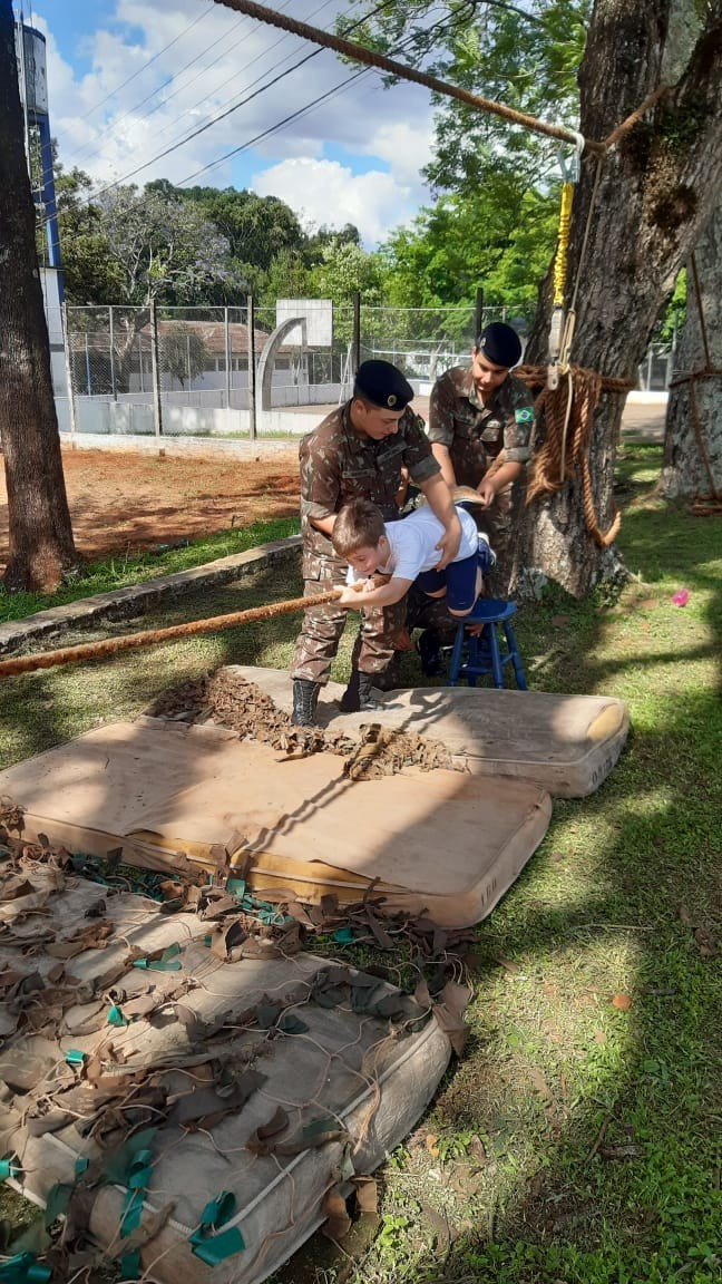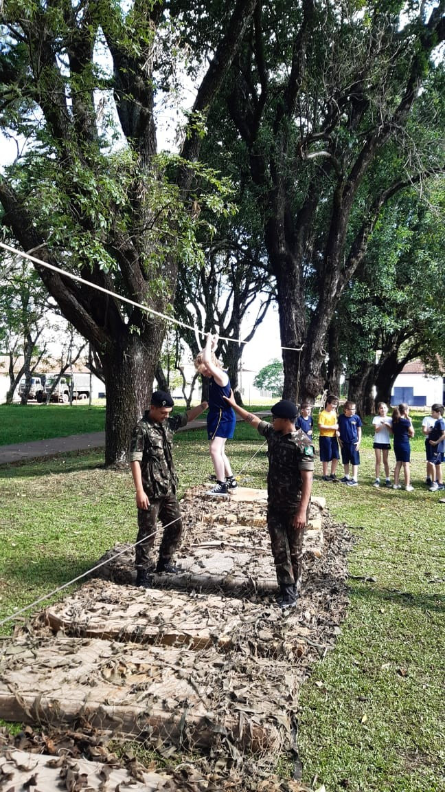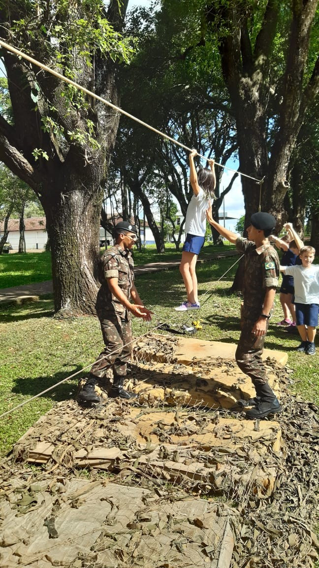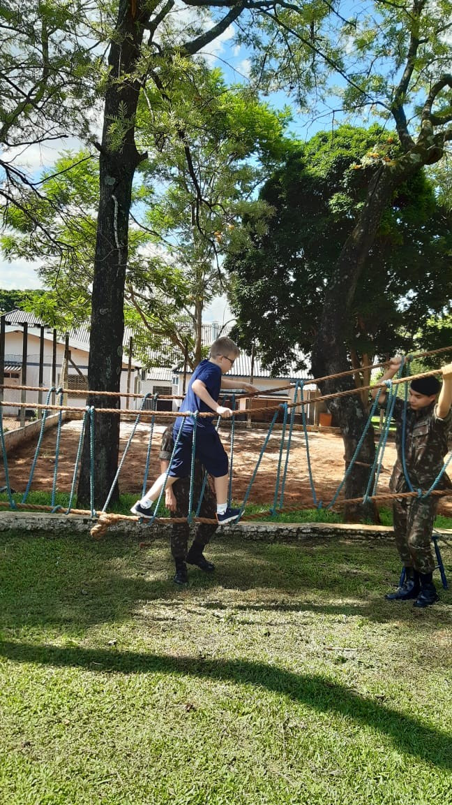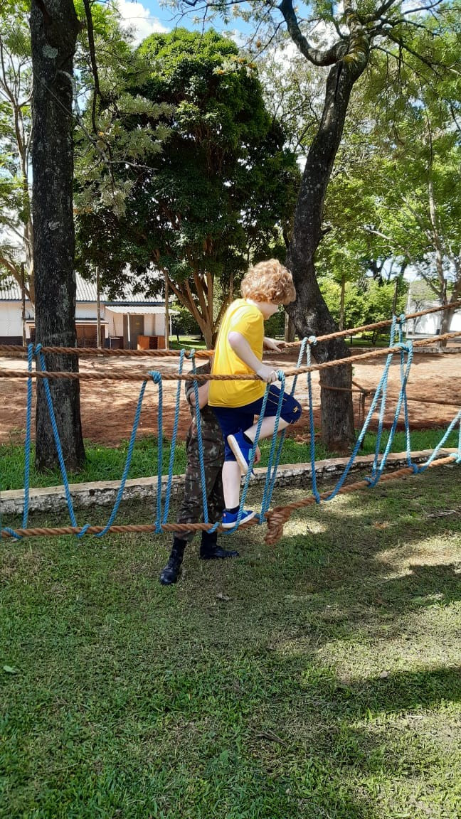 Depois de todos os grupos terem cumprido as missões orientadas, os alunos cumpriram atividades de educação física com exercícios nas cordas. A programação da tarde encerrou com um delicioso lanche oferecido pelo quartel e completa integração.