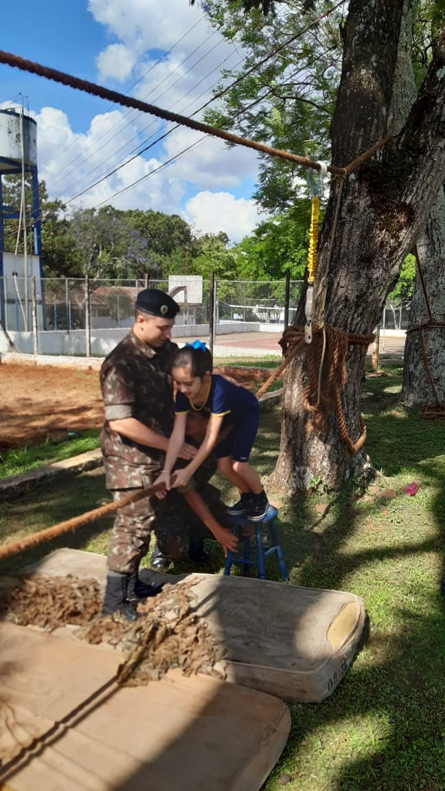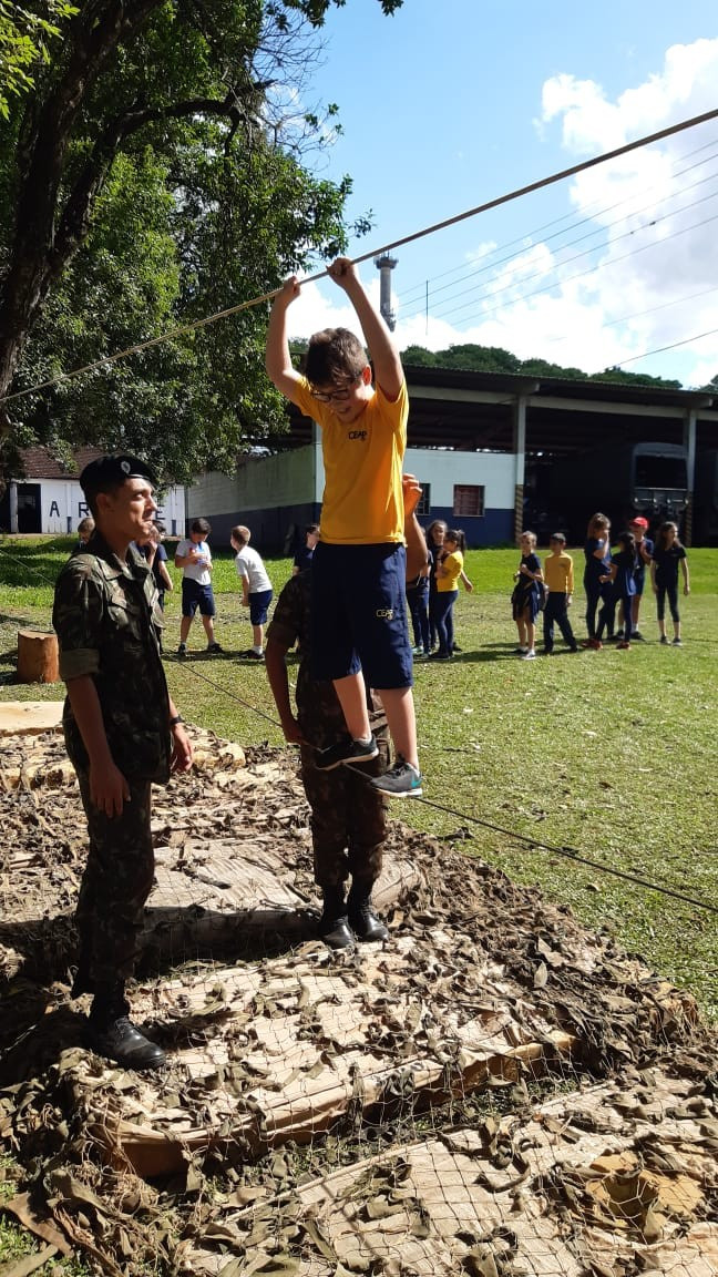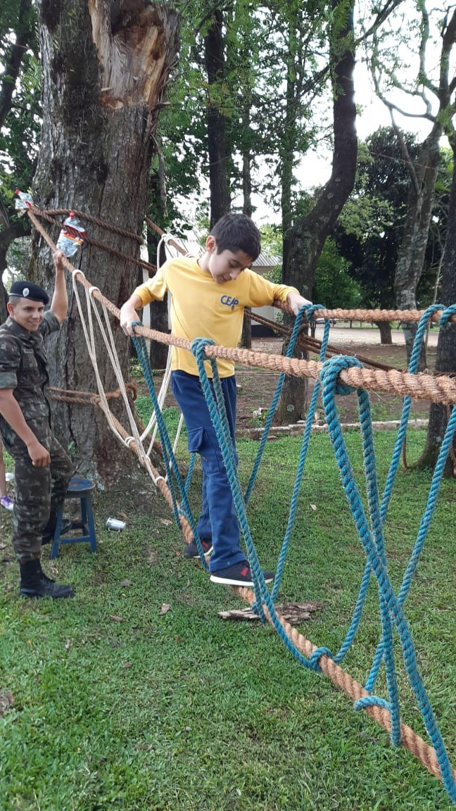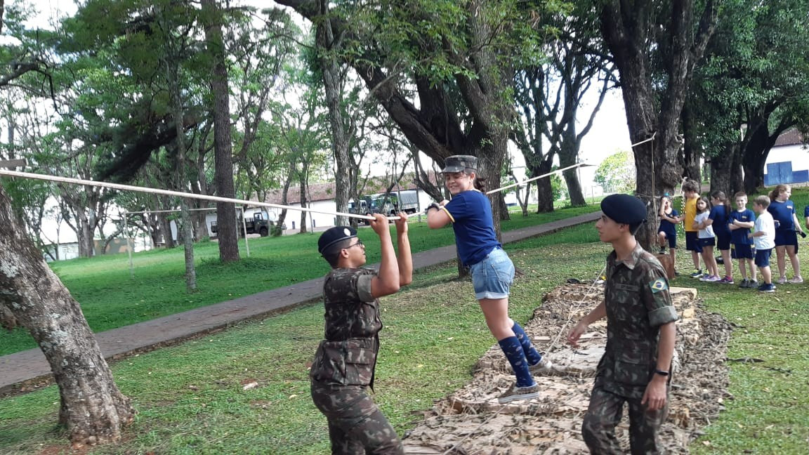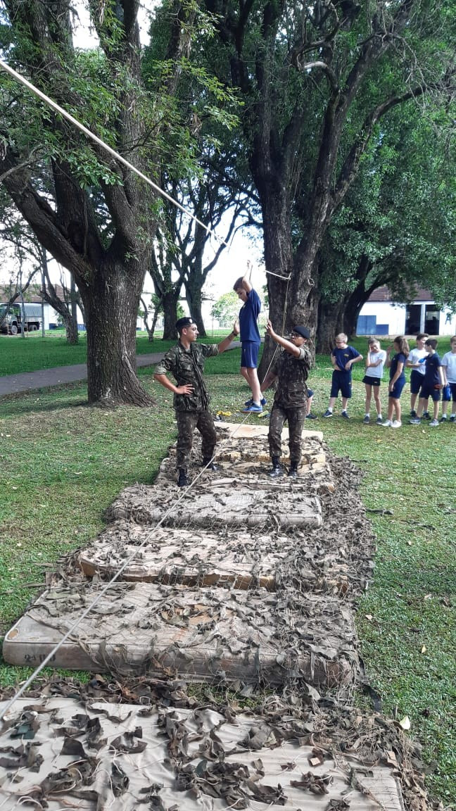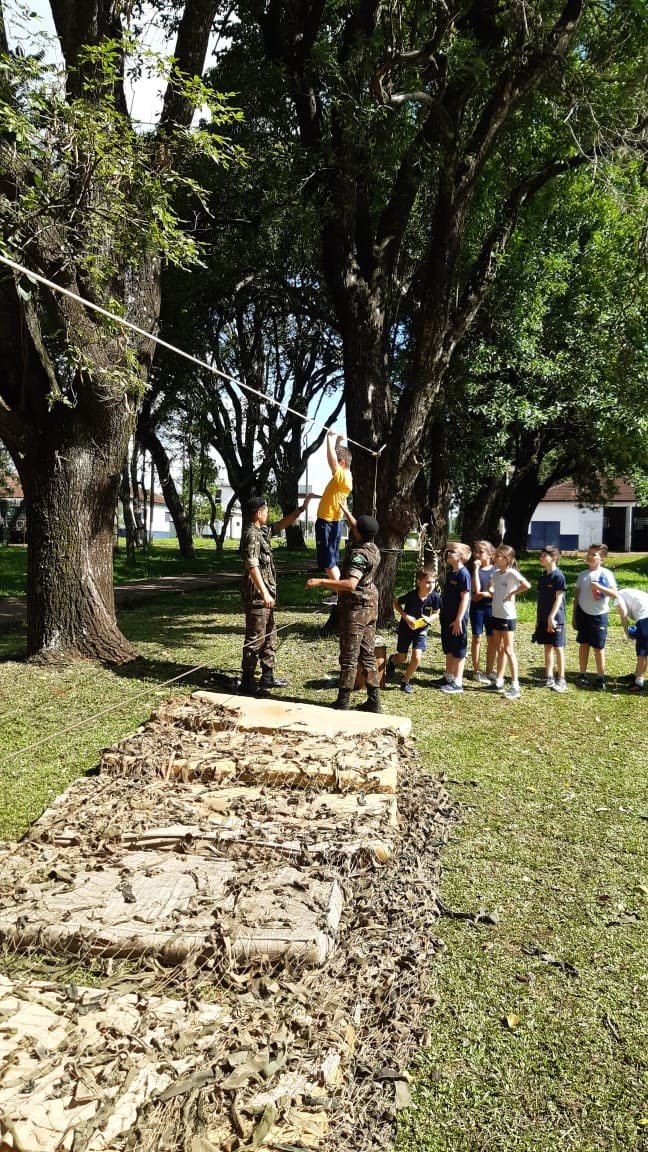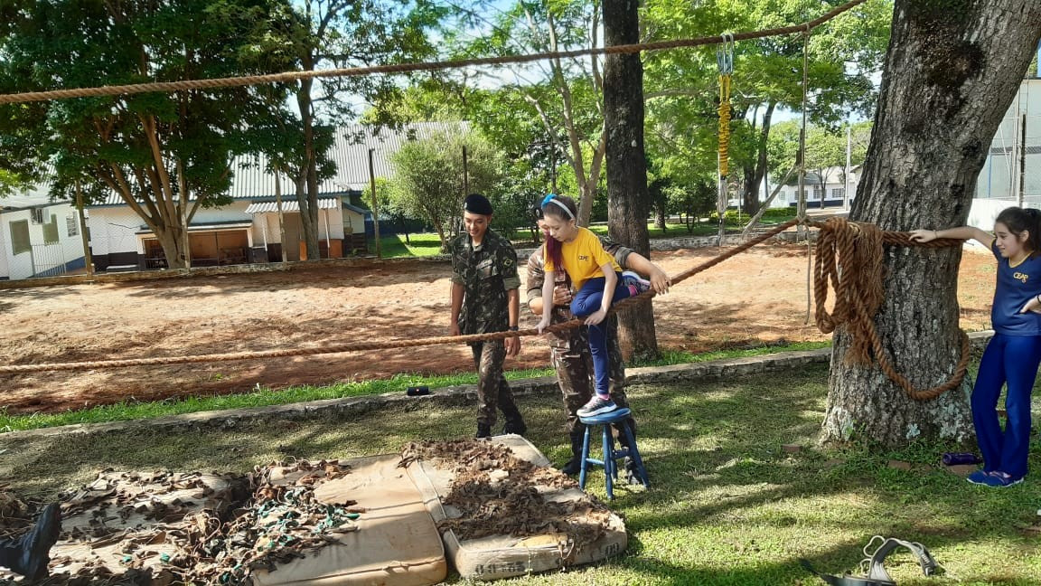 Depois de todos os grupos terem cumprido as missões orientadas, os alunos cumpriram atividades de educação física com exercícios nas cordas. A programação da tarde encerrou com um delicioso lanche oferecido pelo quartel e completa integração.