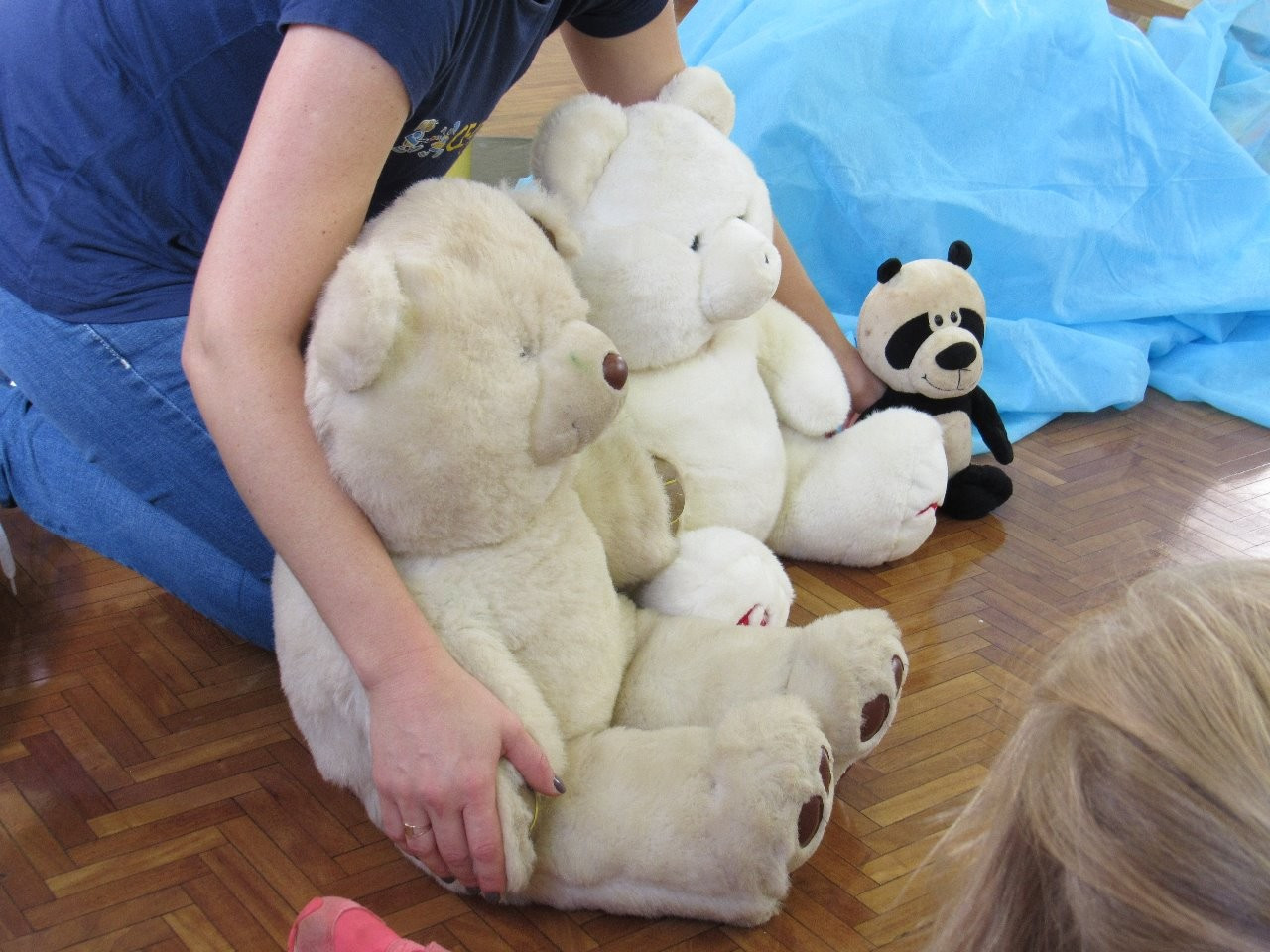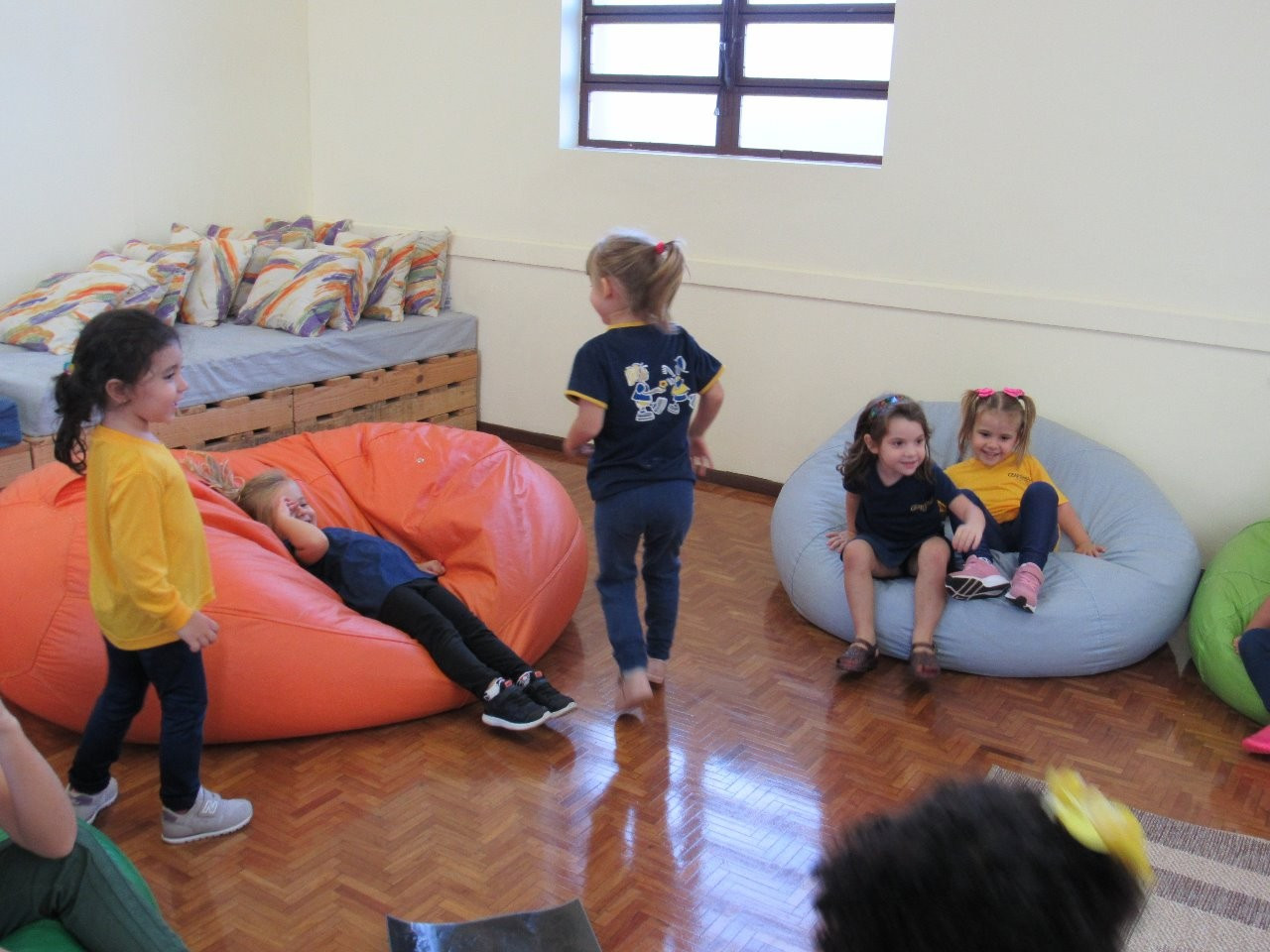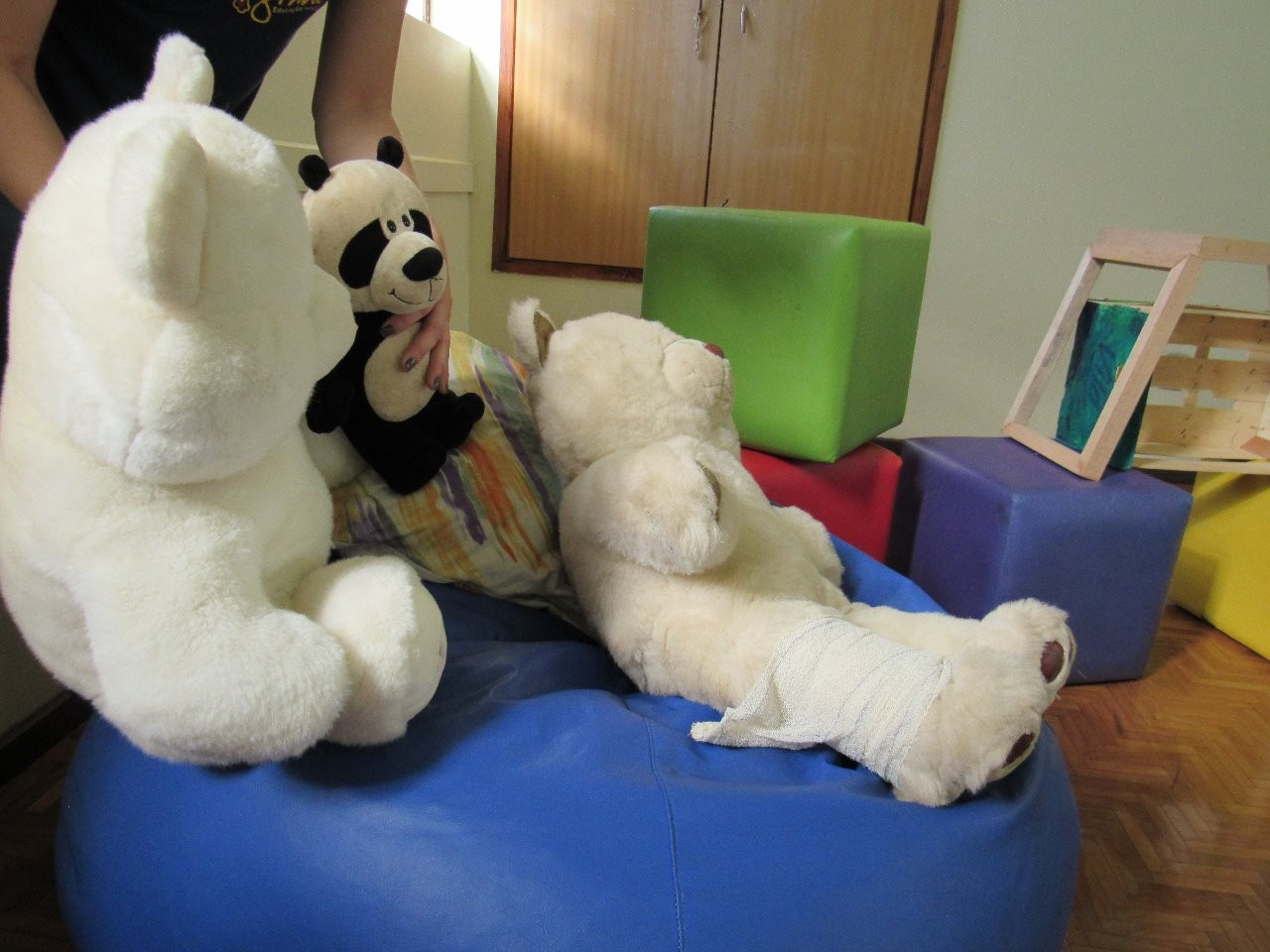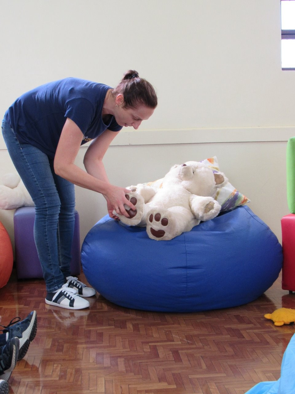Logo após ocorreu um Diálogo sobre o encontro com o outro, a possibilidade de auxílio mútuo e de agir cooperativamente. As crianças interagiram intensamente demonstrando interesse e preocupação no cuidado com o amigo.