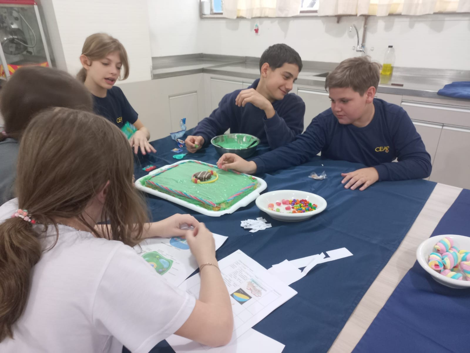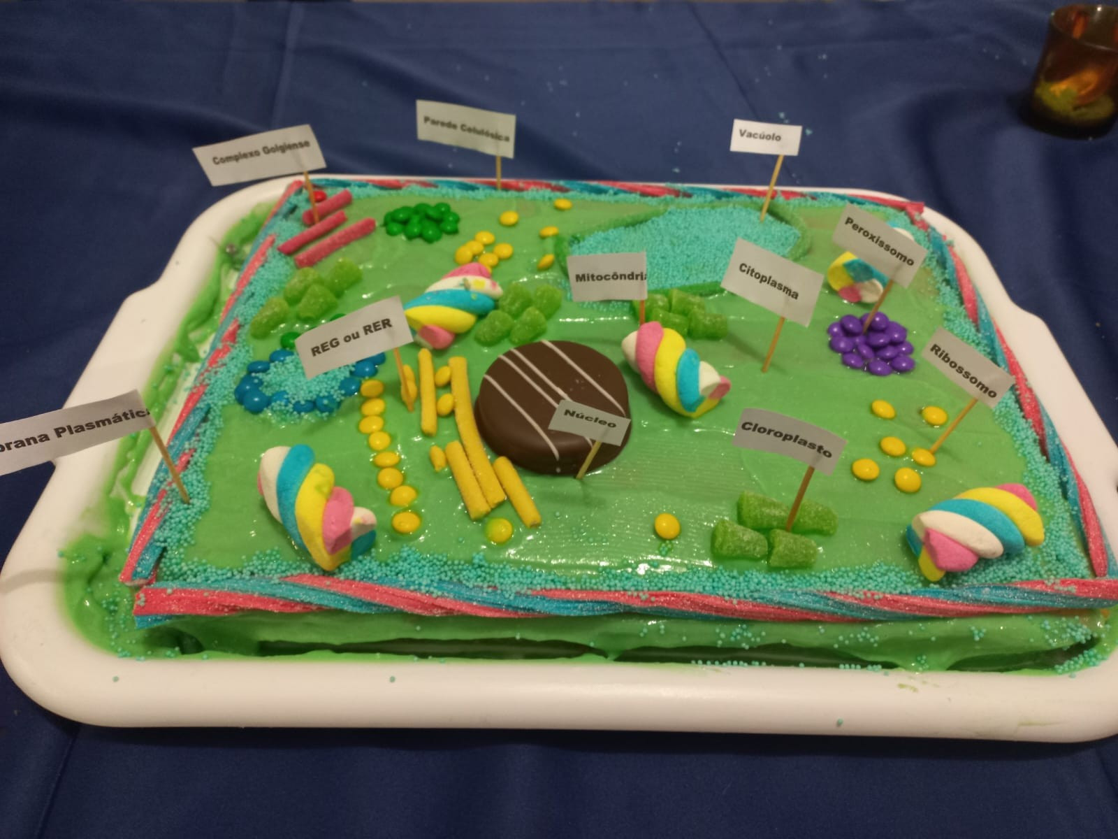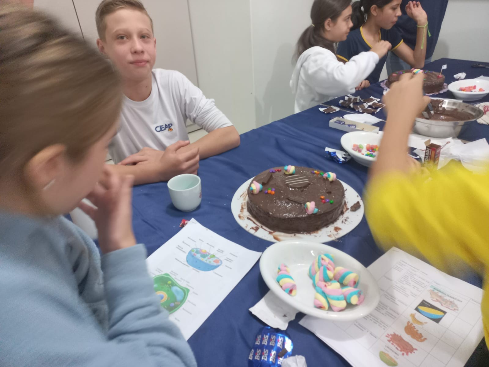 Foram desafiados a montar “células comestíveis” com bolos, coberturas e diferentes guloseimas, fazendo a representação de células animais e vegetais.
