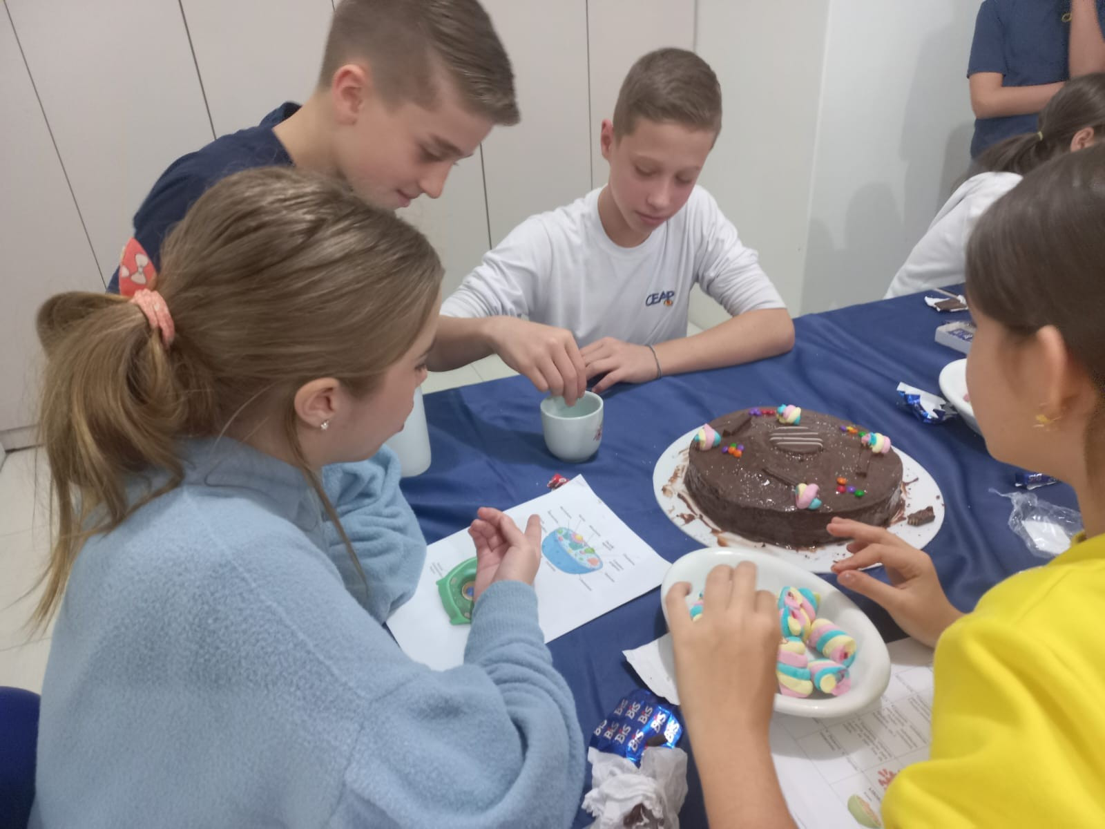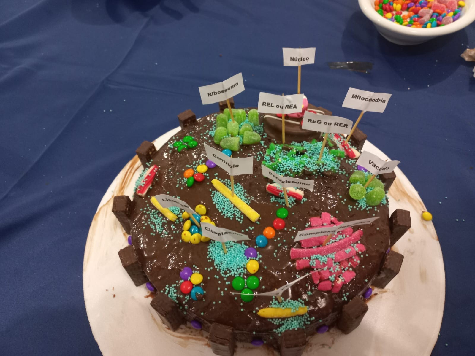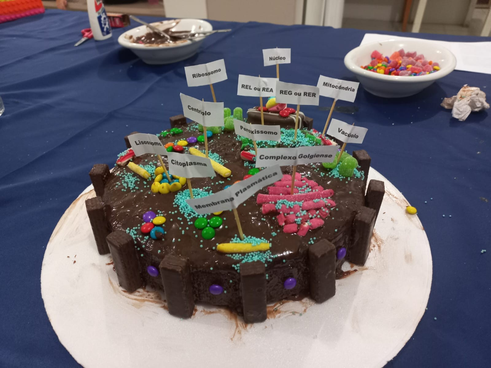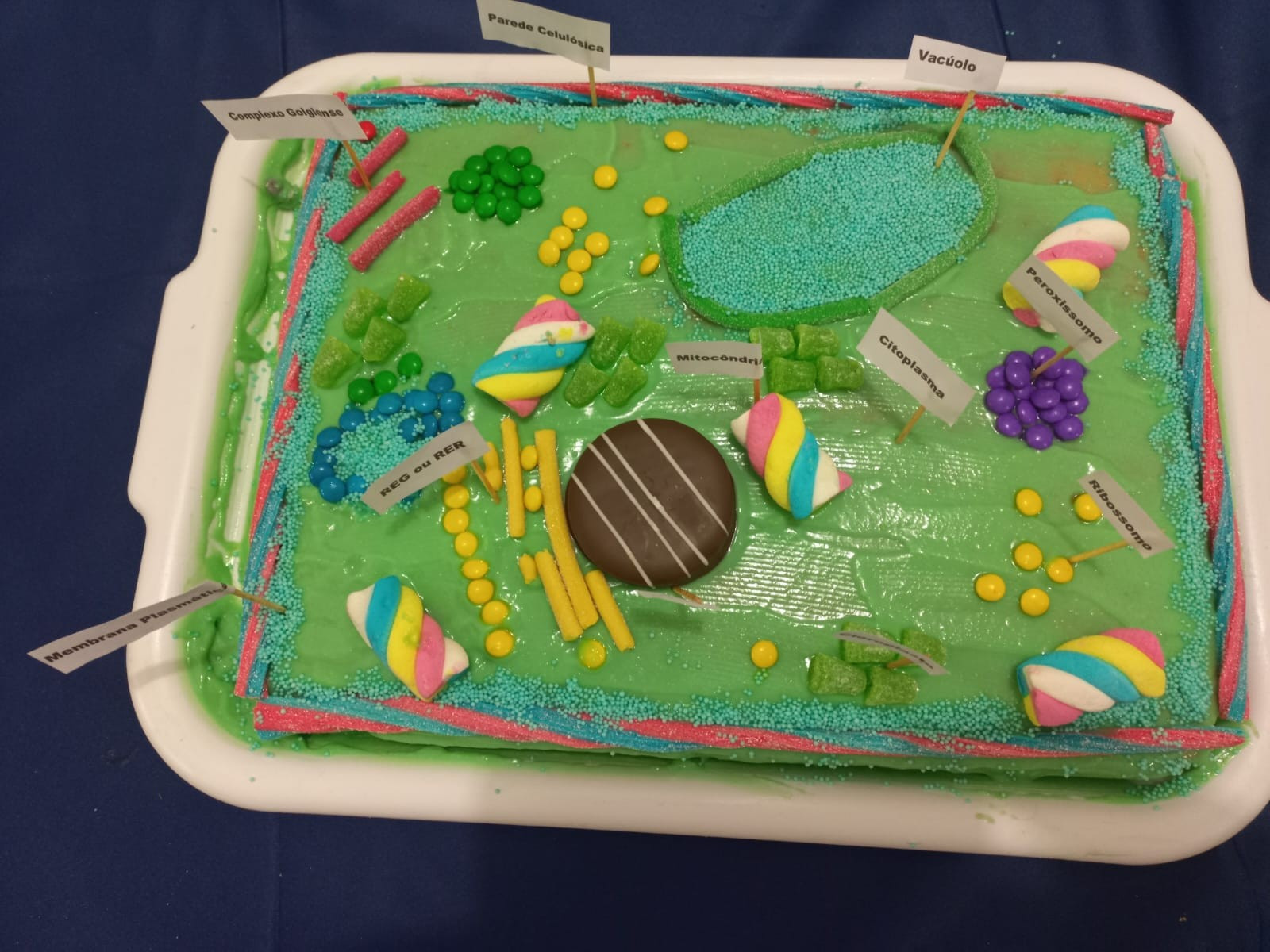 Foram desafiados a montar “células comestíveis” com bolos, coberturas e diferentes guloseimas, fazendo a representação de células animais e vegetais.
