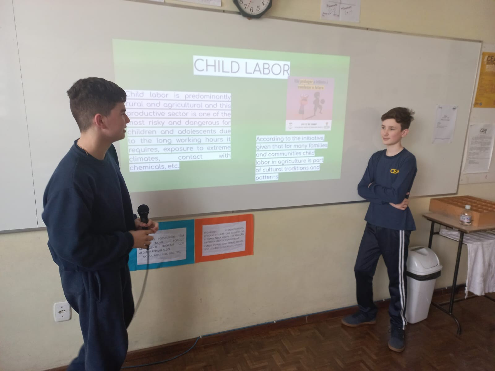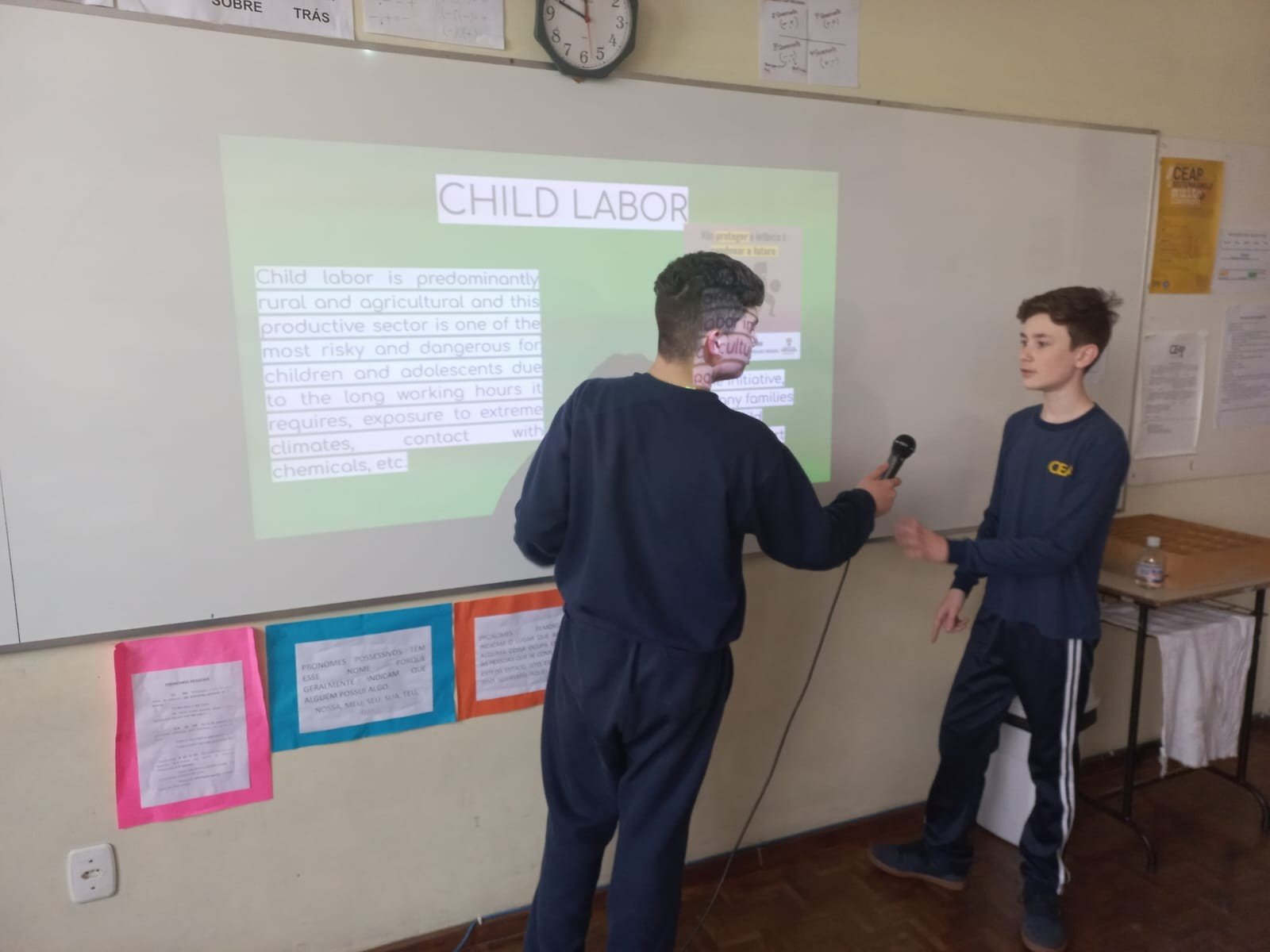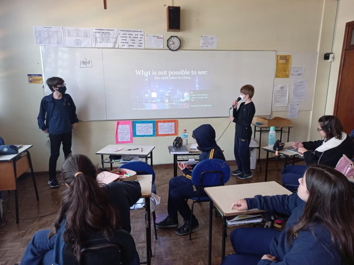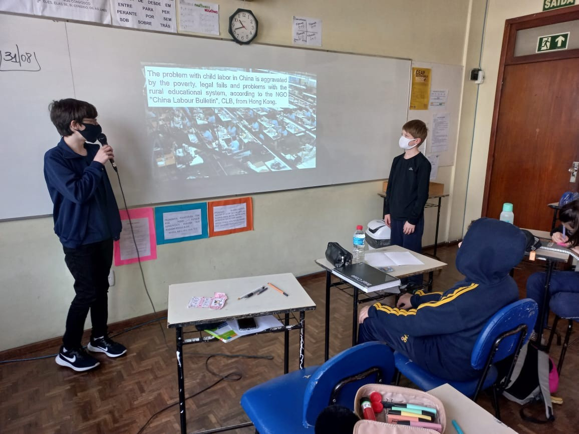 No final de julho, os alunos do 7° ano do Ensino Fundamental, no componente curricular de Língua Inglesa, começaram o estudo de uma questão social bastante discutida na atualidade, a exploração de trabalho infantil, com o objetivo de oportunizar e promover a conscientização sobre esse problema no Brasil e no mundo. Foram desafiados a pesquisar sobre o assunto e criar uma apresentação em inglês.