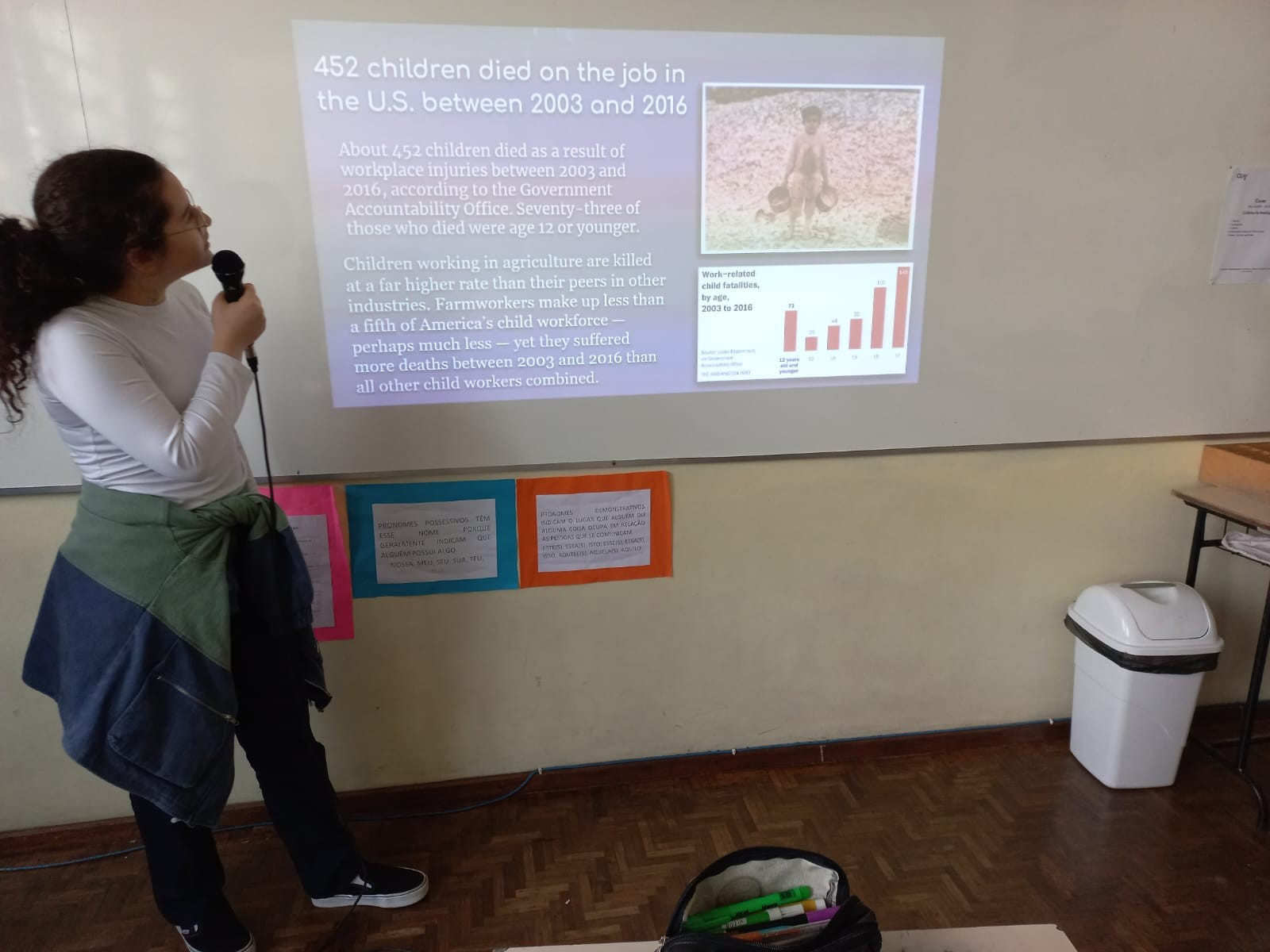 Dividiram-se em grupos e cada turma ficou com um lugar diferente, a turma A, ficou encarregada de pesquisar sobre o trabalho infantil em diferentes estados do Brasil e a turma B, em diferentes países.