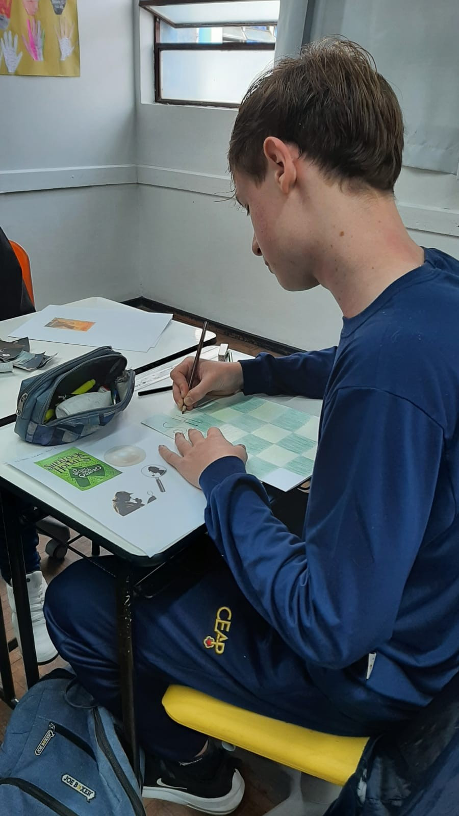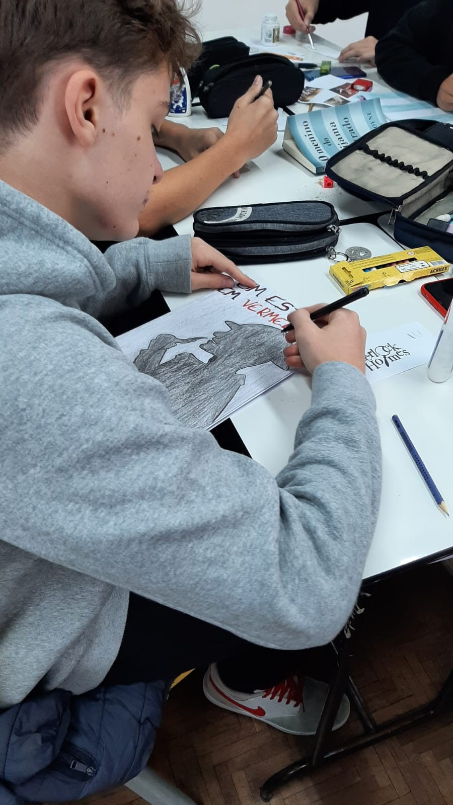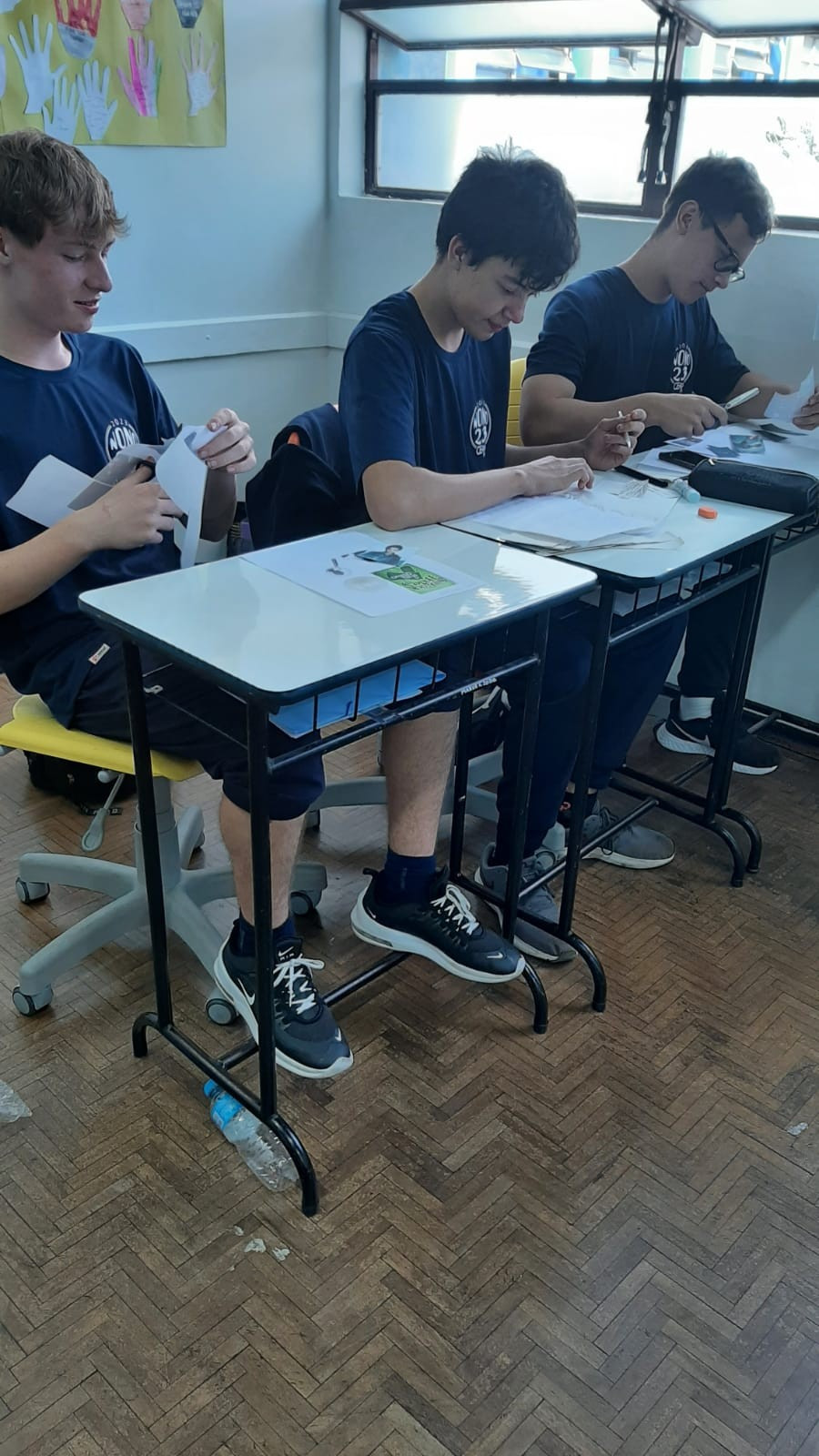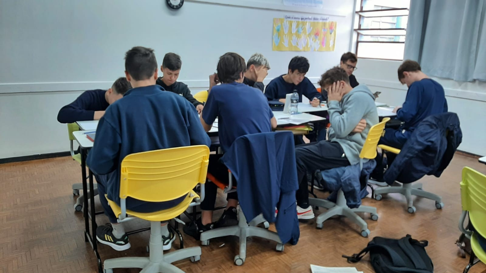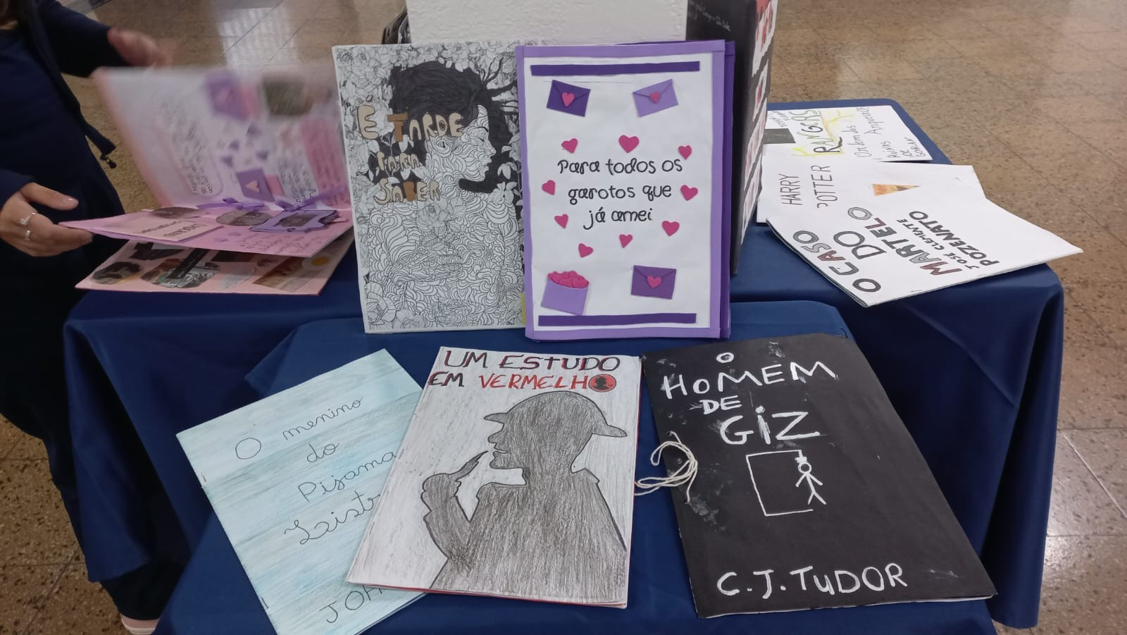 A exposição no saguão principal da escola é fruto da roda de conversa em sala de aula em que os estudantes foram desafiados a compartilhar seus medos e preocupações referentes aos últimos acontecimentos em nossa sociedade, envolvendo a questão da violência. O objetivo nesse momento é assegurar que todos os alunos consigam trazer manifestações sobre suas atitudes, anseios e pensamentos sobre o que vem acontecendo, e trabalhar/enfatizar o respeito aos colegas e professores.