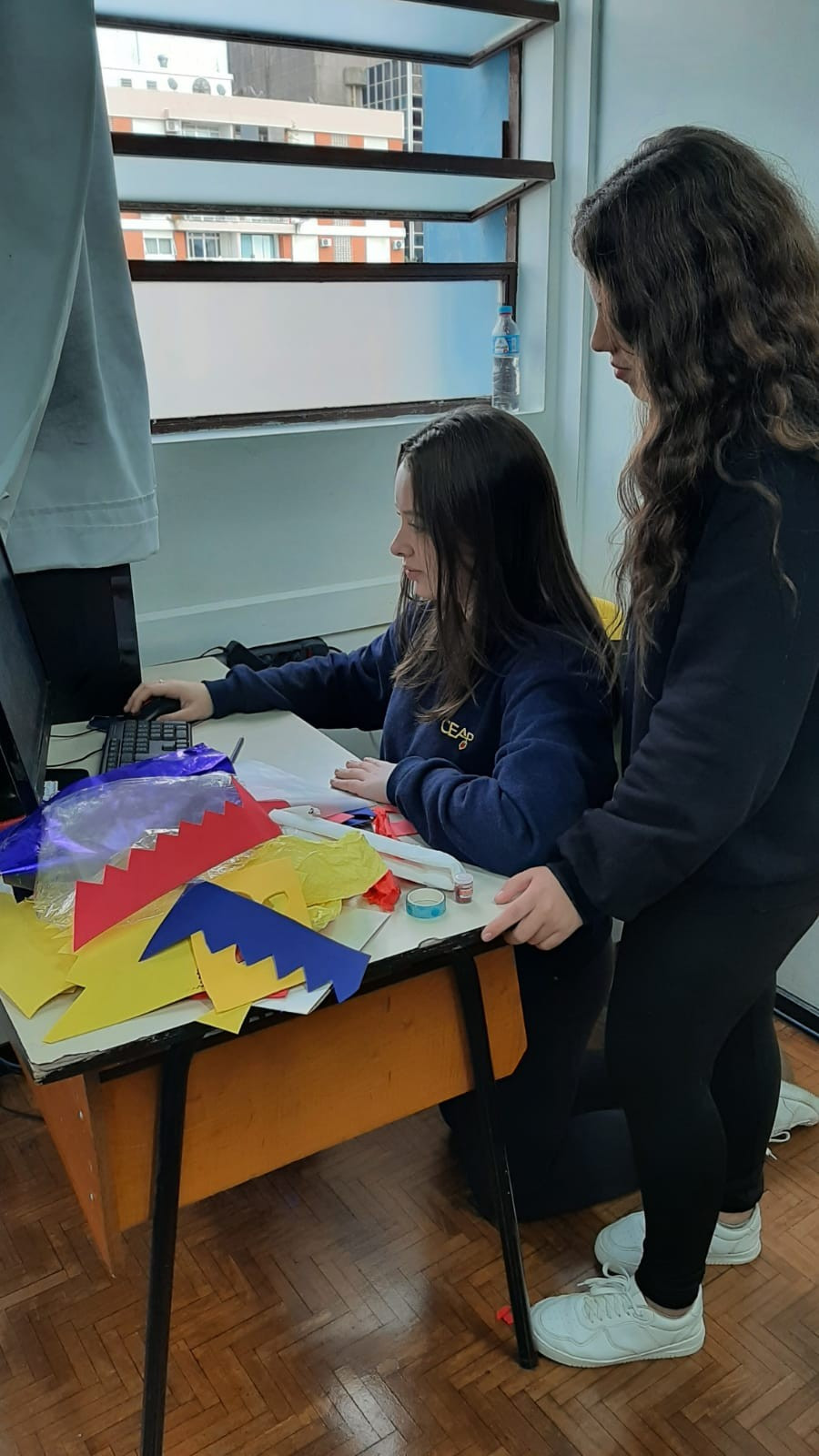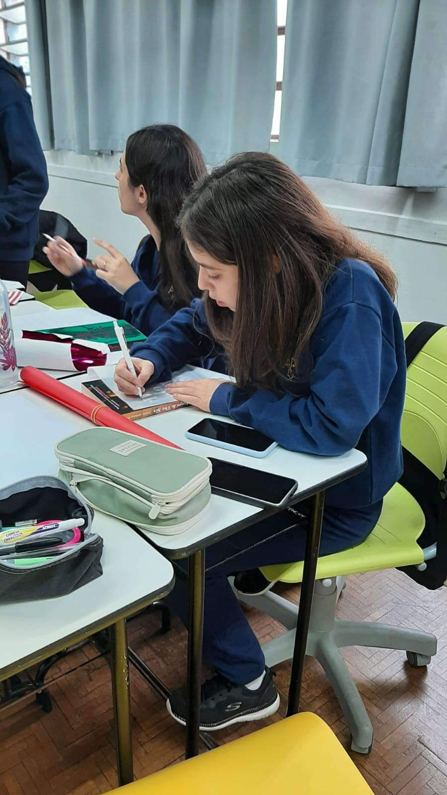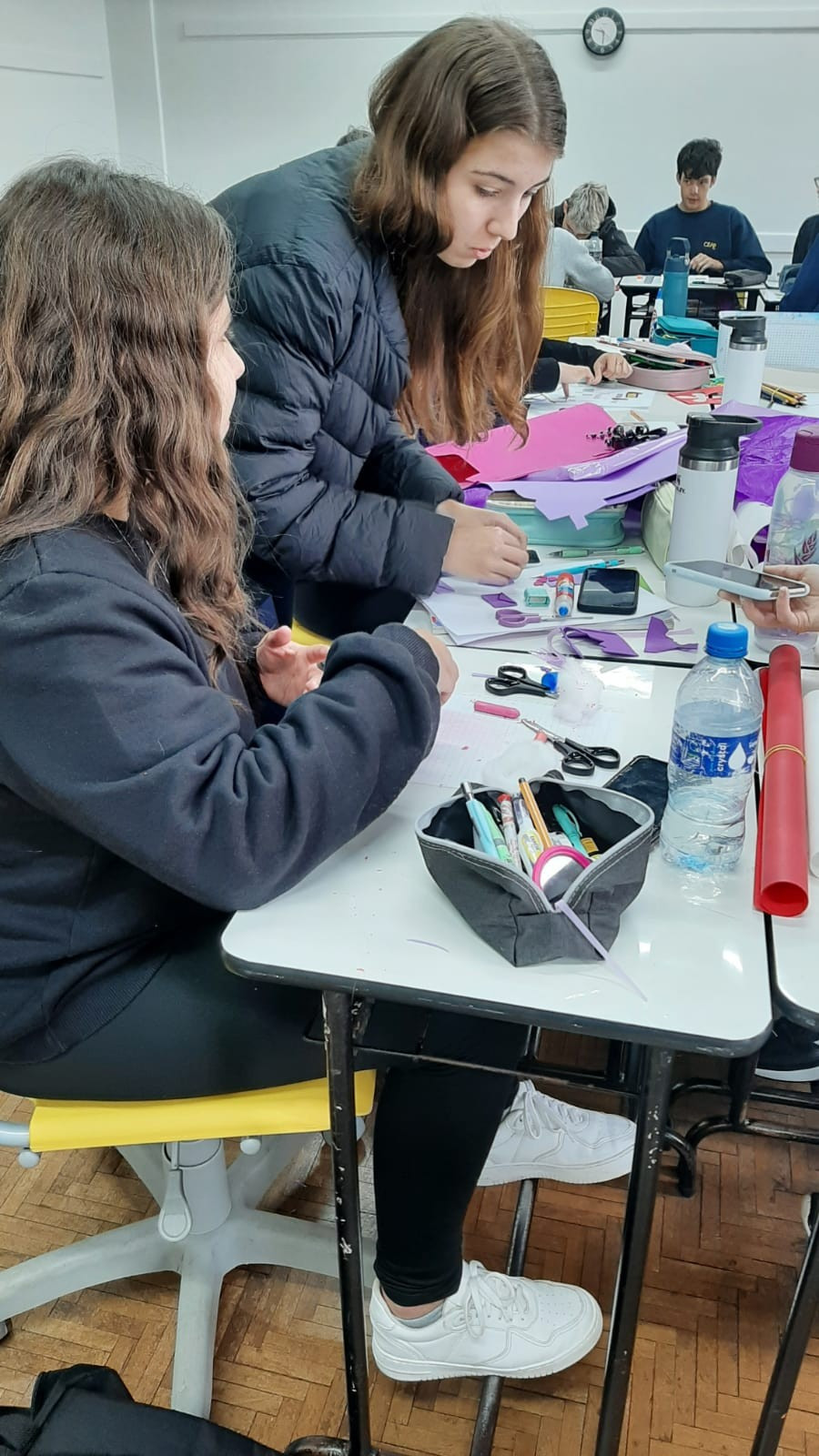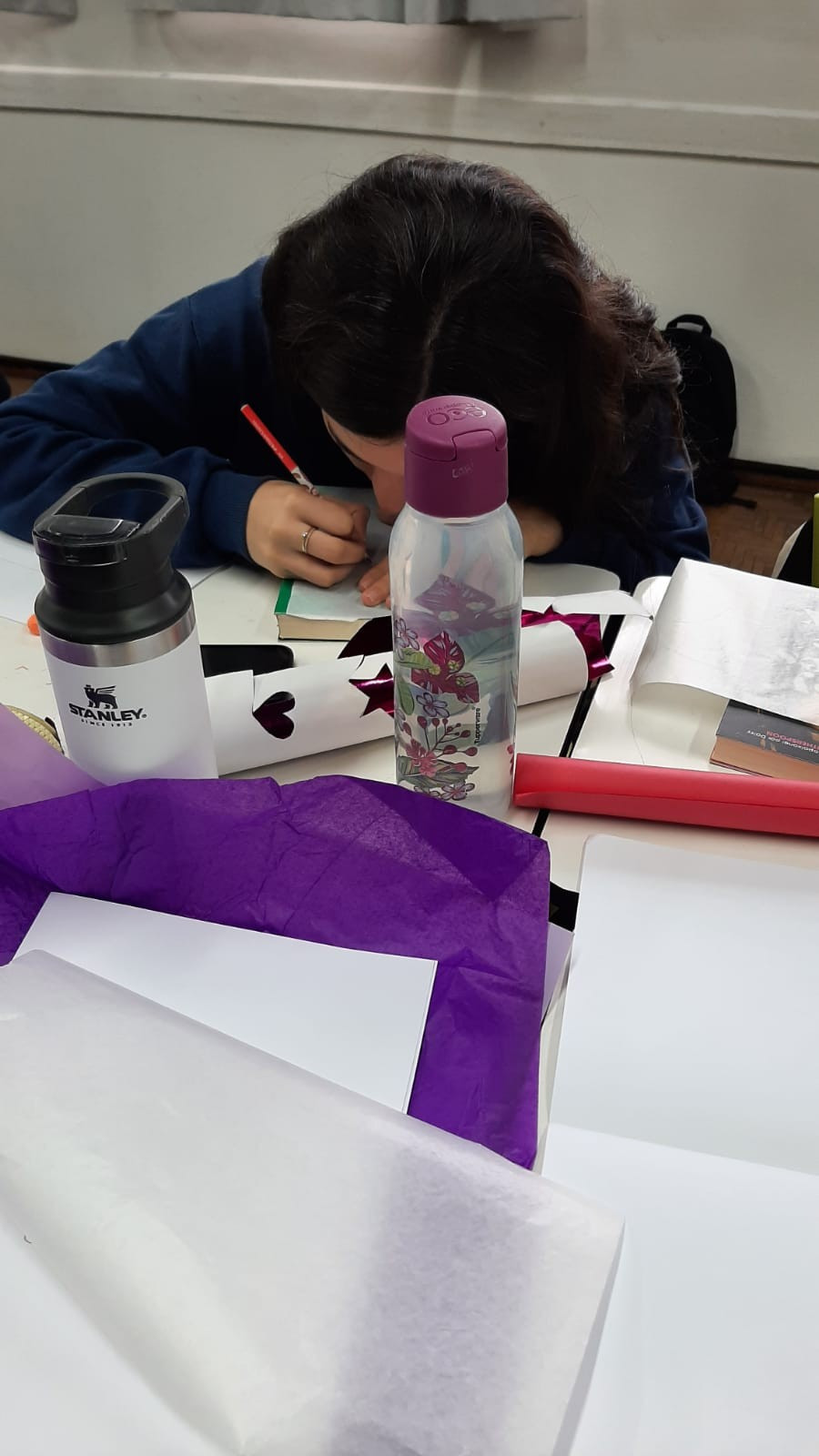 A exposição no saguão principal da escola é fruto da roda de conversa em sala de aula em que os estudantes foram desafiados a compartilhar seus medos e preocupações referentes aos últimos acontecimentos em nossa sociedade, envolvendo a questão da violência. O objetivo nesse momento é assegurar que todos os alunos consigam trazer manifestações sobre suas atitudes, anseios e pensamentos sobre o que vem acontecendo, e trabalhar/enfatizar o respeito aos colegas e professores.
