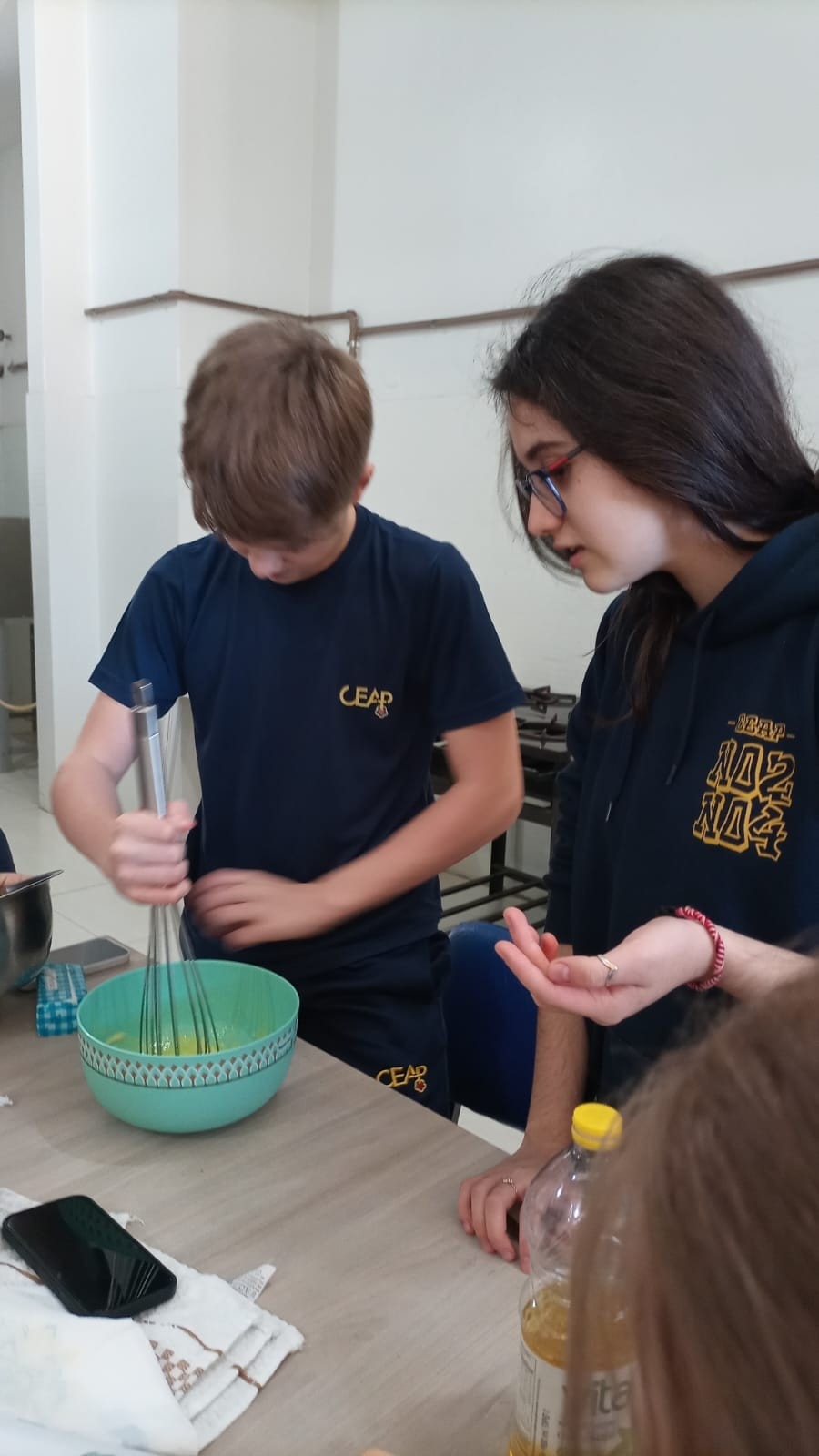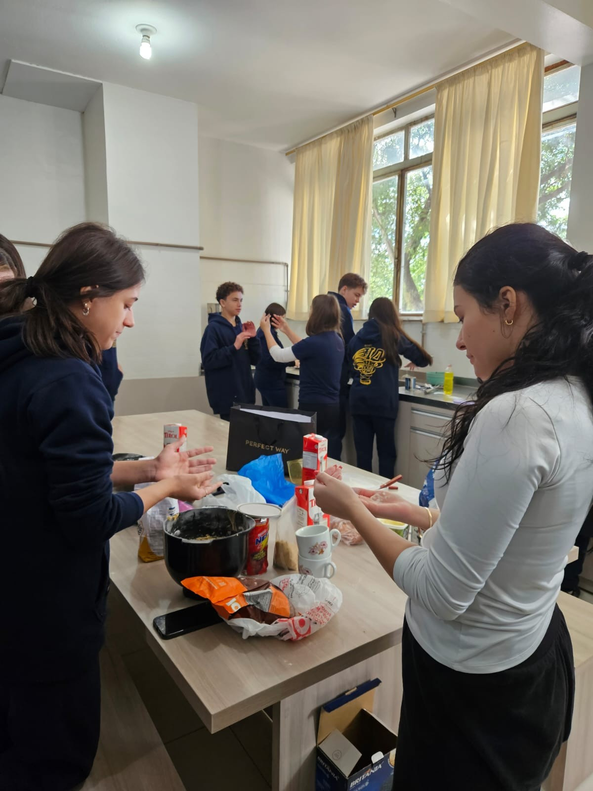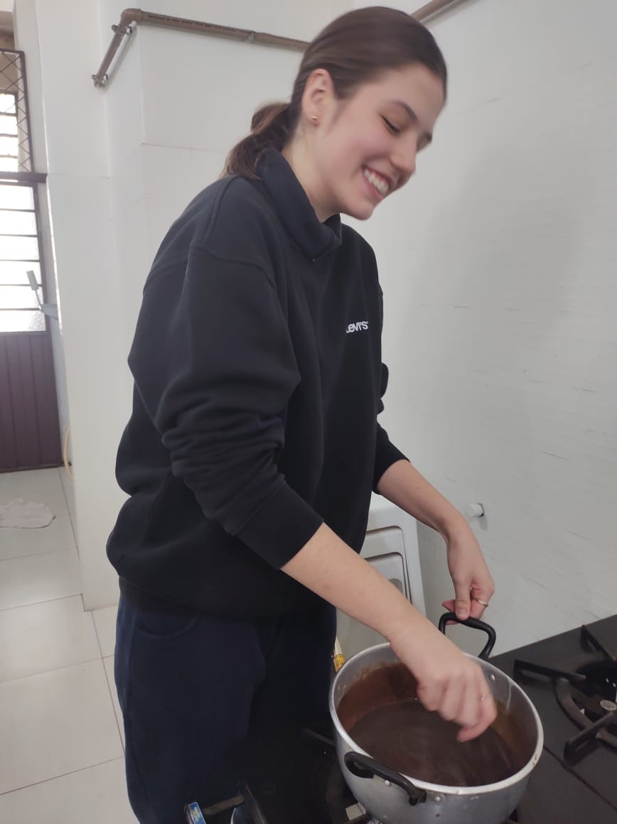 Com 35 alunos na cozinha da escola ao mesmo tempo, a atividade foi um sucesso! Todos trabalharam juntos harmoniosamente, demonstrando que, com organização e espírito de equipe, é possível realizar grandes projetos. Esta experiência prática não só reforçou os conteúdos curriculares, mas também proporcionou momentos de diversão e aprendizado coletivo, destacando a importância de métodos de ensino inovadores e integradores.