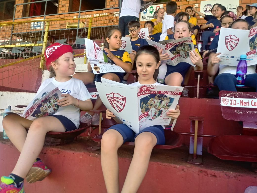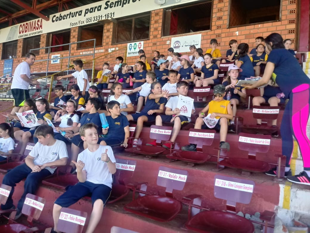 O futebol é uma paixão nacional e vivenciar o dia a dia de uma equipe profissional, foi o que a turminha do 4º ano do Ensino Fundamental do CEAP fez. No início da semana, guiados pelas professoras Tatiane Capeletti Rubert e Cristiane Raquel Kruger Bertoldo os alunos foram recepcionados no Estádio 19 de outubro, casa do Esporte Clube São Luiz de Ijuí.