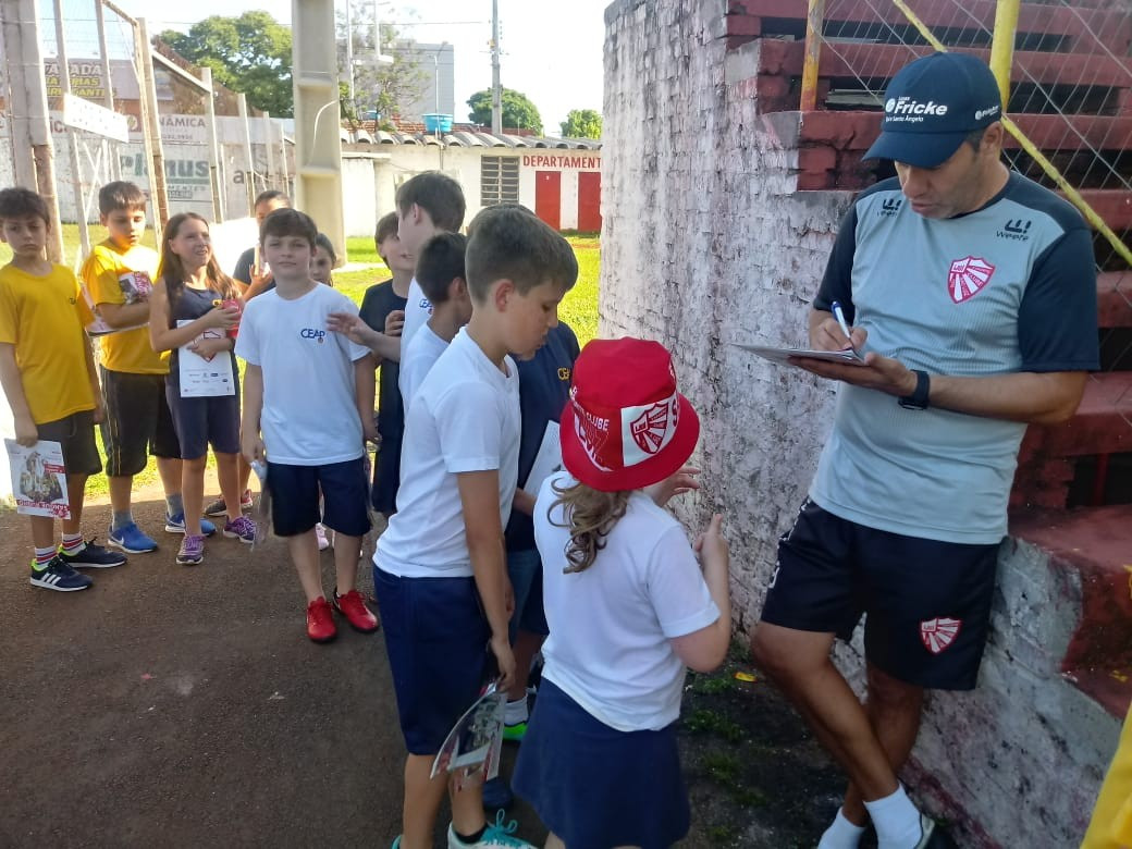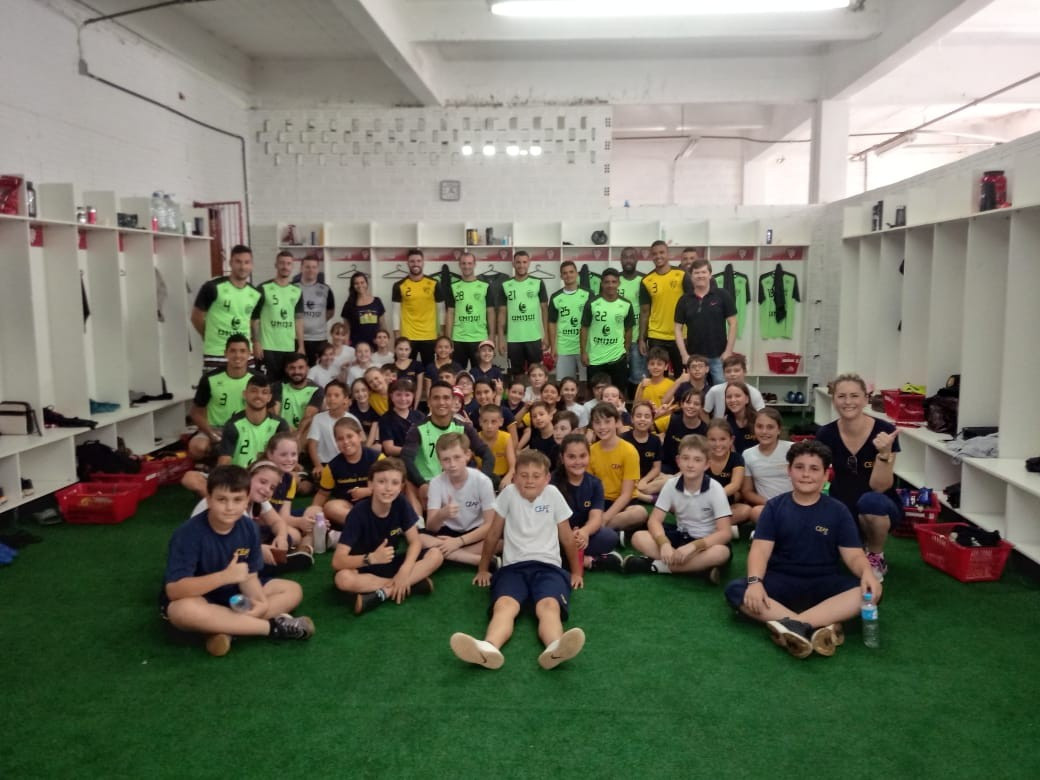 O professor Paulo Santos do CEAP que acompanhou a visita, falou da importância de estudar para desempenhar com qualidade qualquer profissão. A atenção dos jogadores para com os alunos foi emocionante. As crianças puderam conversar, matar a curiosidade e ainda receberam autógrafos dos jogadores e do treinador.