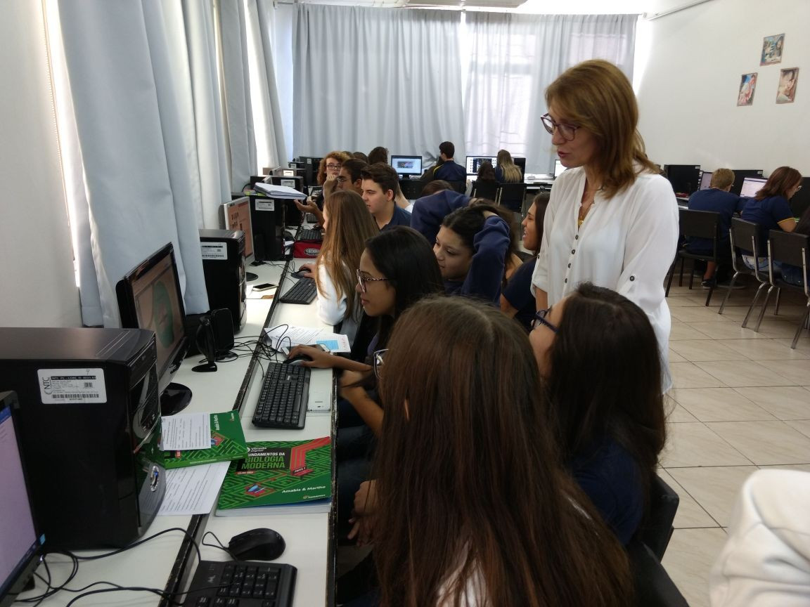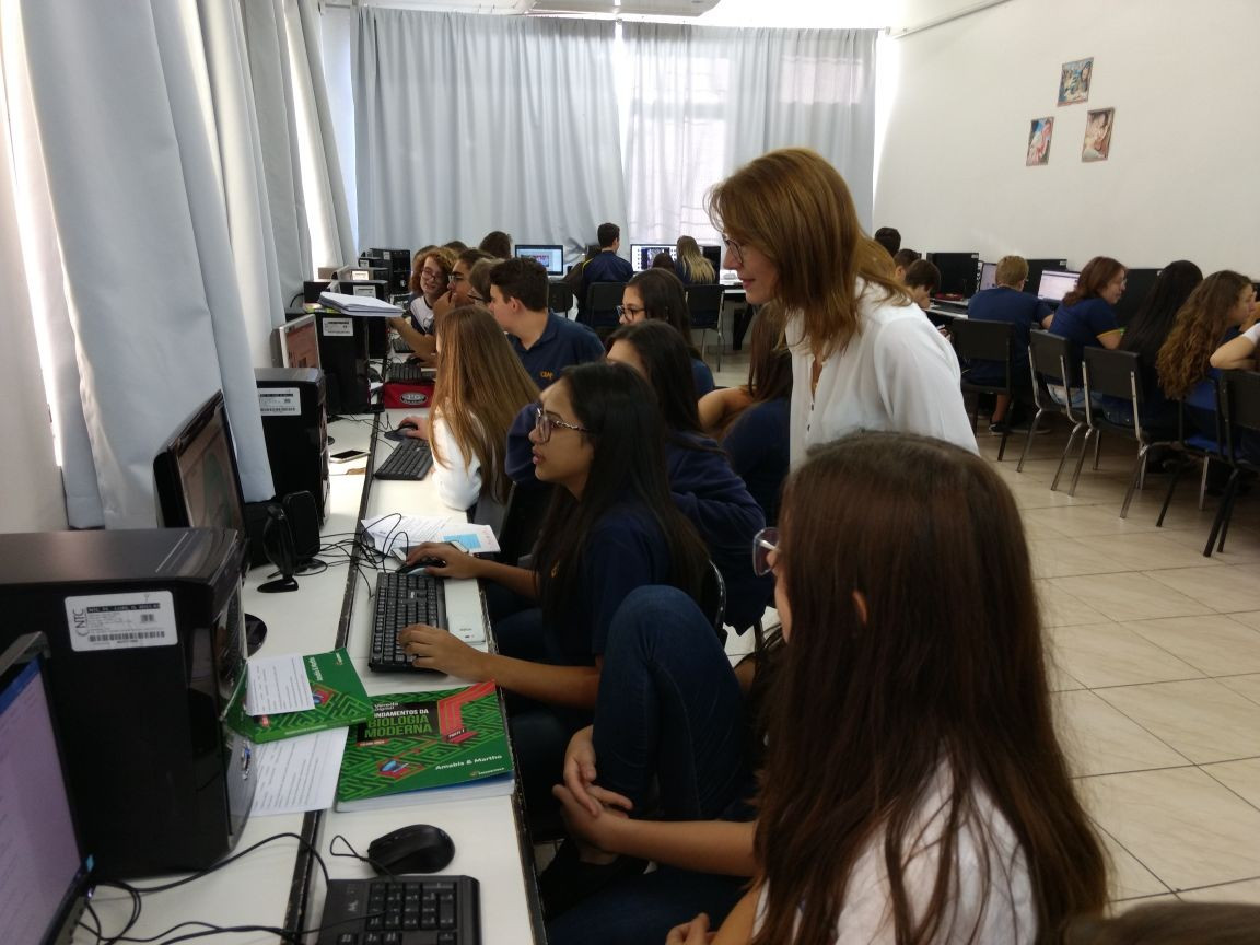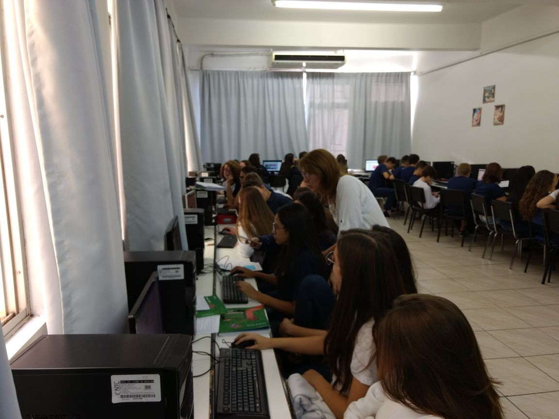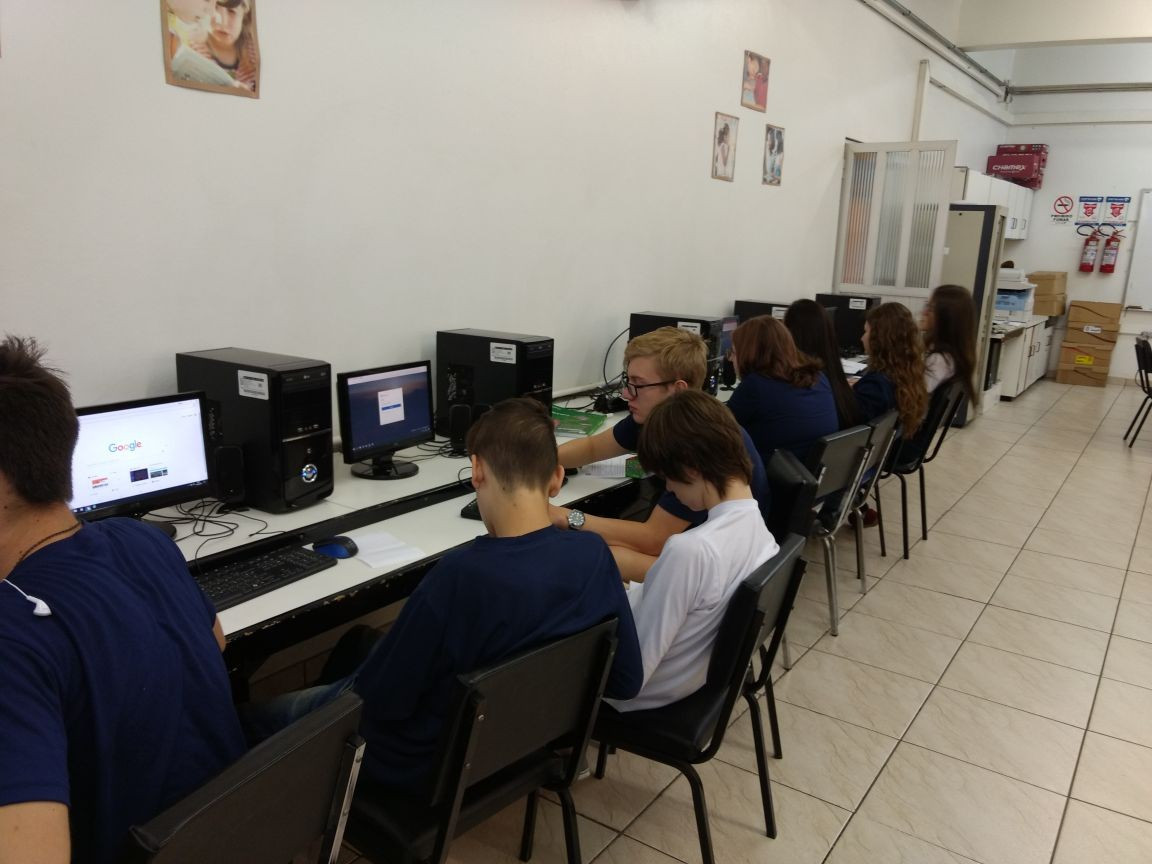 O trabalho seguiu no Laboratório de Informática, dia 18 de abril, onde os grupos analisaram as fotos e identificaram qual conceito e relação ecológica estavam implícitos, produzindo um material de estudo personalizado.