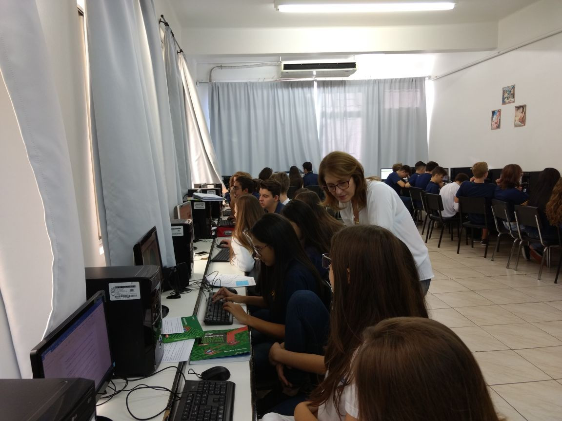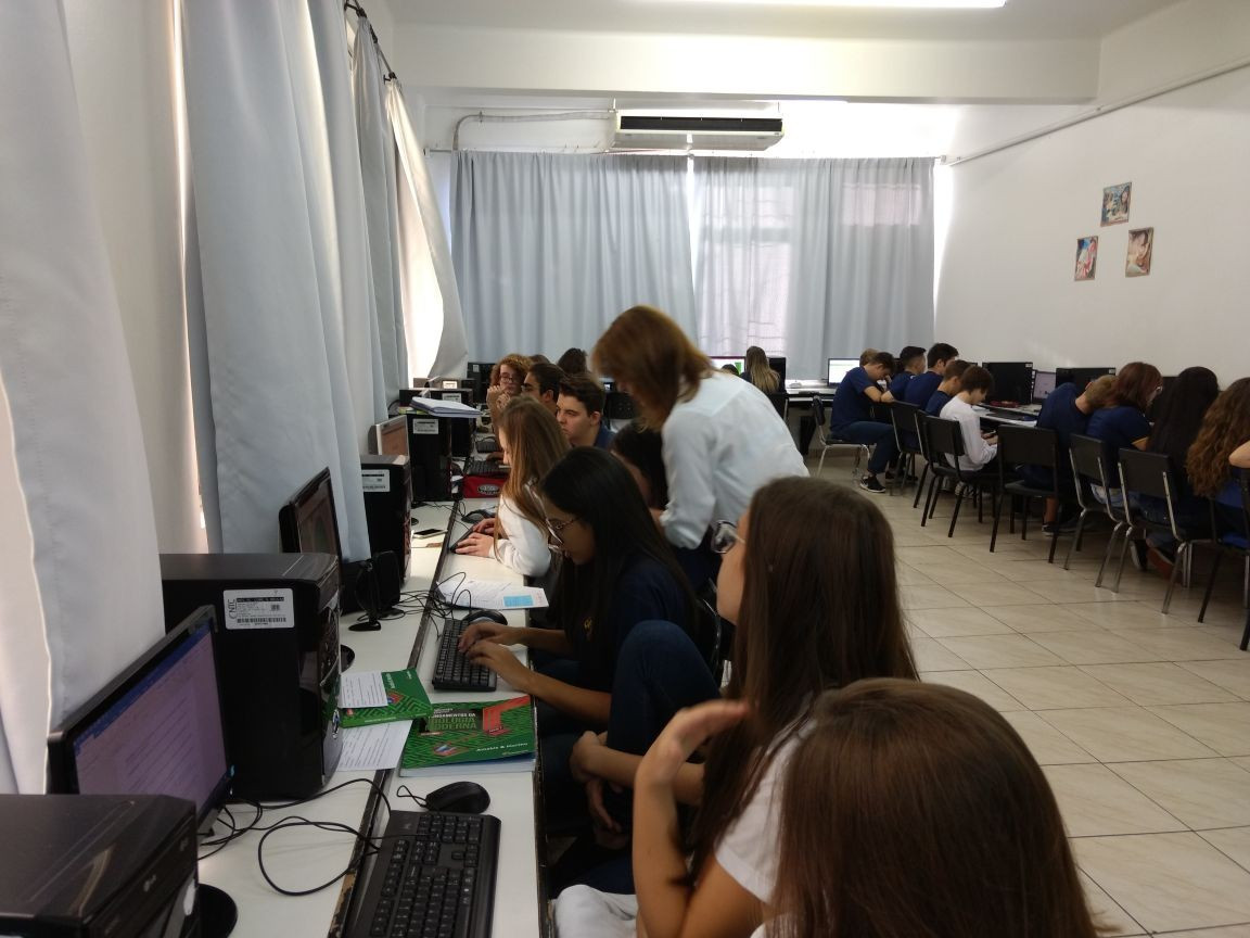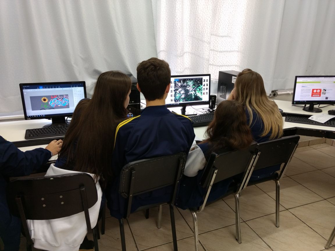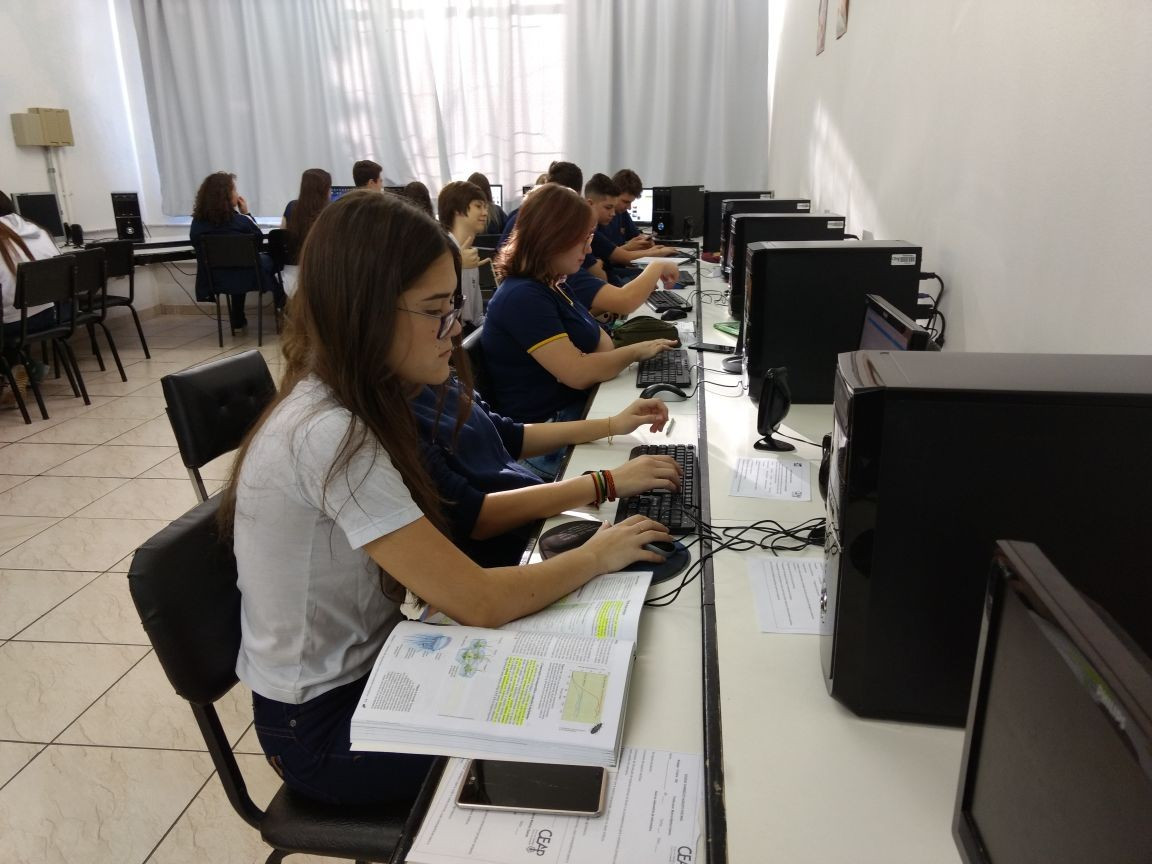 O trabalho seguiu no Laboratório de Informática, dia 18 de abril, onde os grupos analisaram as fotos e identificaram qual conceito e relação ecológica estavam implícitos, produzindo um material de estudo personalizado.
