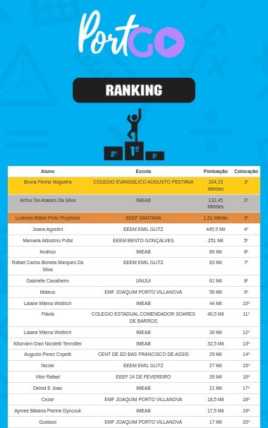 Com uma significativa pontuação a aluna do 9º ano do EF do CEAP, Bruna Peno Nogueira, ficou em 1º lugar nas duas competições. Levando o Colégio CEAP a ser premiado com o 1º lugar no ranking escolar.