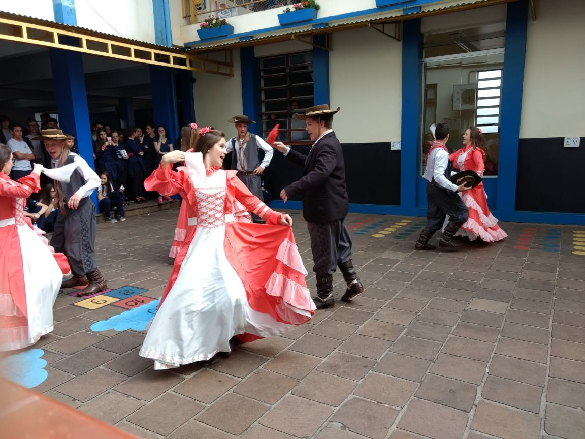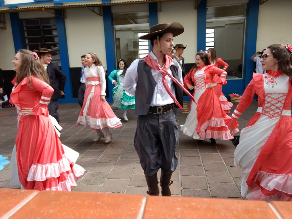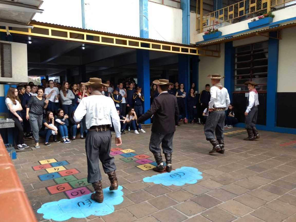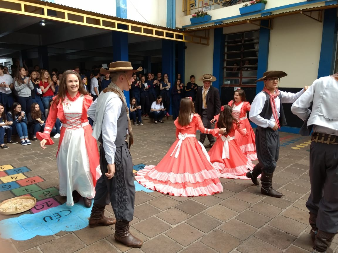Para fechar os festejos farroupilhas de 2018, a diretoria do GEMLI - Grêmio Estudantil Monteiro Lobato do CEAP de Ijuí, promoveu um momento de integração. No intervalo das aulas ofereceram bolo frito aos alunos durante a apresentação artística da invernada do CTG Gaspar da Silveira Martins de Ajuricaba.