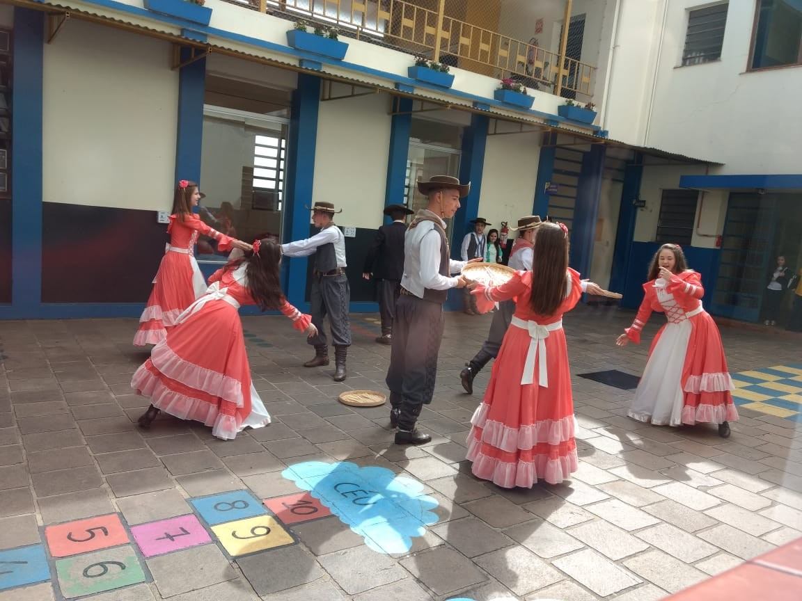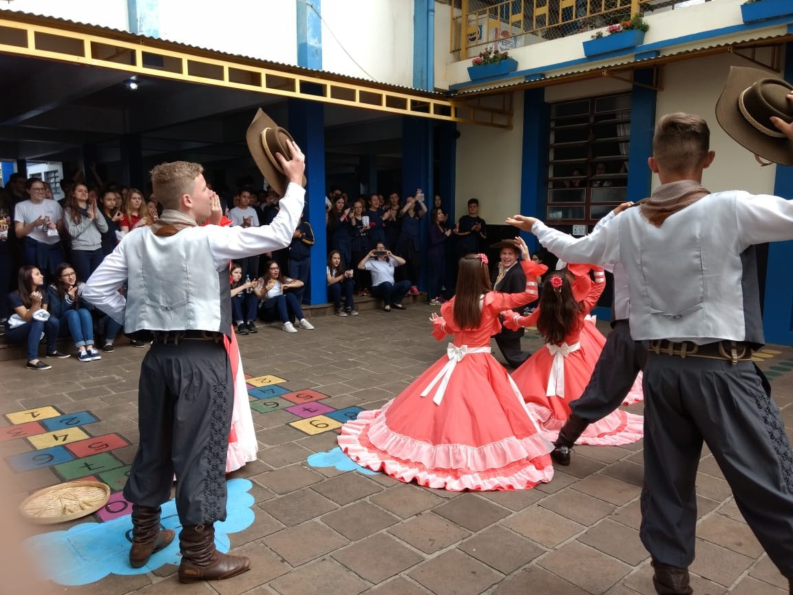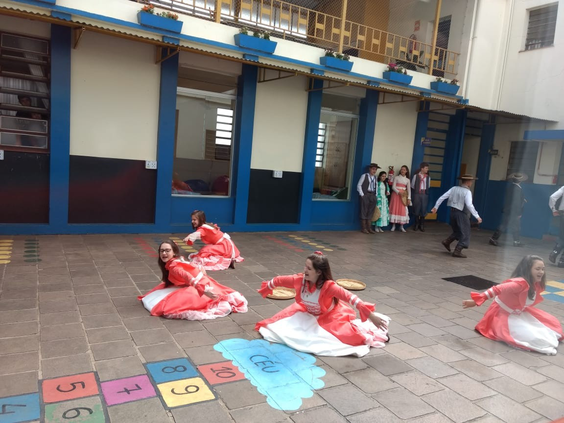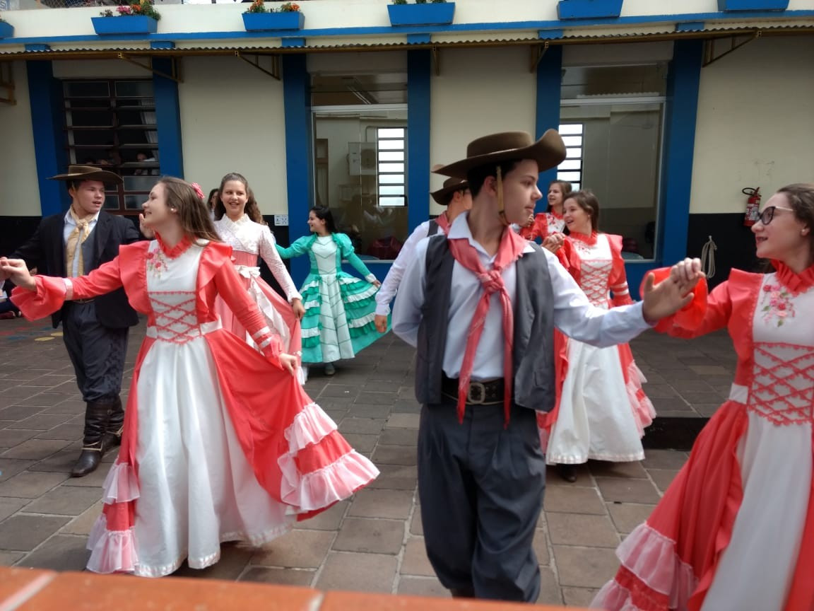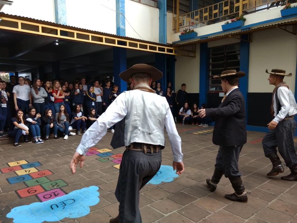 Para fechar os festejos farroupilhas de 2018, a diretoria do GEMLI - Grêmio Estudantil Monteiro Lobato do CEAP de Ijuí, promoveu um momento de integração. No intervalo das aulas ofereceram bolo frito aos alunos durante a apresentação artística da invernada do CTG Gaspar da Silveira Martins de Ajuricaba.
