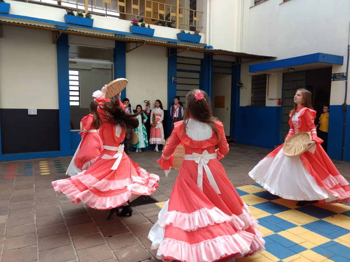Os alunos assistiram atentos as danças e saborearam os deliciosos bolinhos fritos. A programação da semana farroupilha foi intensa e já deixa saudades.