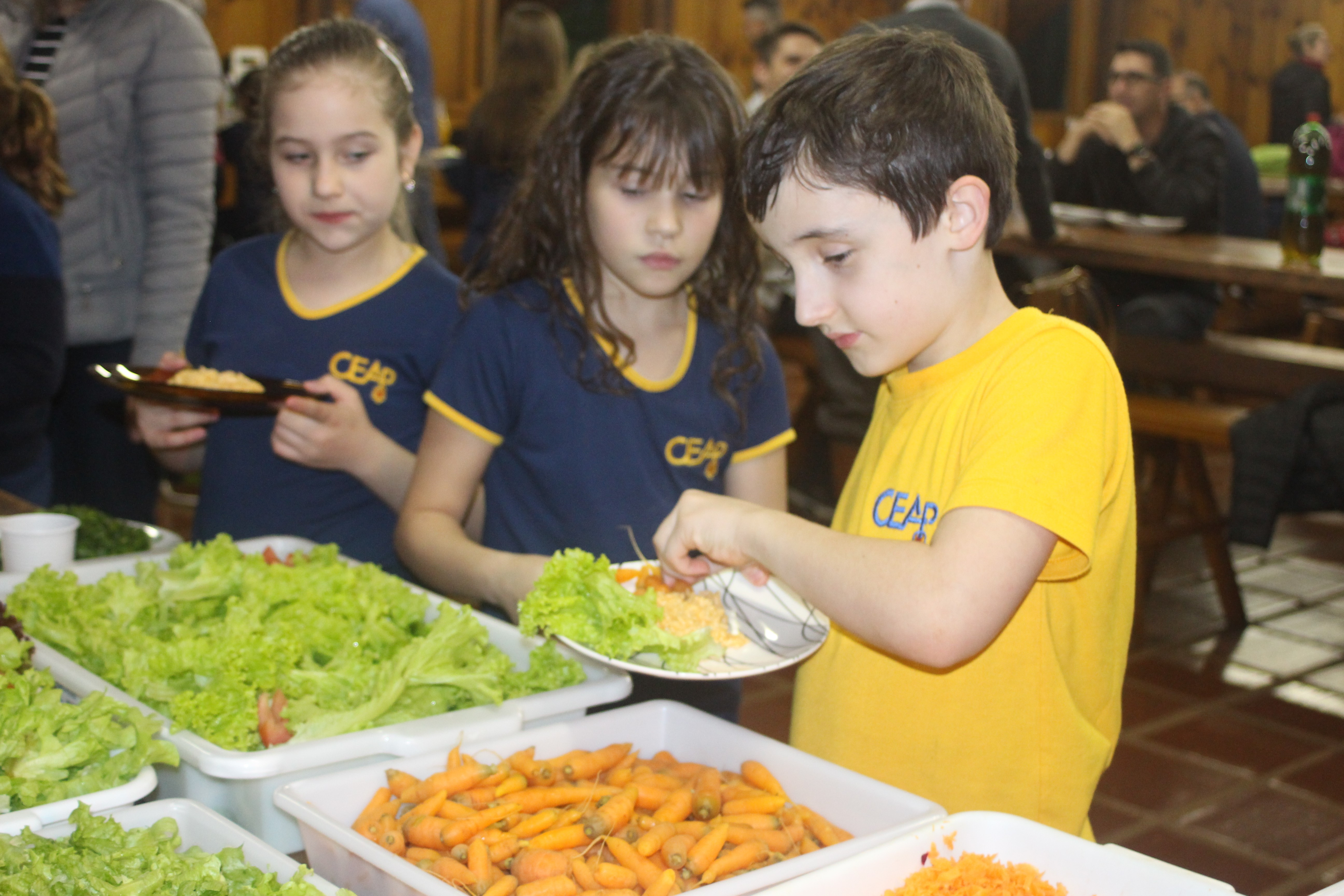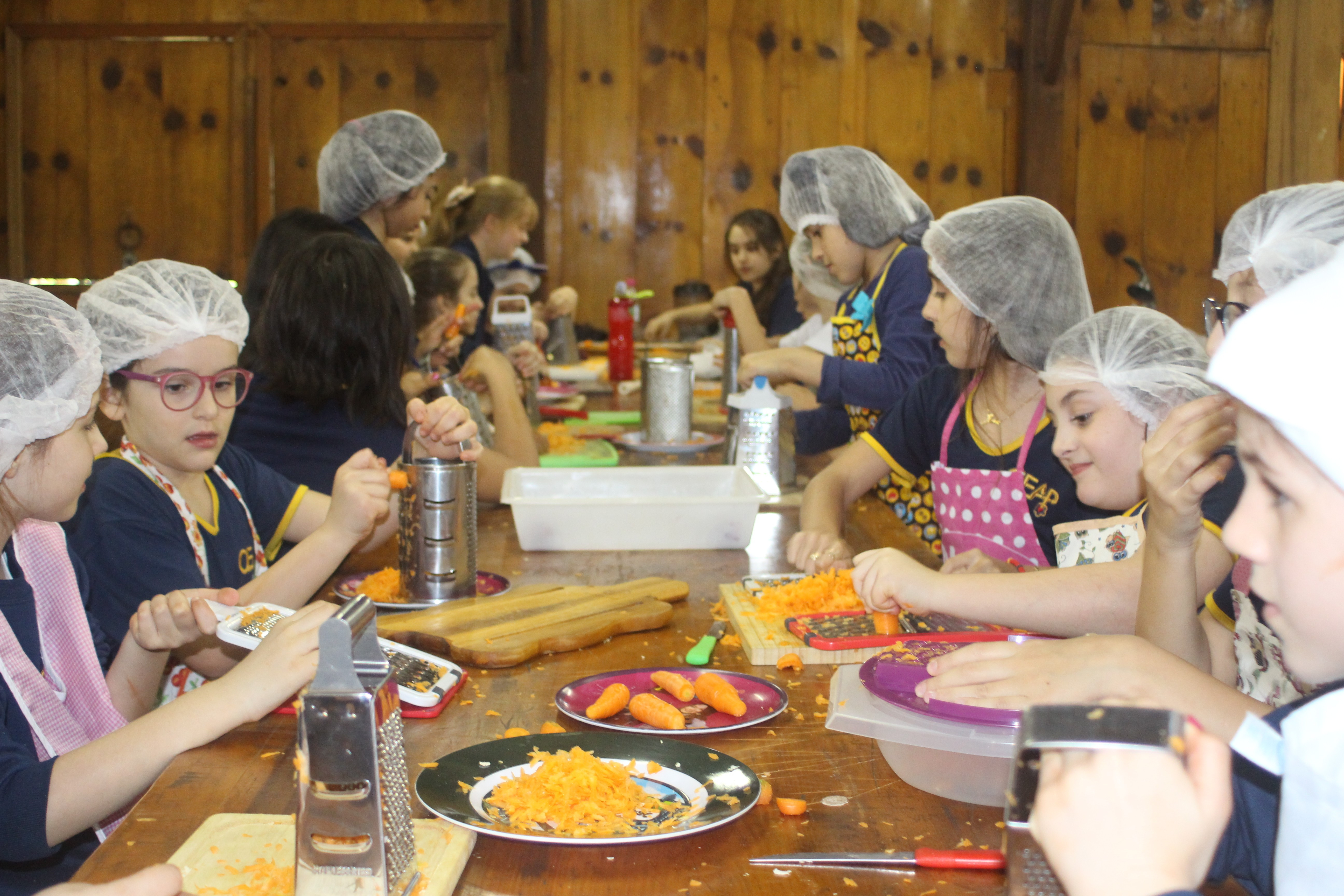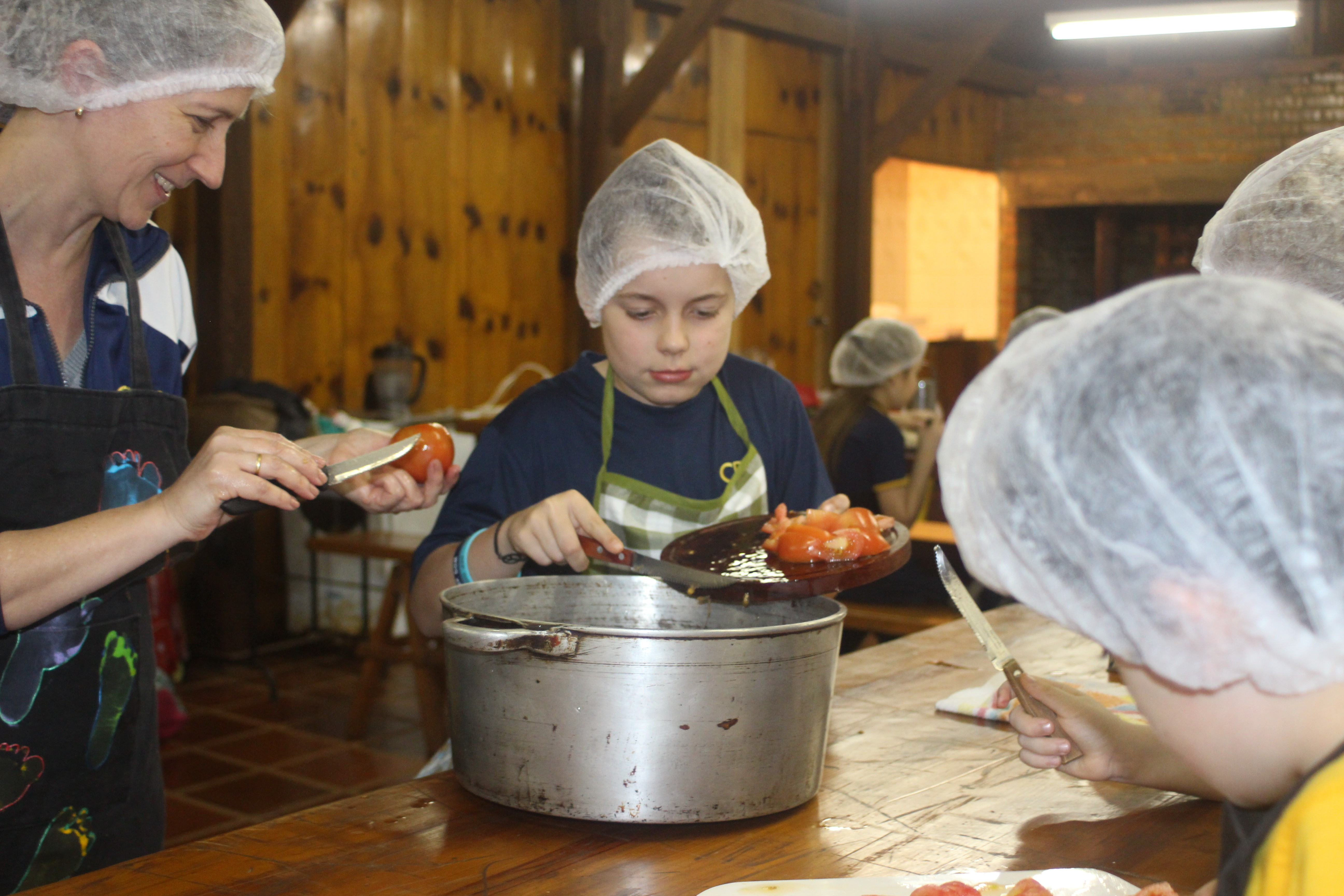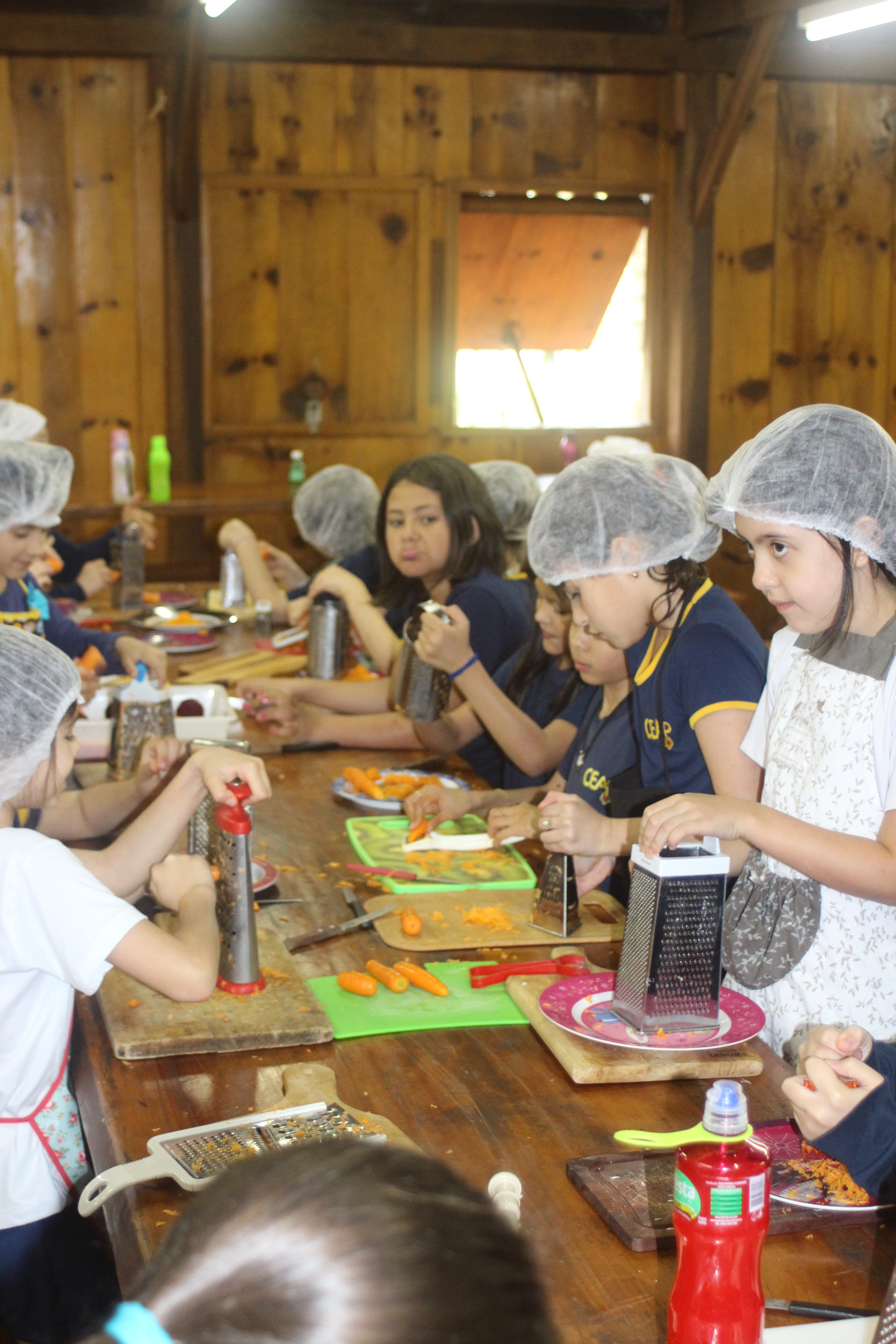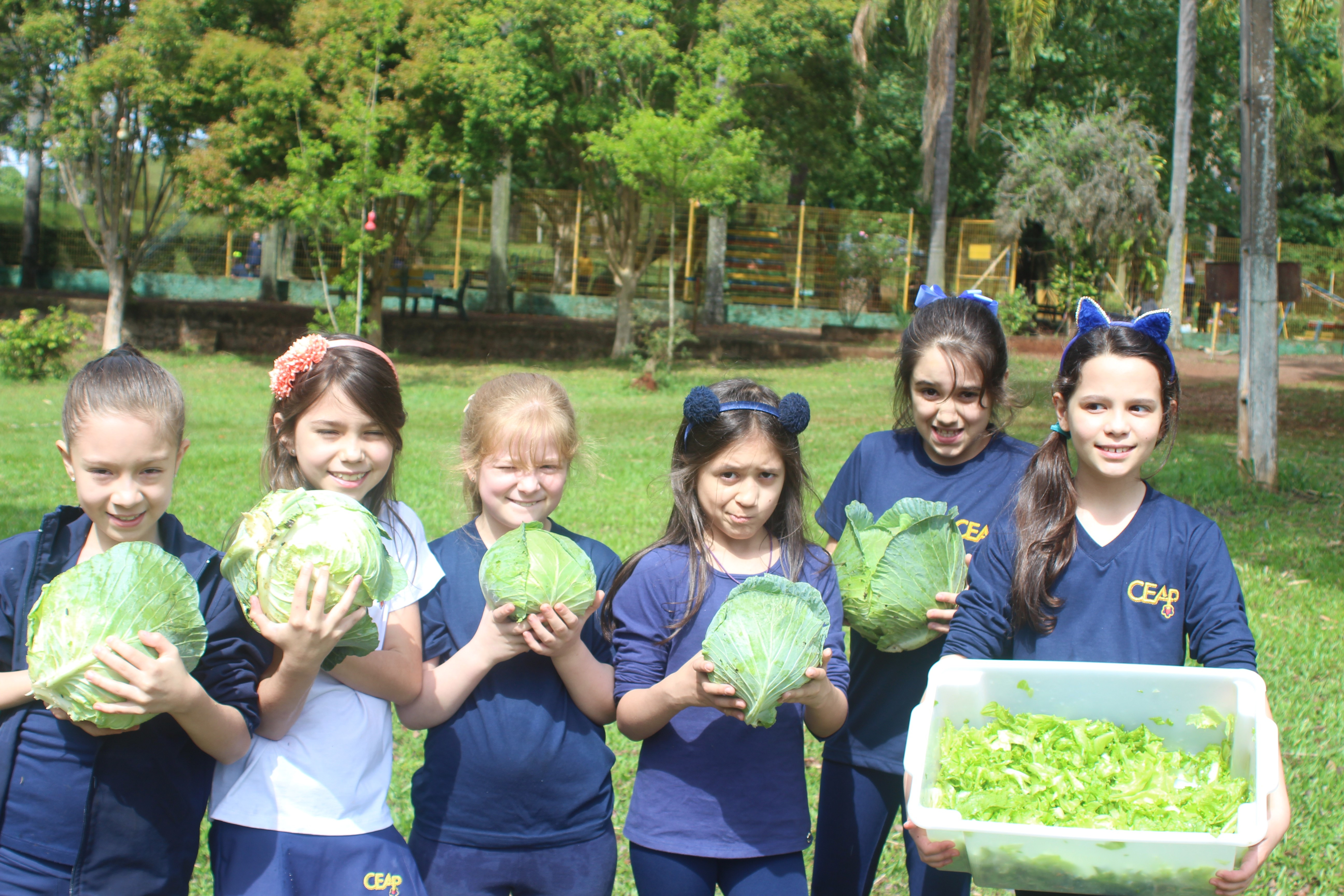 A alegria da colheita estava estampada nos sorrisos. E para confraternizar convidaram os pais para comerem as saladinhas acompanhadas de um delicioso risoto, feito pelas voluntárias mamães.