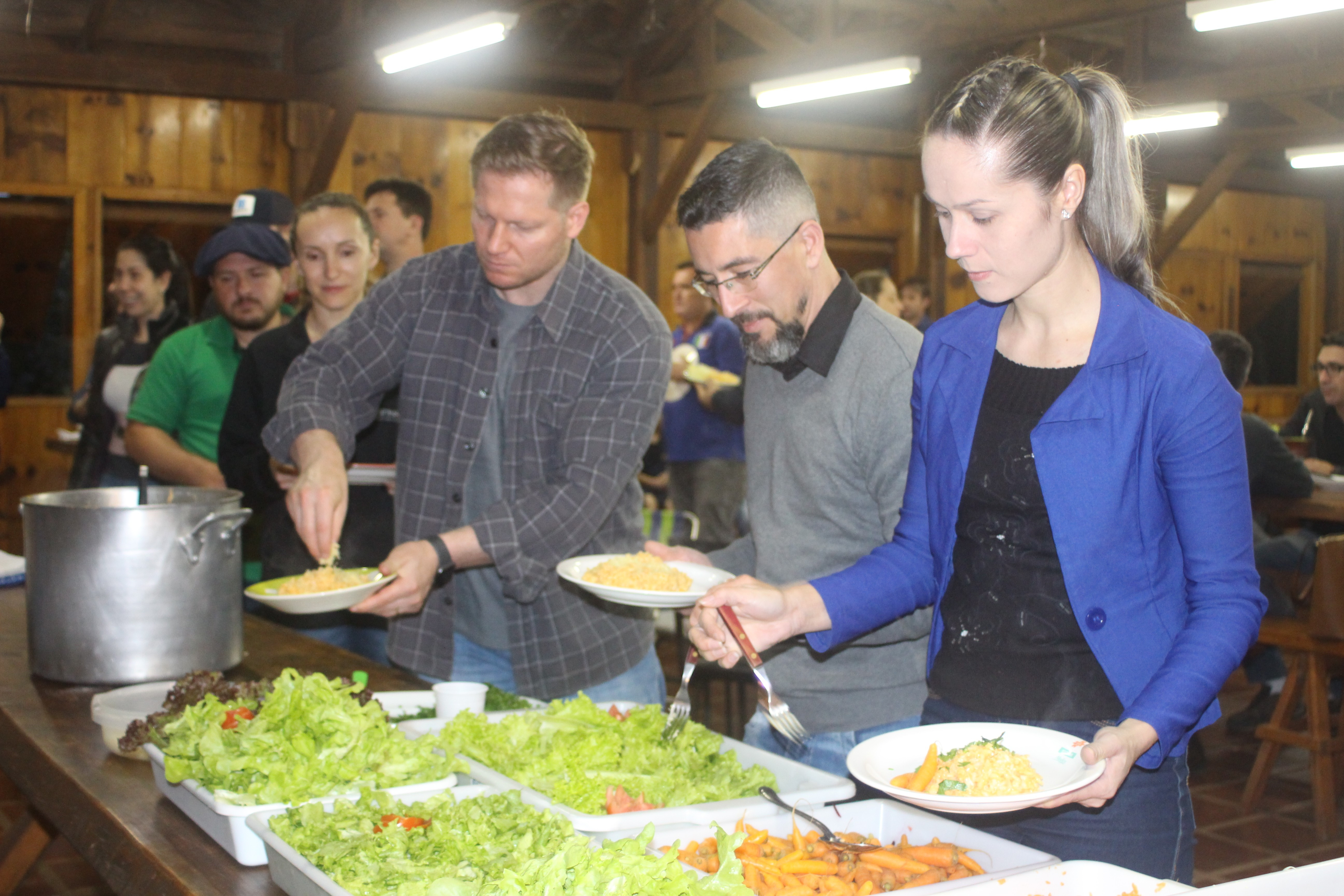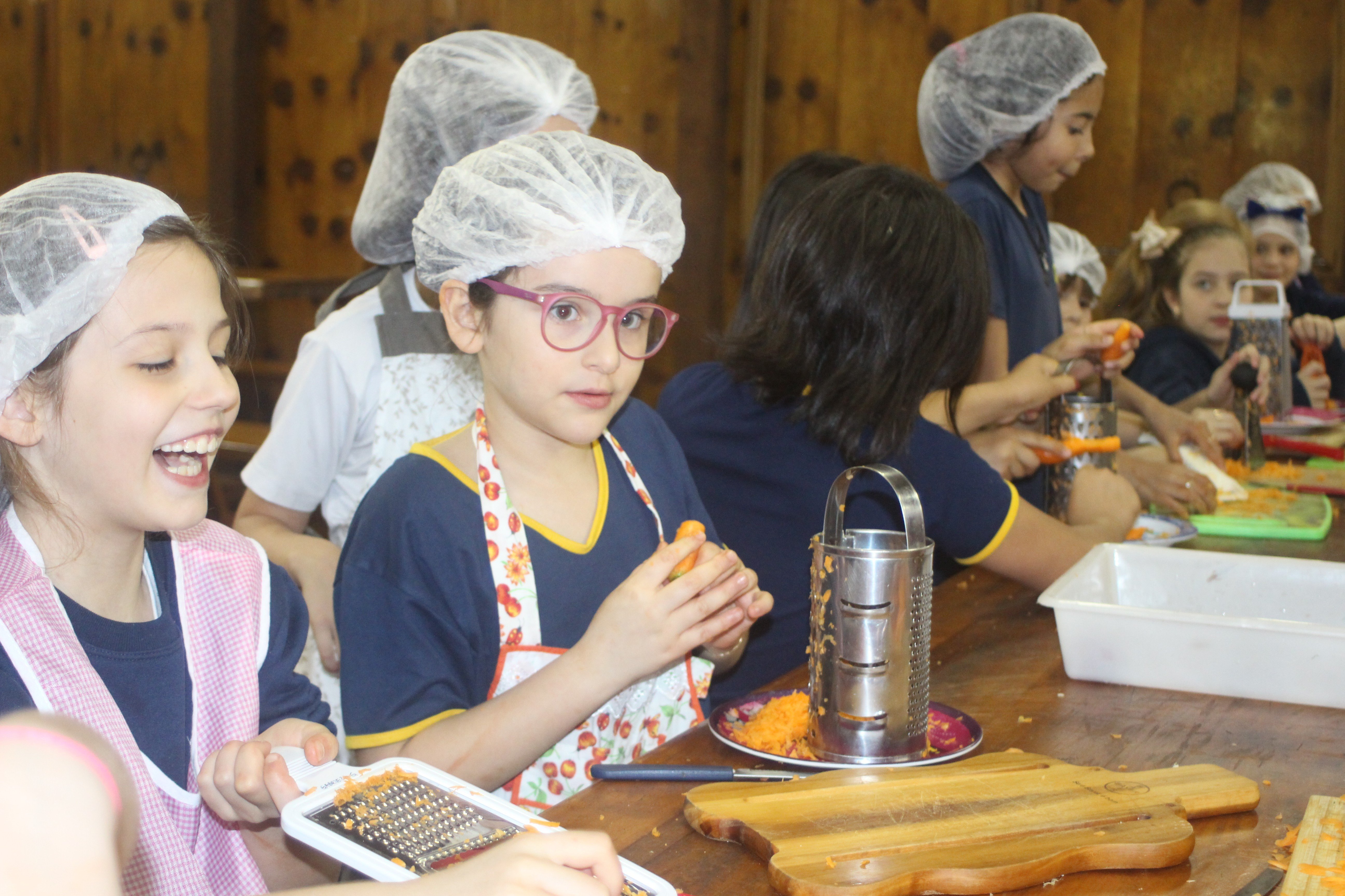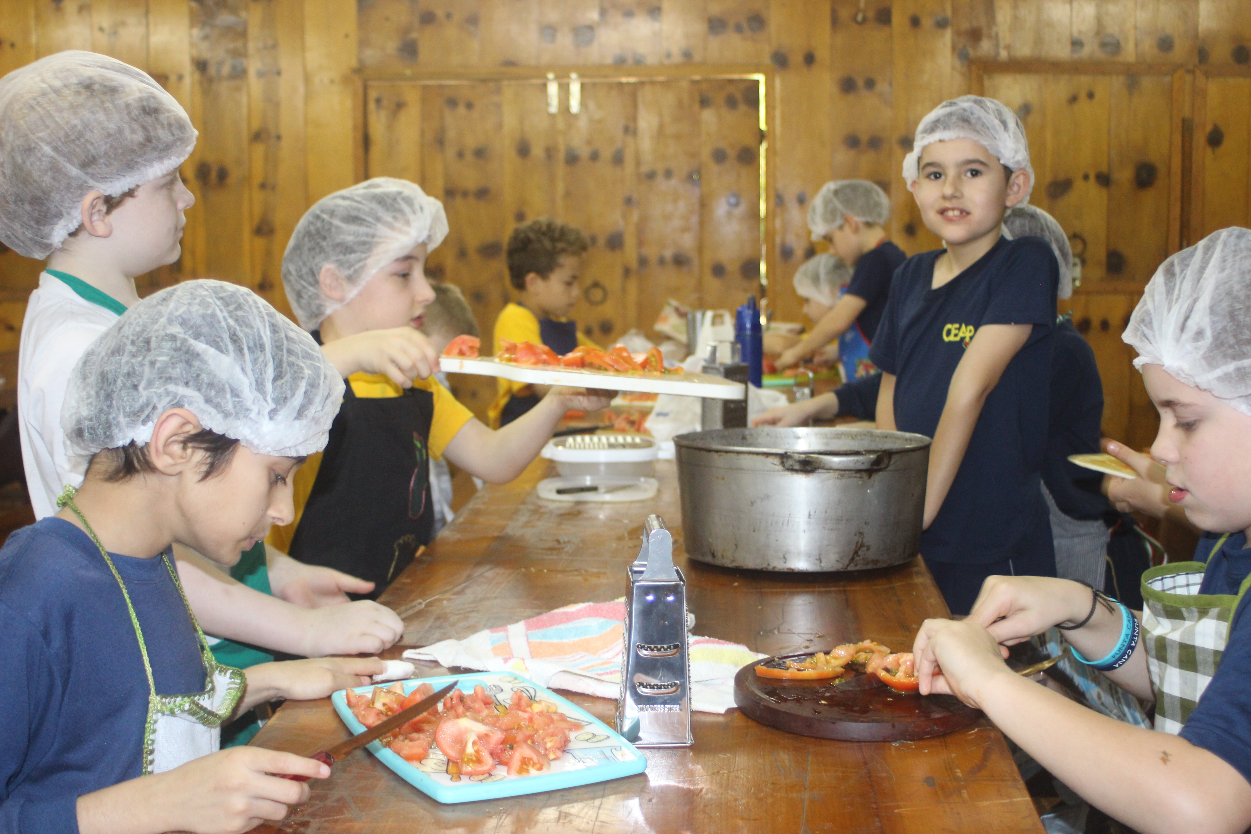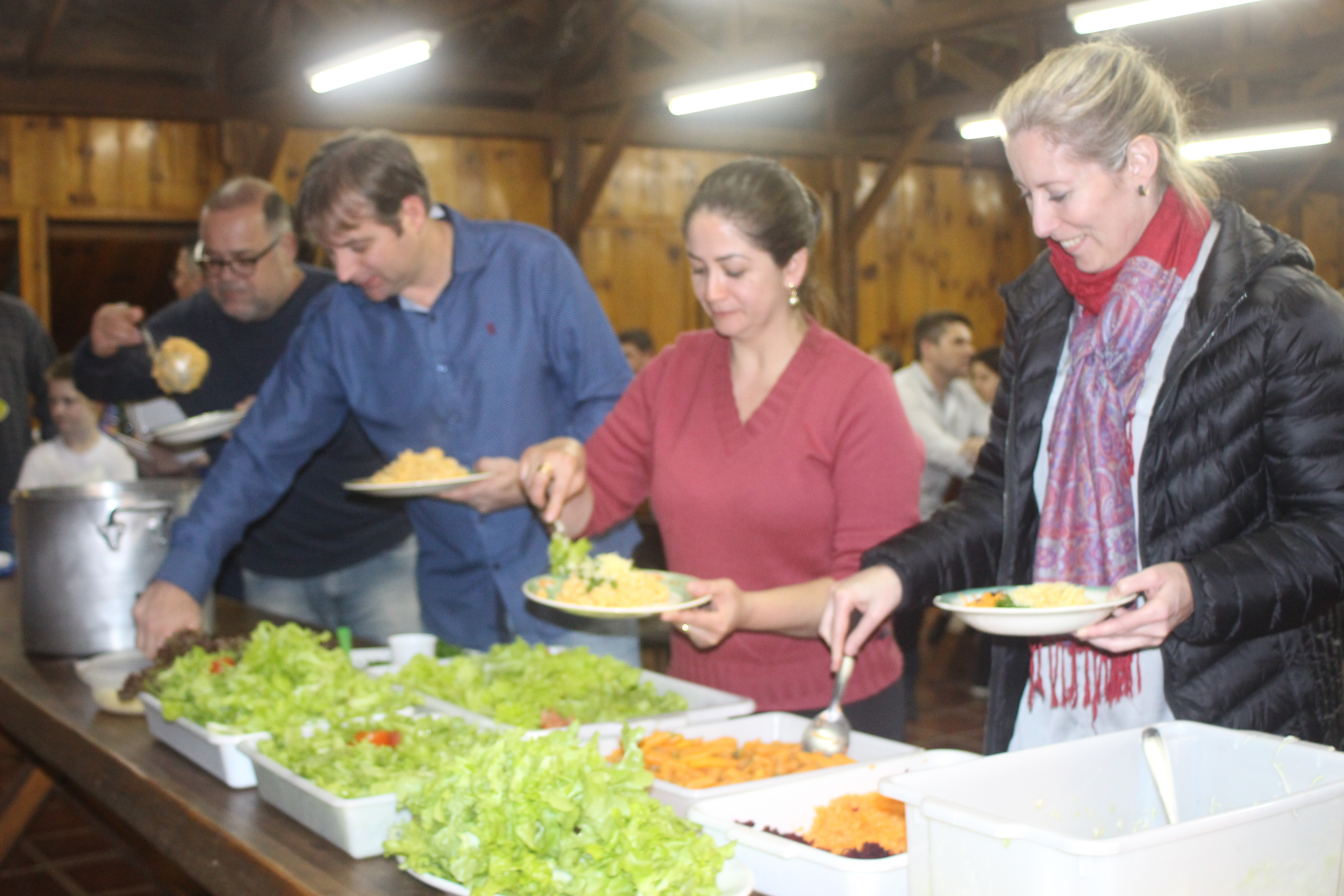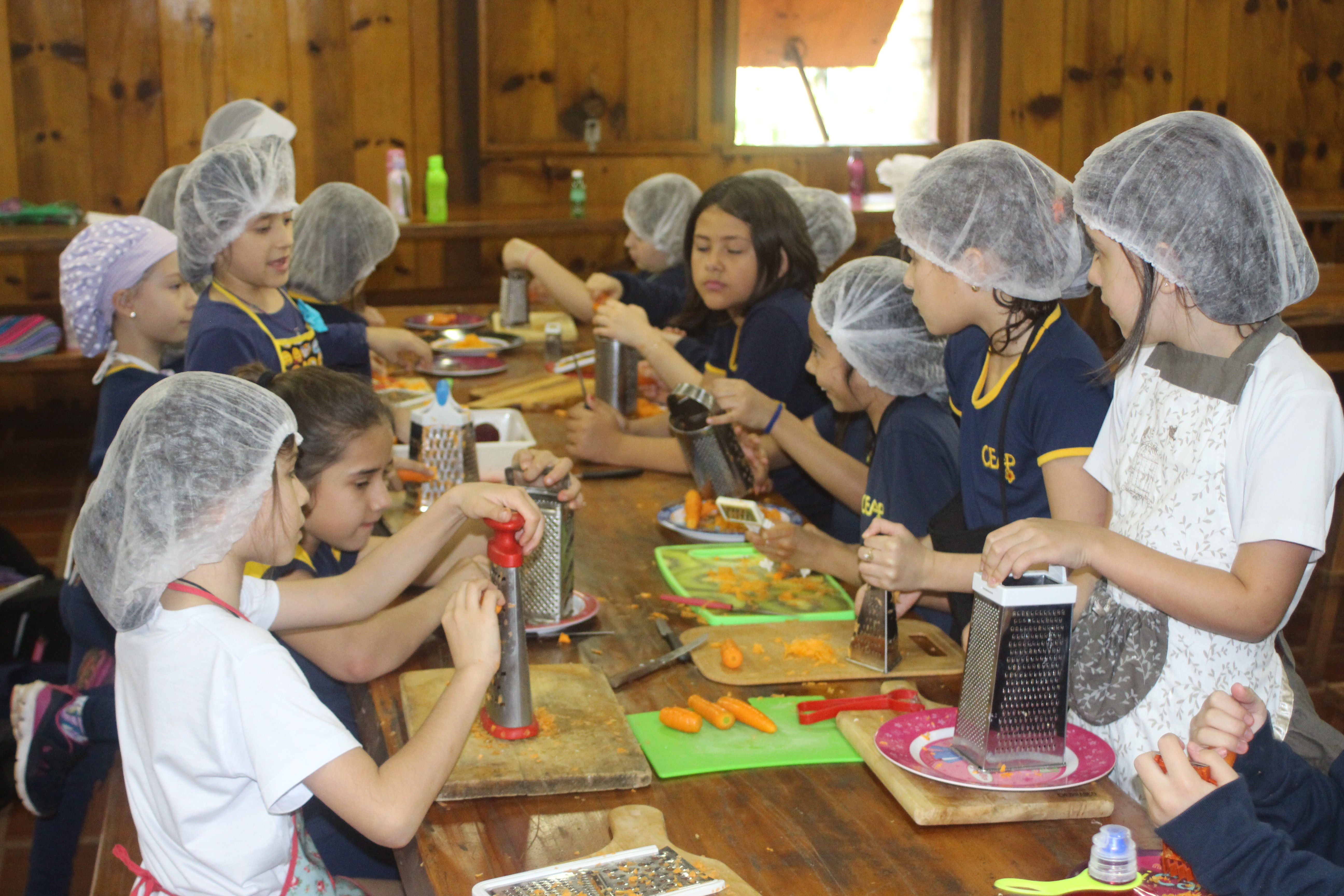 A alegria da colheita estava estampada nos sorrisos. E para confraternizar convidaram os pais para comerem as saladinhas acompanhadas de um delicioso risoto, feito pelas voluntárias mamães.