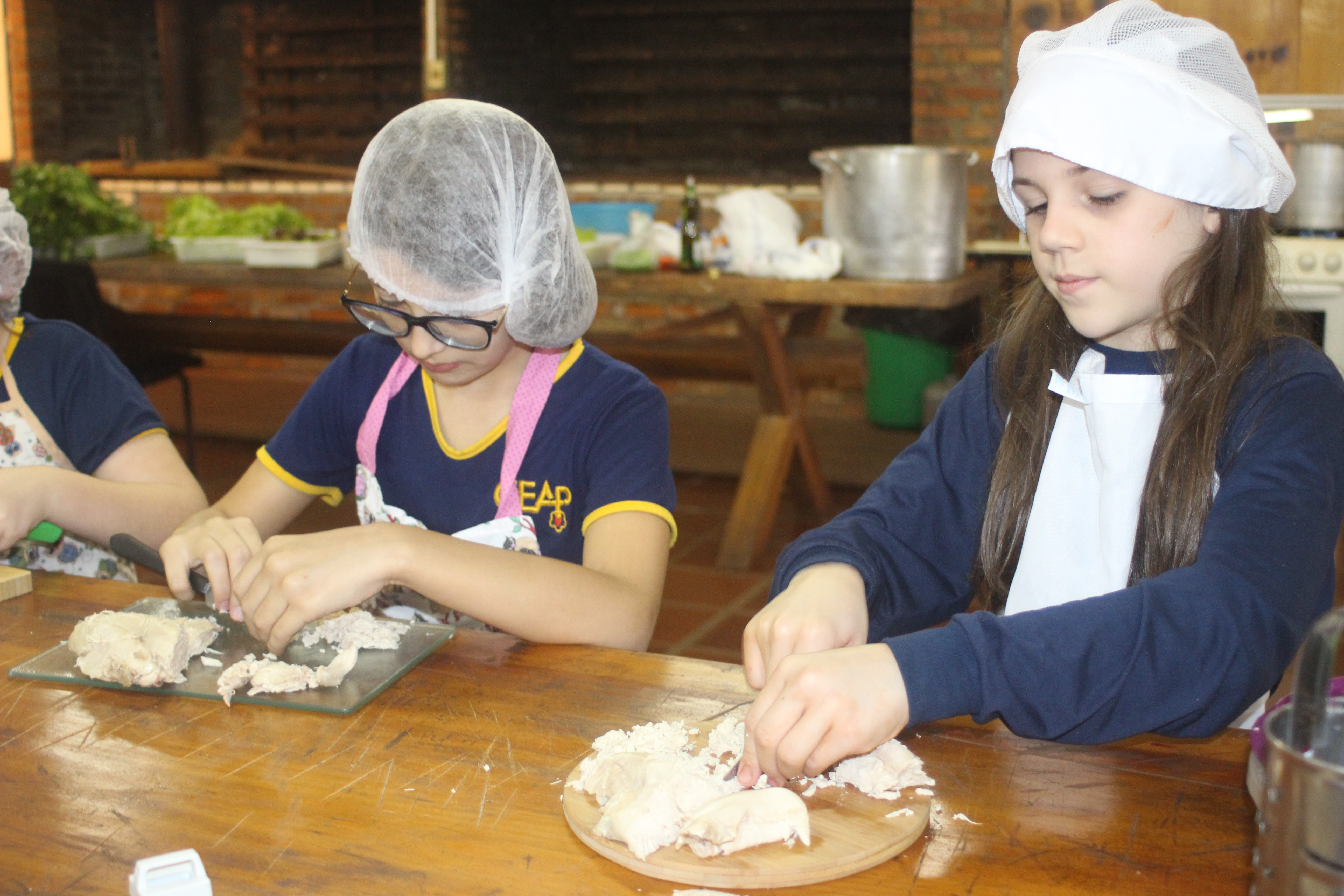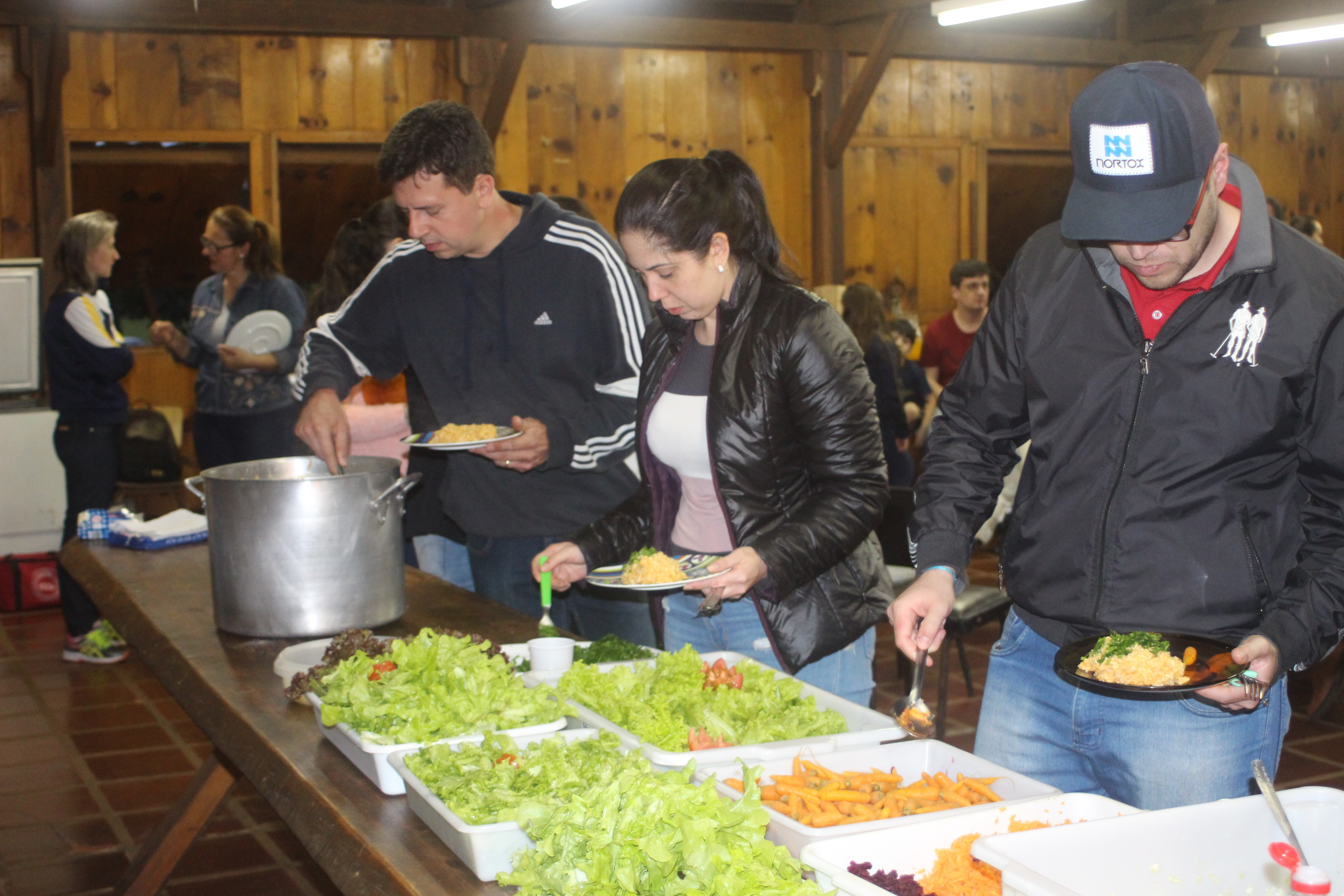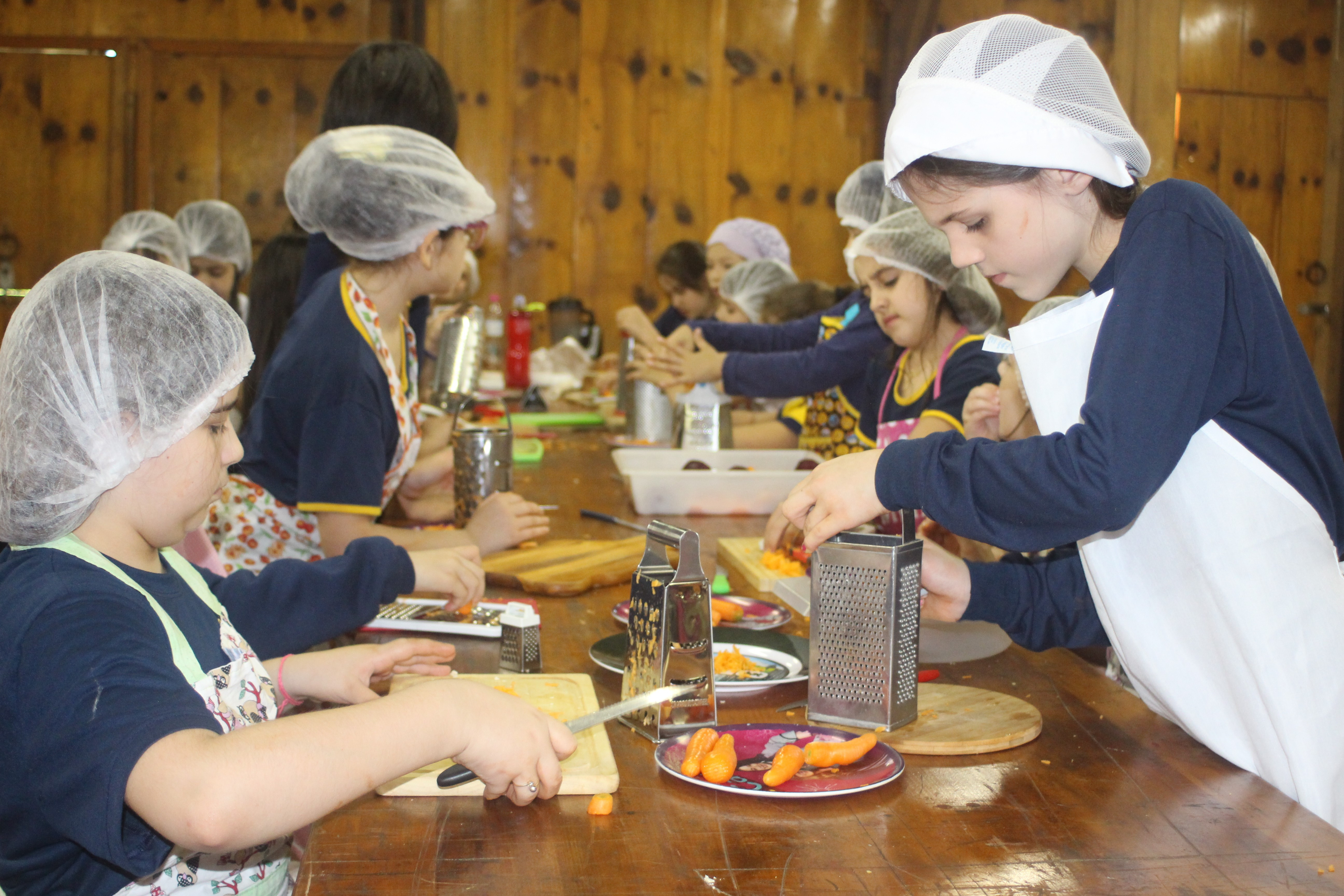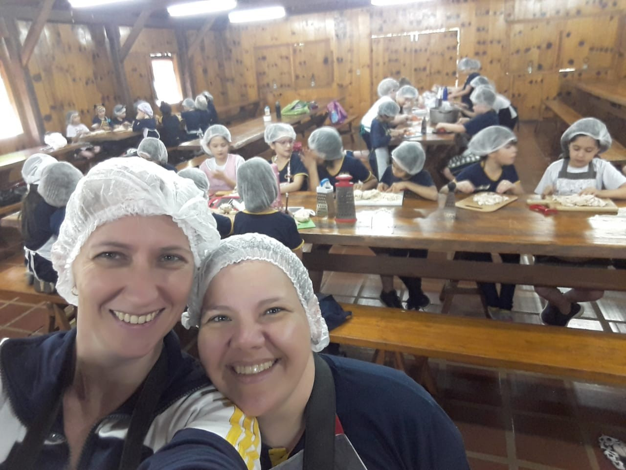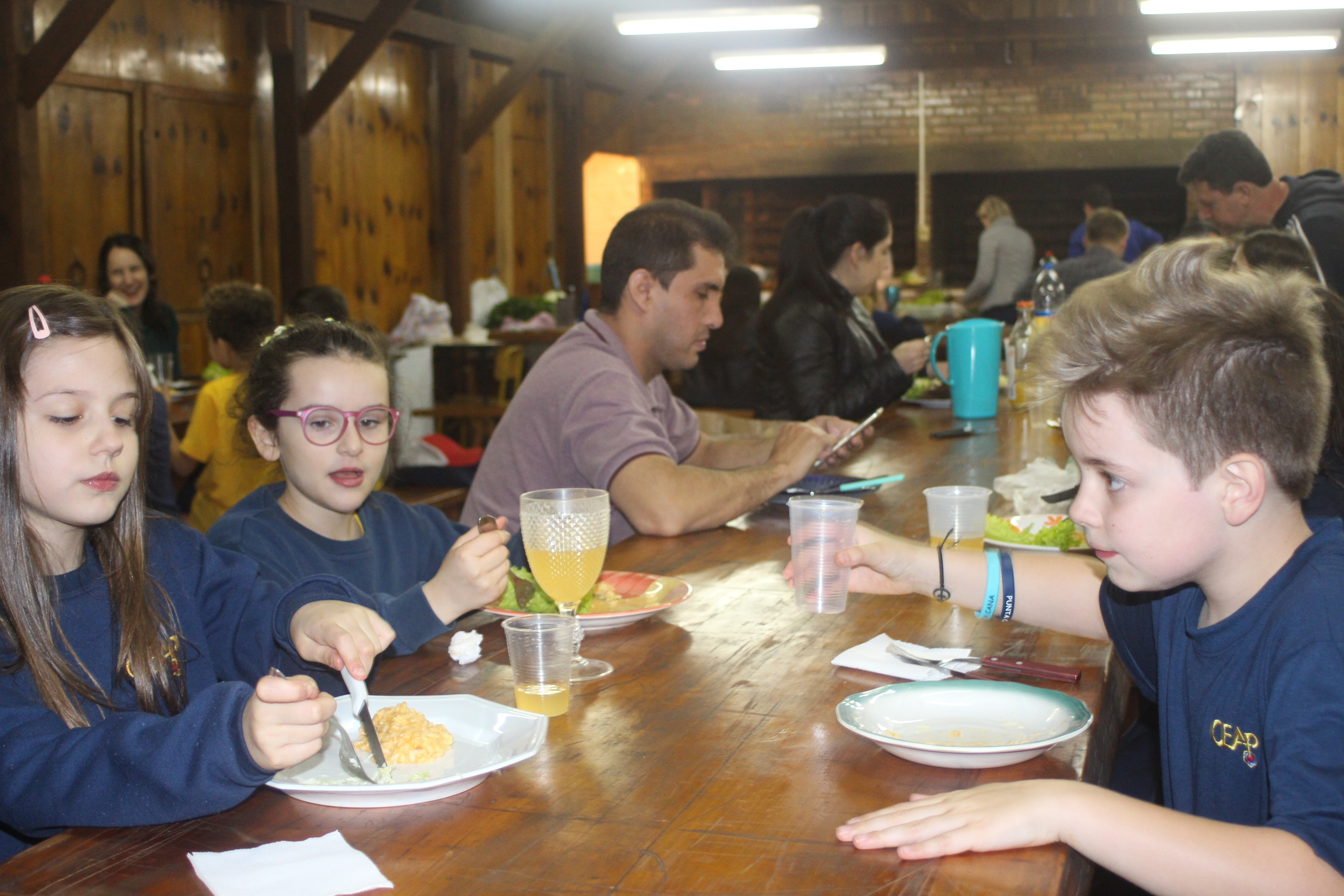 A alegria da colheita estava estampada nos sorrisos. E para confraternizar convidaram os pais para comerem as saladinhas acompanhadas de um delicioso risoto, feito pelas voluntárias mamães.