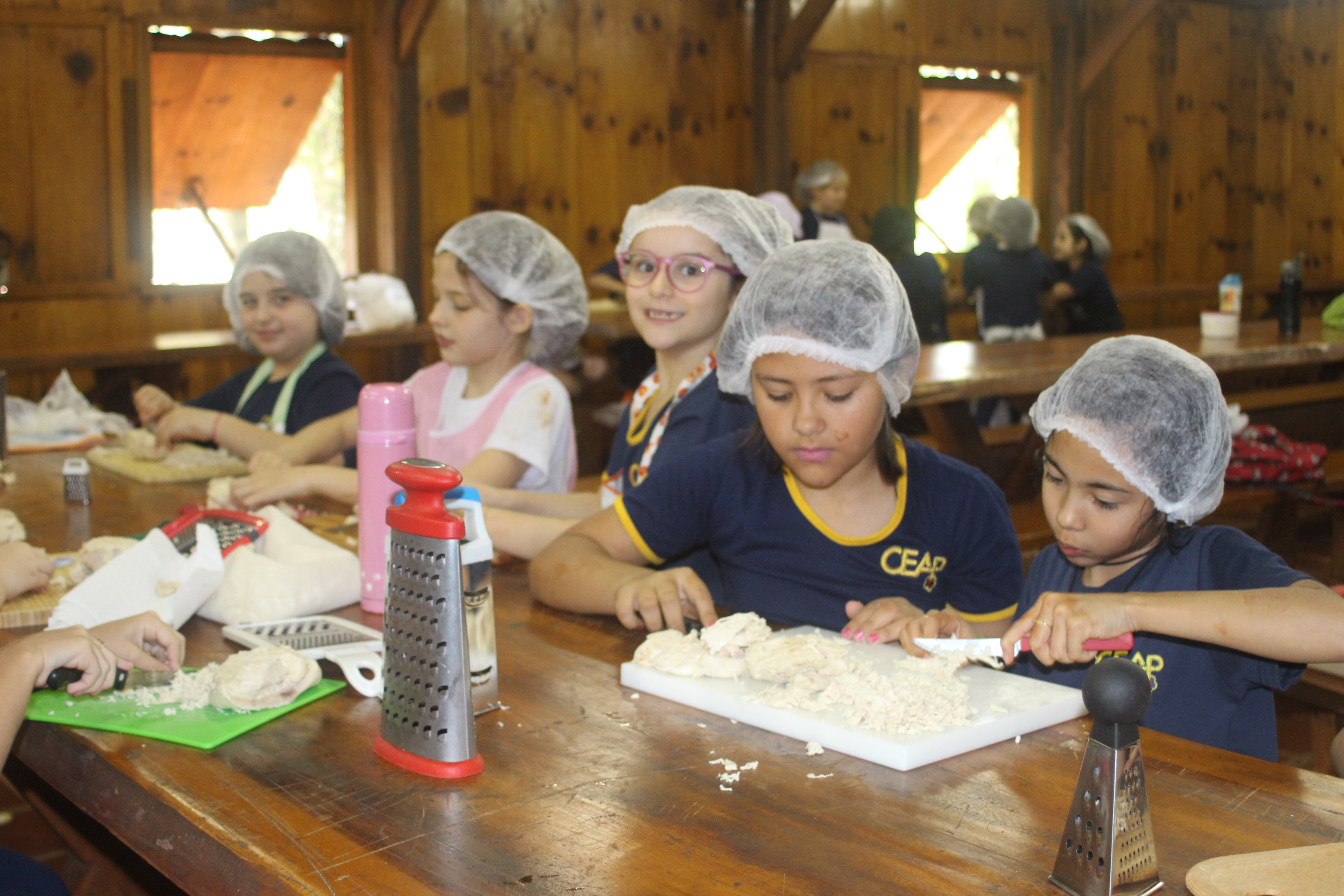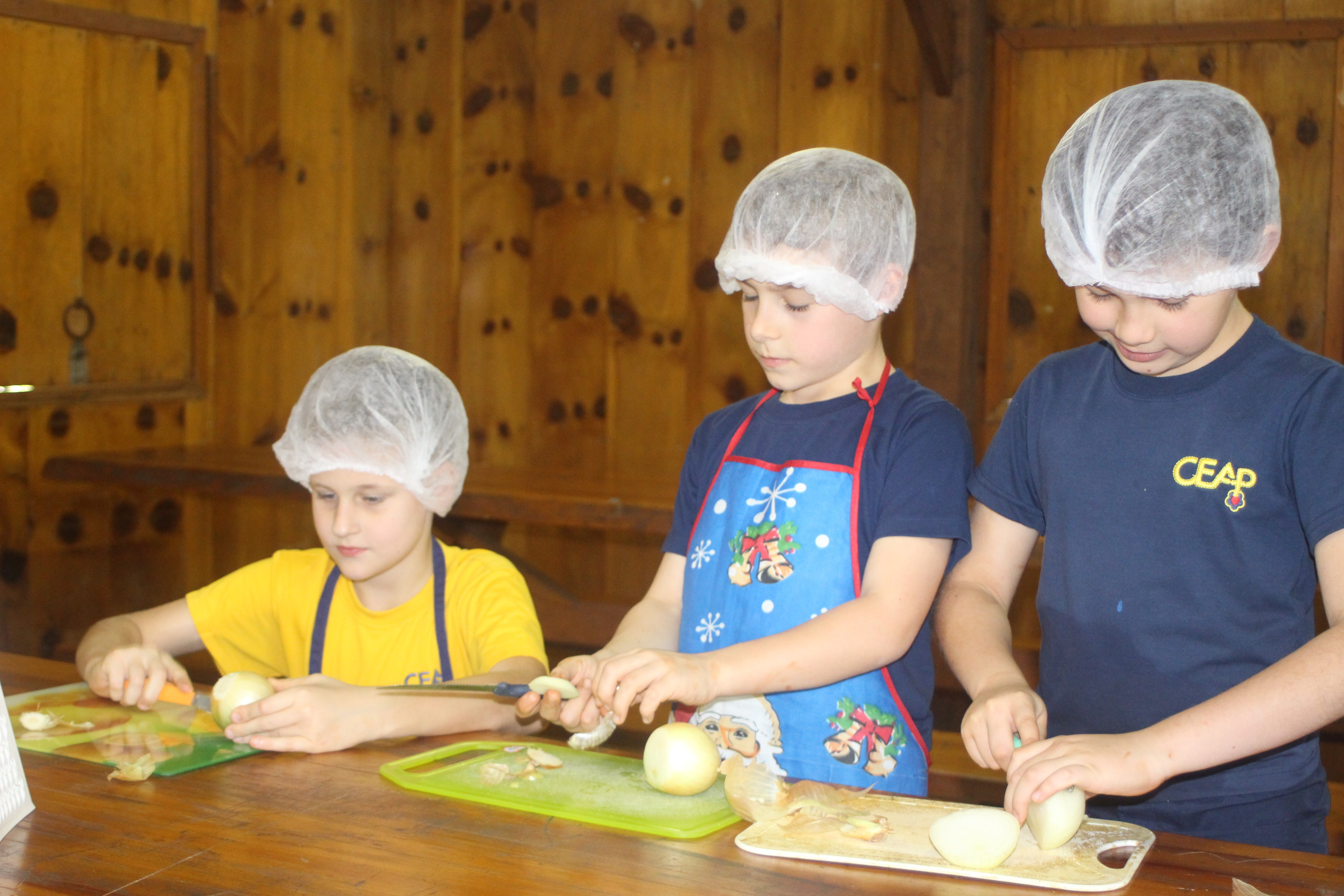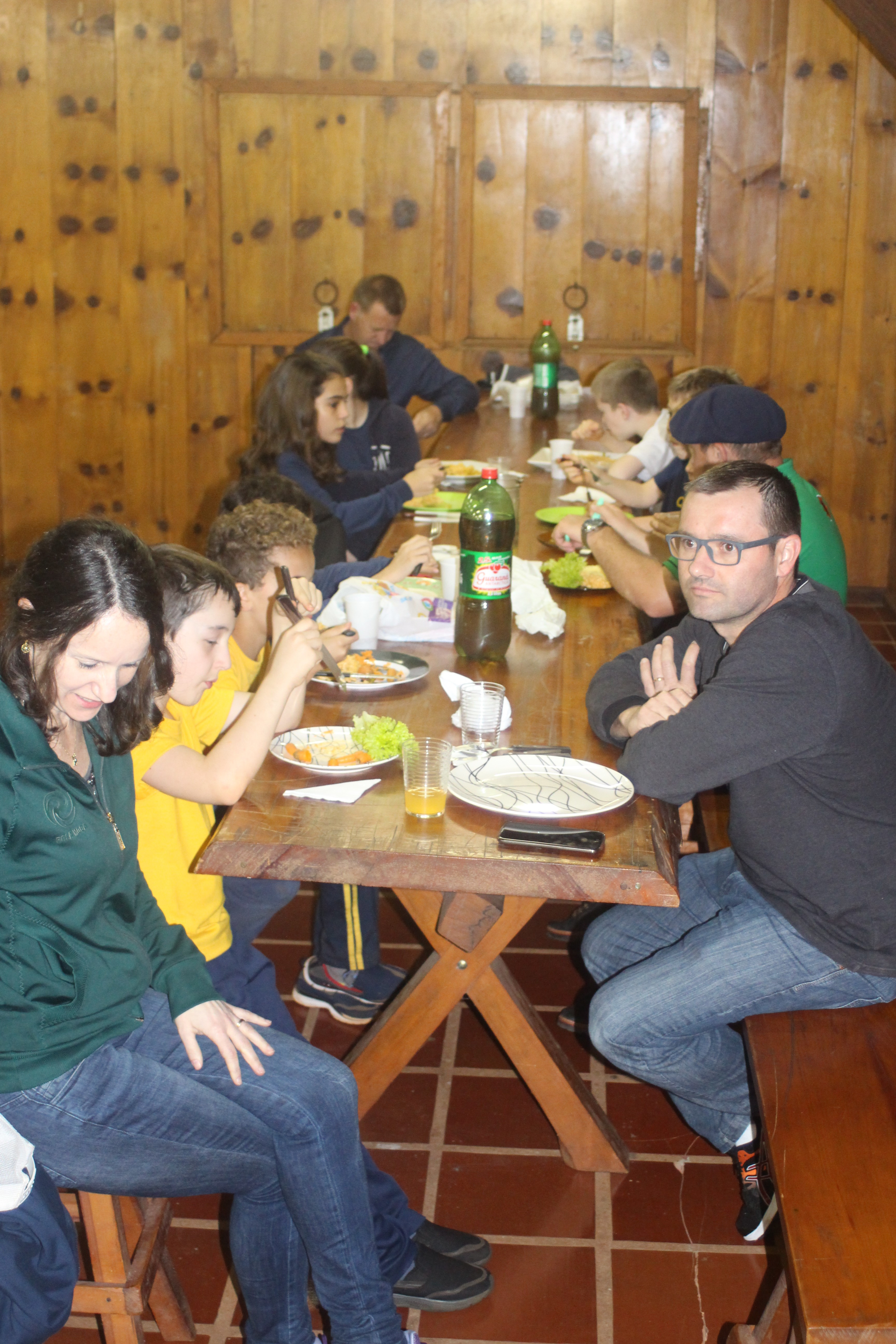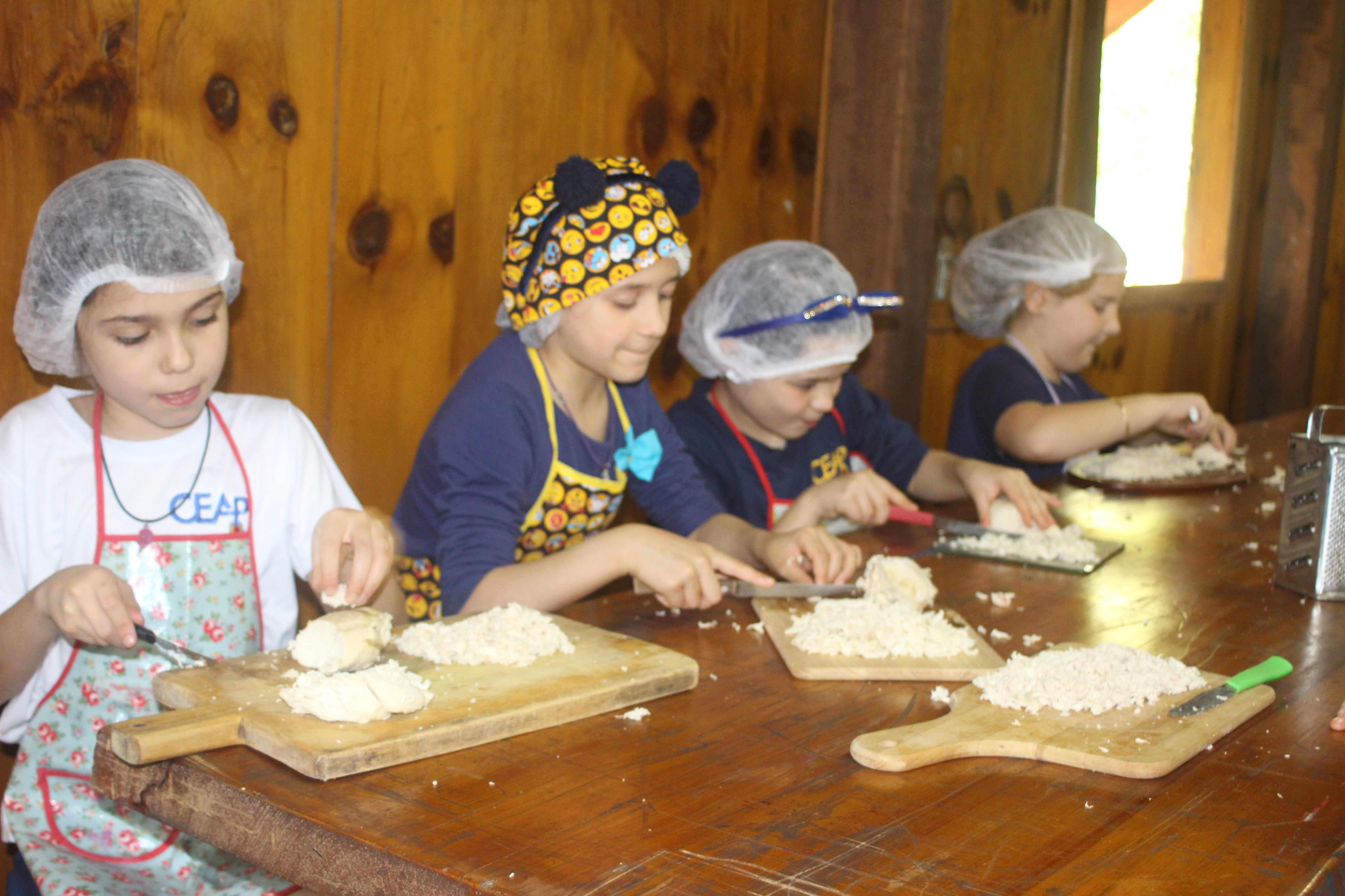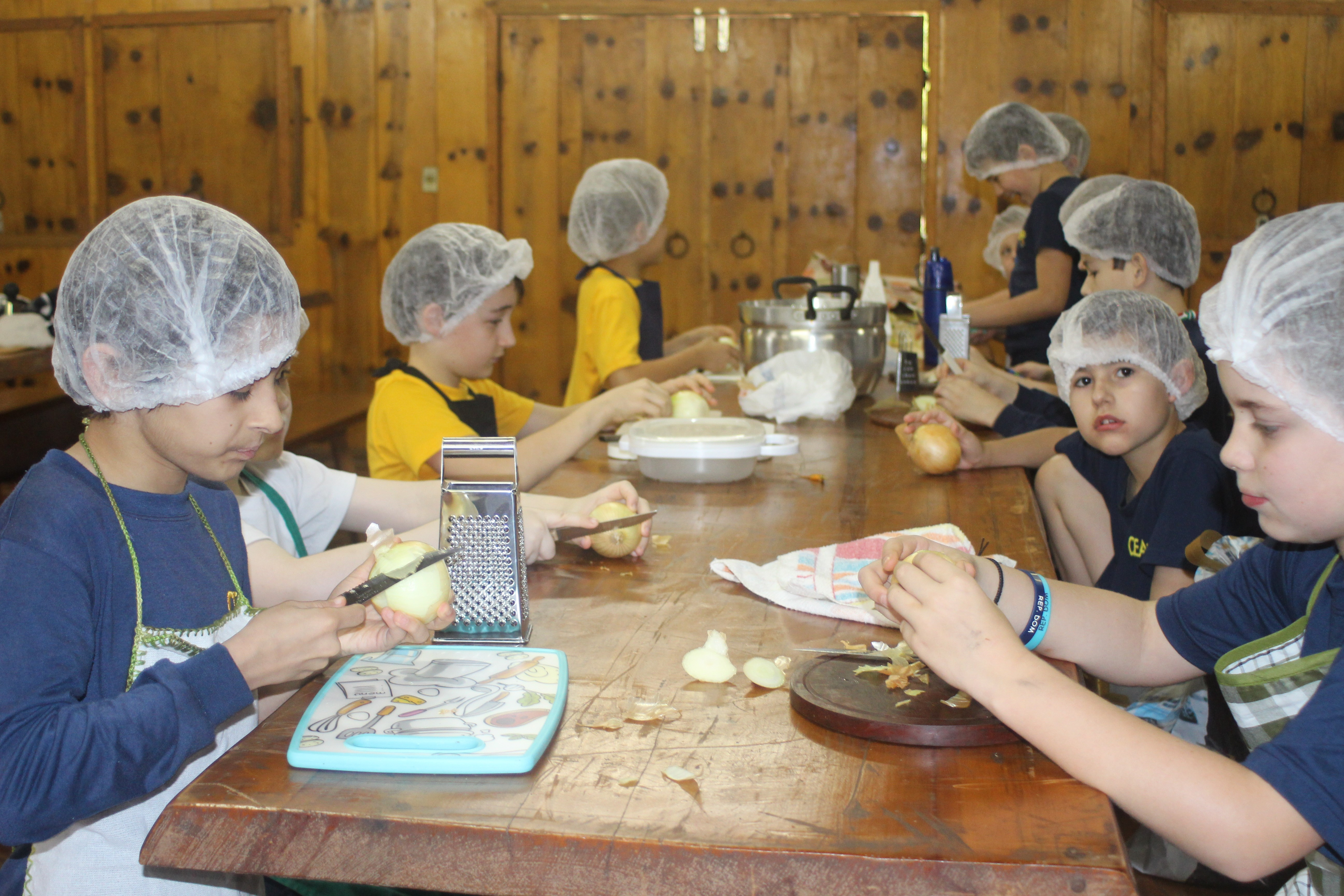 A alegria da colheita estava estampada nos sorrisos. E para confraternizar convidaram os pais para comerem as saladinhas acompanhadas de um delicioso risoto, feito pelas voluntárias mamães.