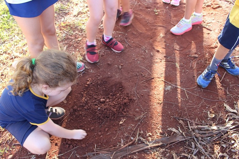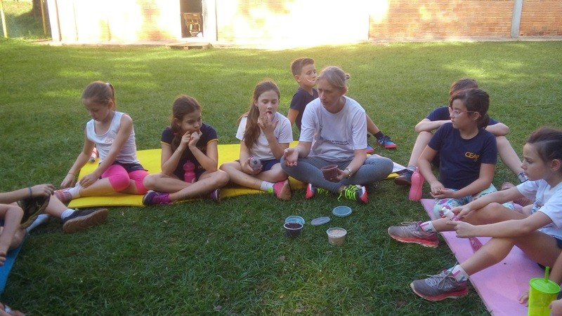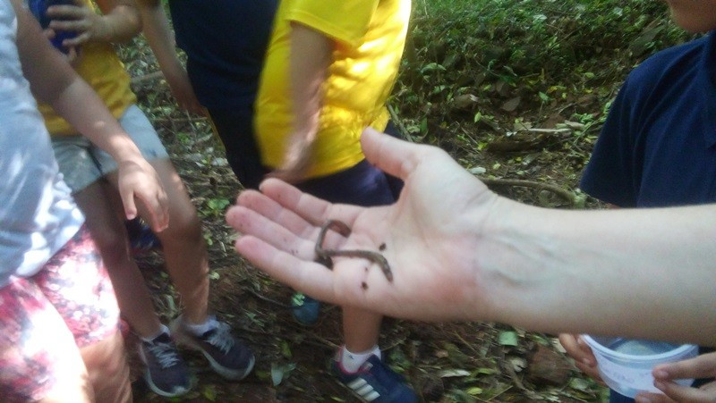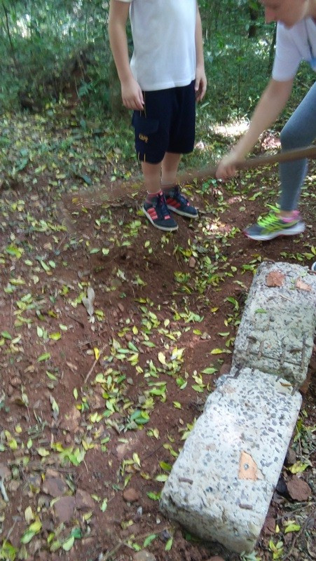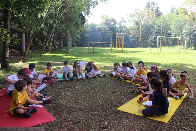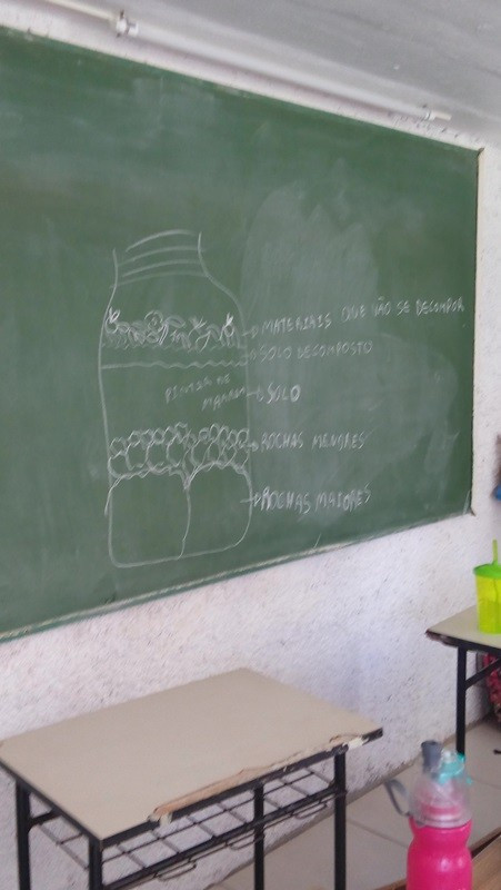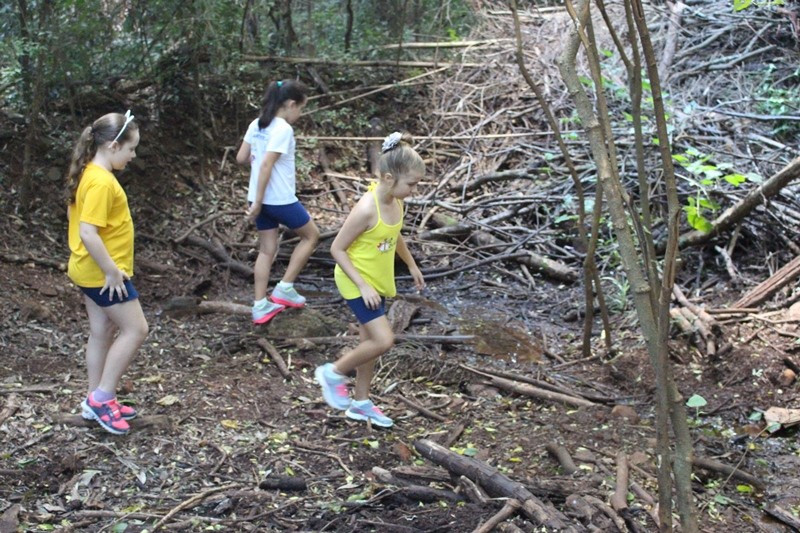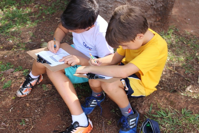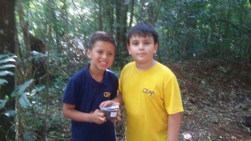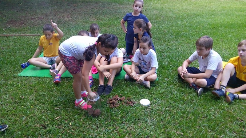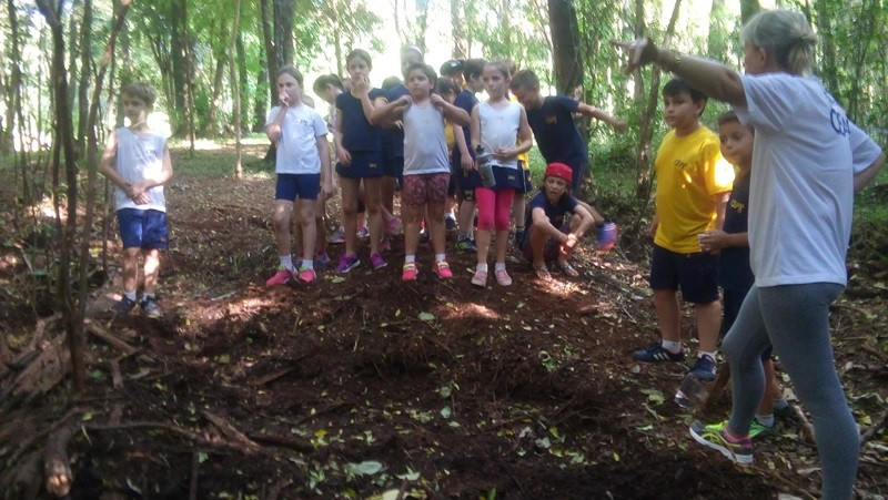 A formação do solo e os tipos diferentes de solo foram explorados em aula do 3º ano do Ensino Fundamental no Campo do CEAP. Para exemplificar a formação do solo, as professoras Bárbara Basso e Marlova Groth coletaram rochas, fragmentos de solo, materiais em decomposição e, com eles, montaram as camadas do solo em um vidro transparente.