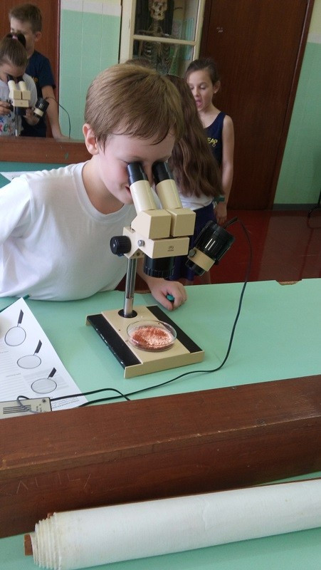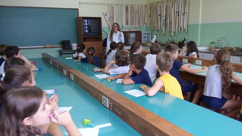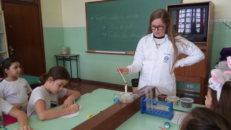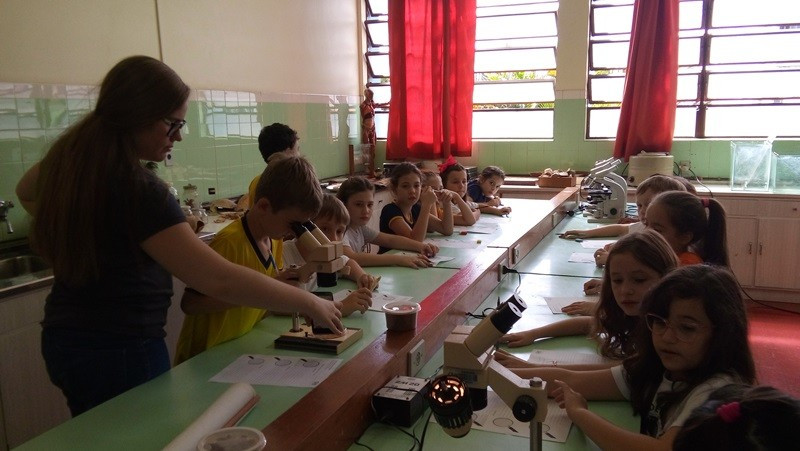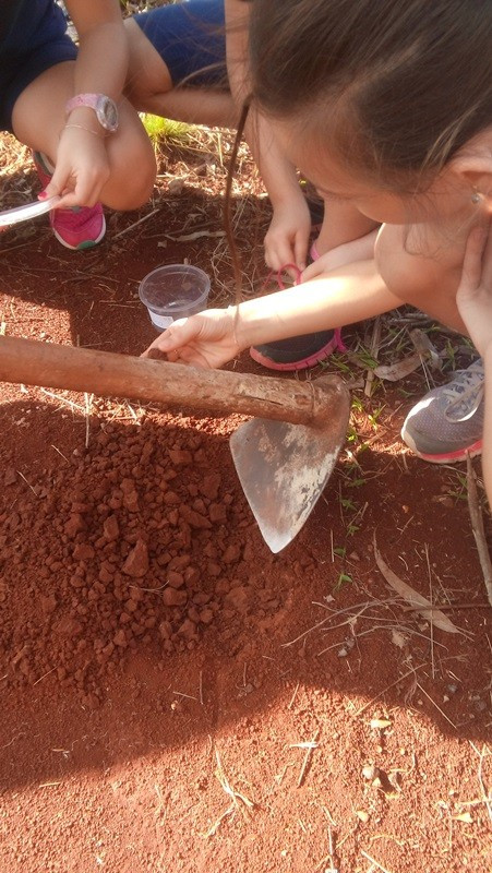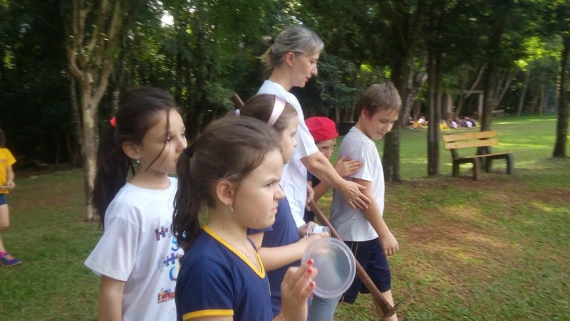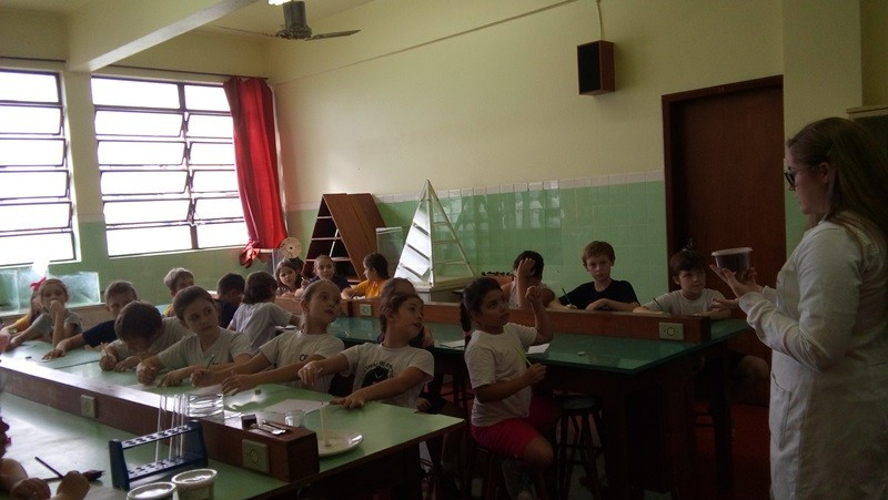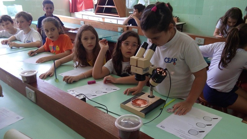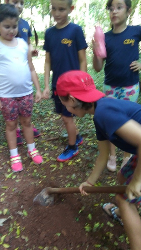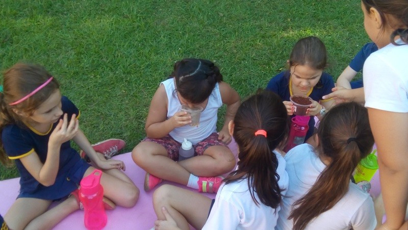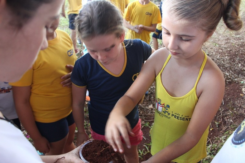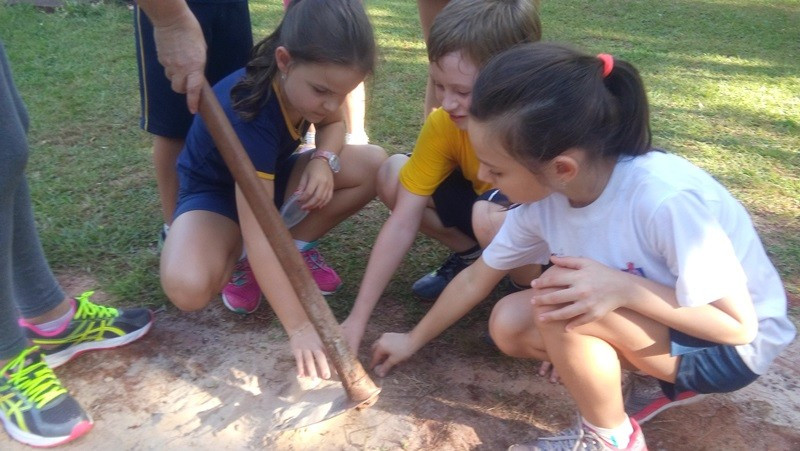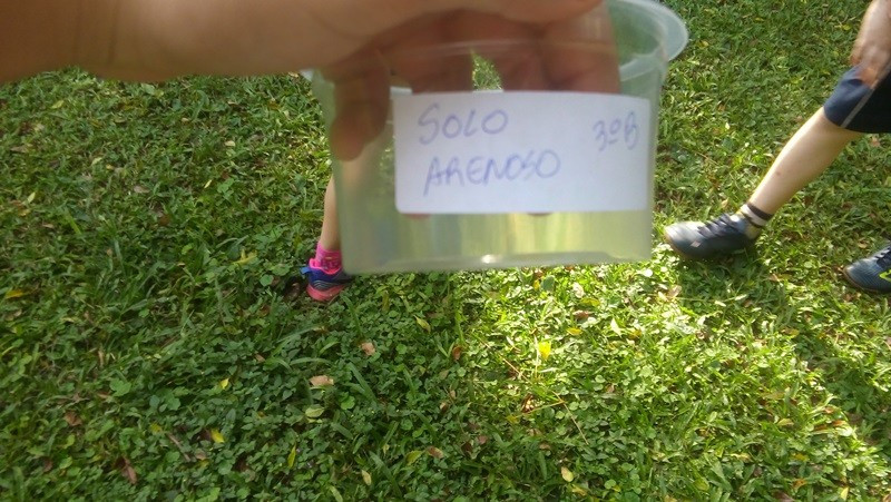 Depois as turmas fizeram coletas de solo arenoso, humífero e argiloso. A sequência dessa aula aconteceu no Laboratório de Biologia. Com os materiais coletados, os alunos responderam às perguntas “tem água no solo?” e “todos os solos são iguais?”. Segundo as professoras, as experiências permitiram aos alunos visualizar as respostas.