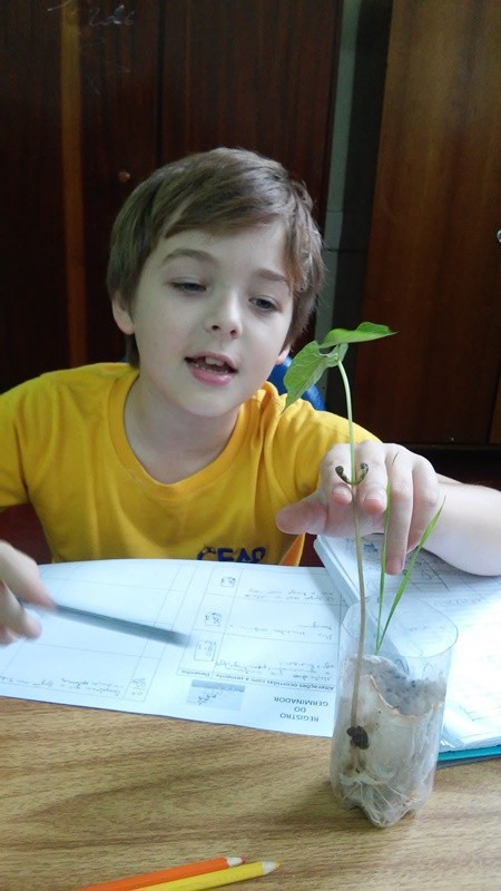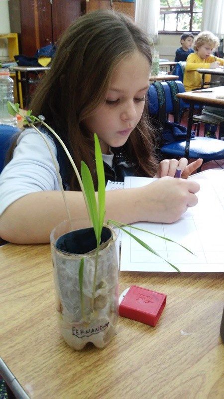 As turmas do 4º ano do Ensino Fundamental estudaram na prática como acontece o processo de germinação das sementes de plantas monocotiledôneas e dicotiledôneas, cujas semelhanças e diferenças entre elas as professoras Cristiane Bertoldo e Gilce Golnik explicaram em aula. Os alunos observaram as partes destas plantas e suas características. E aprenderam que condições uma semente precisa para germinar, numa experiência com germinadores.