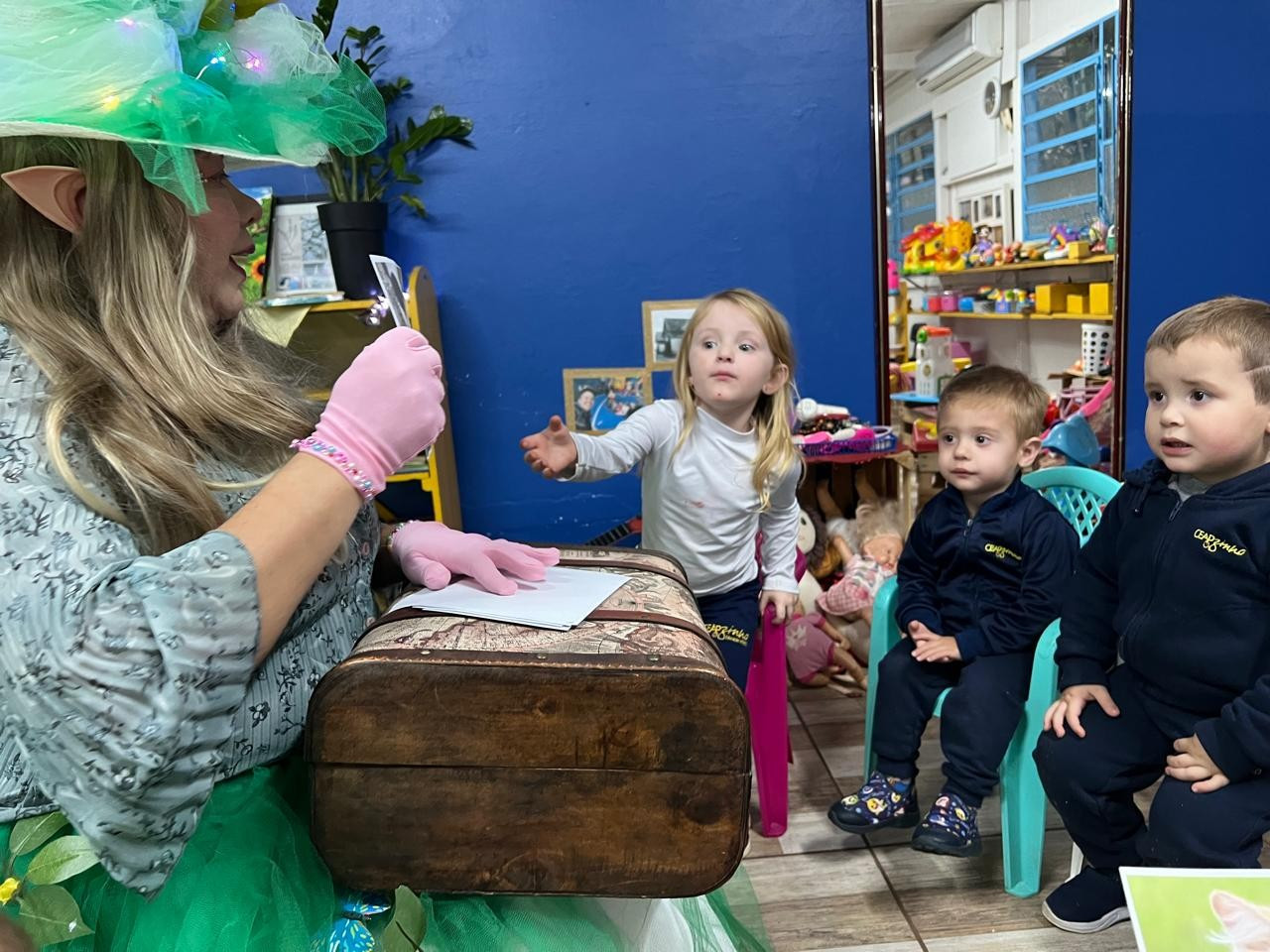 Uma vista inesperada surpreendeu as crianças do Maternal 1, no CEAPzinho, nesta quinta-feira: A fada do Campo!