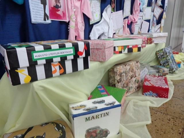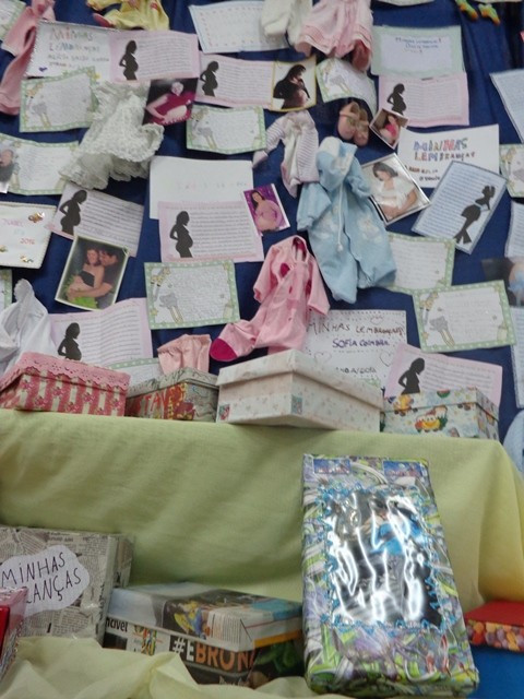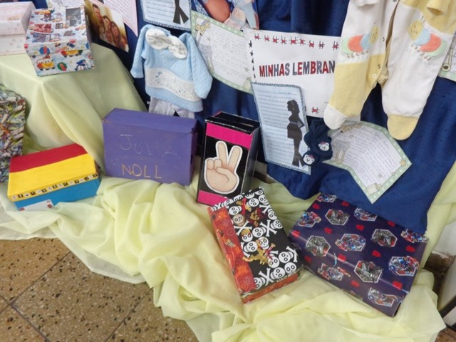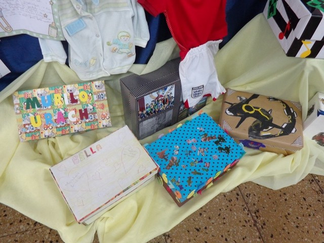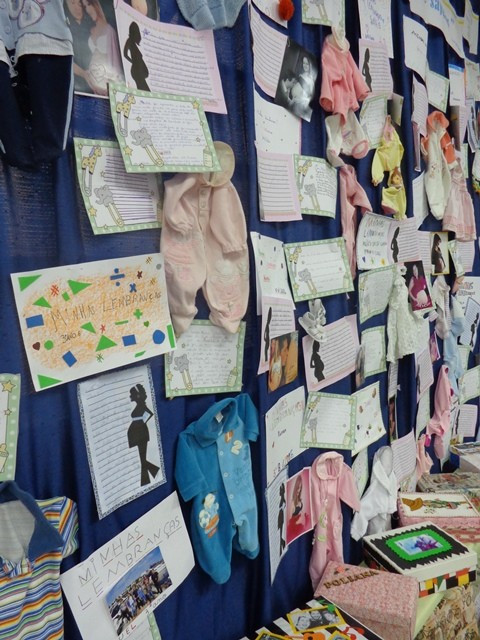 A ideia foi resgatar as lembranças de cada um. Para isso, com ajuda das famílias, buscaram informações e materiais que abordassem a gravidez, os tempos de bebê, a infância até aqui, as amizades e o convívio familiar. Cada aluno também produziu escritas sobre cada um desses momentos. Tudo está exposto no saguão. Roupas de bebê, fotos, calçados...Alguns objetos e materiais em caixas, numa alusão ao livro lido, e um varal de textos e fotos compõem o quadro que pode ser conferido na escola.