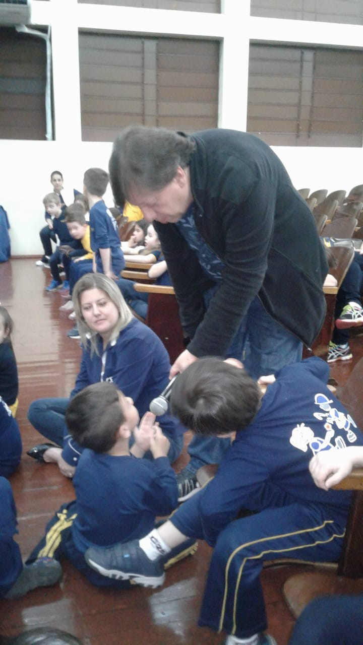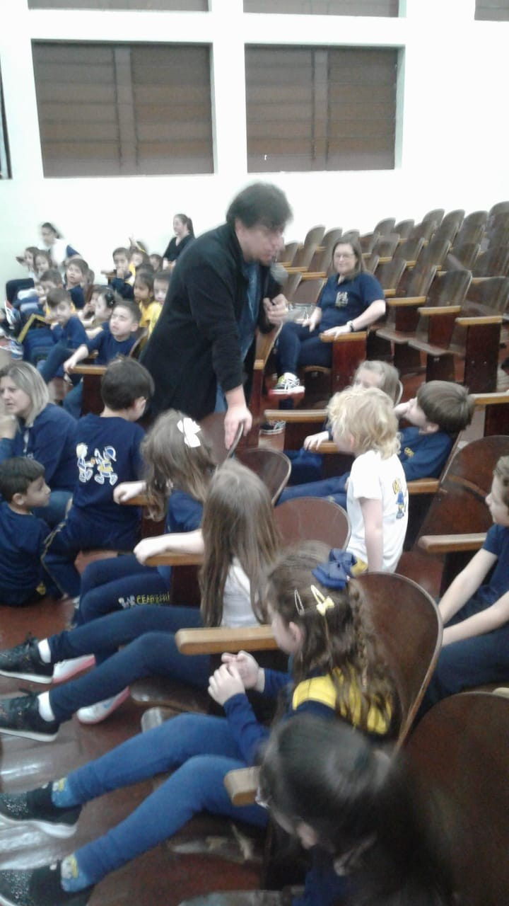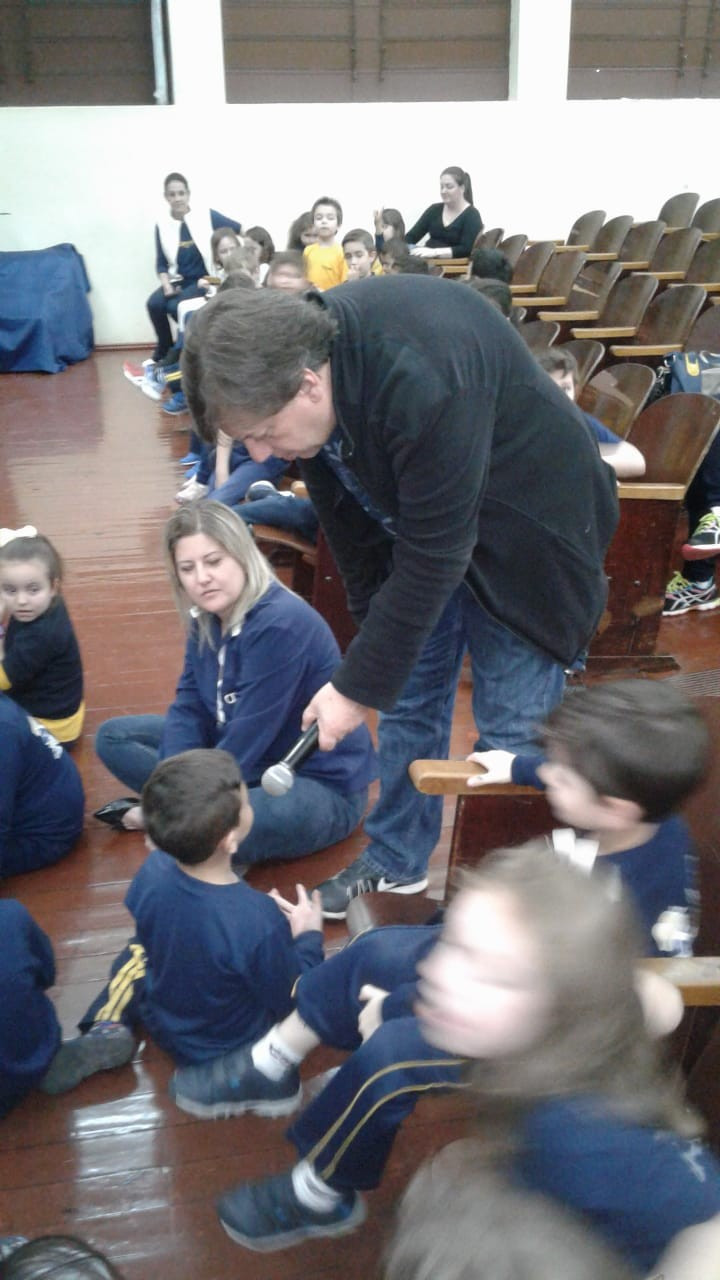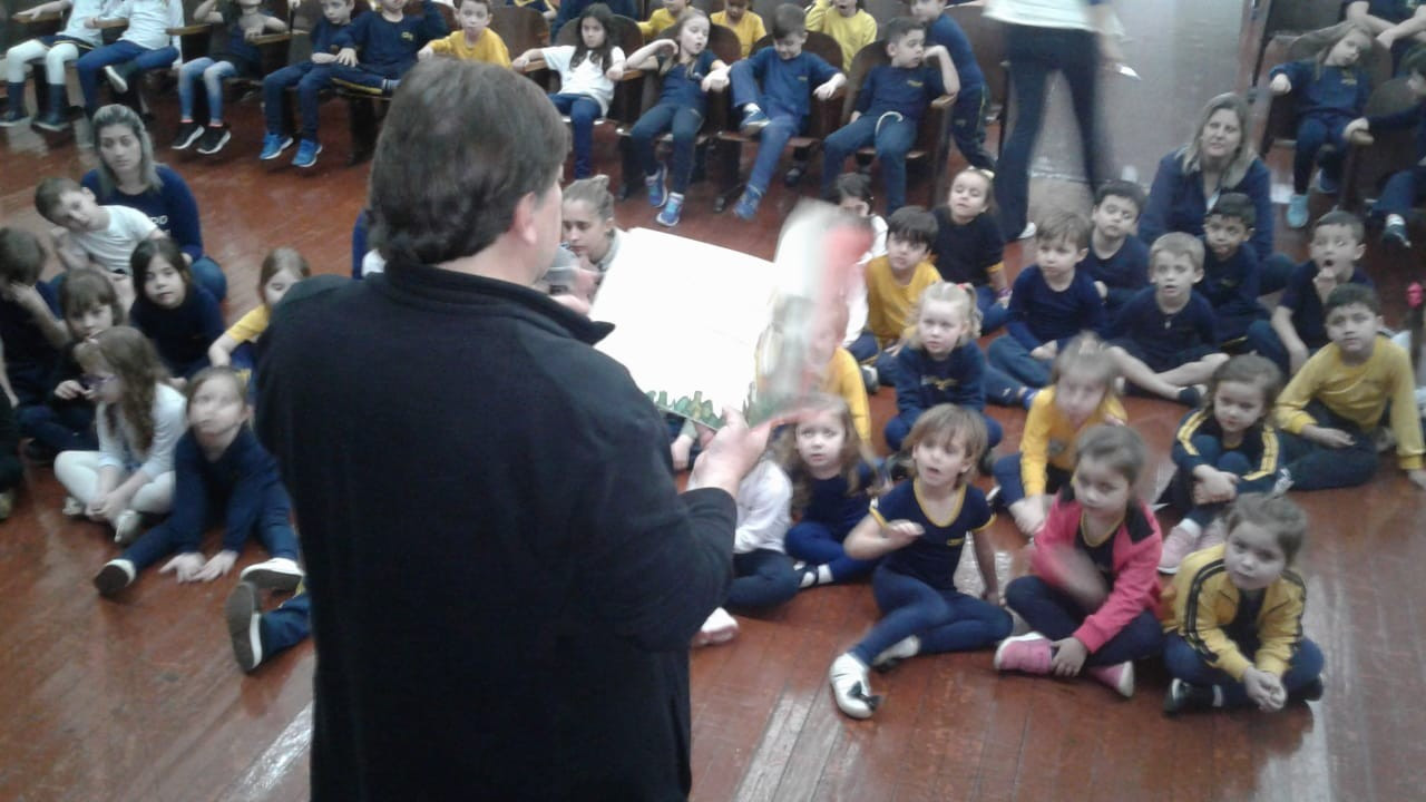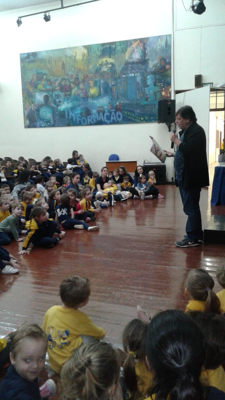 Em visita a escola o autor Leo Cunha, destinou um tempo para estar com os pequenos do CEAPzinho. Além de contar histórias e conversar com eles no auditório, fez questão de visitar e conferir de pertinho o trabalho da Mostra Pedagógica desenvolvido a partir da leitura de suas obras.