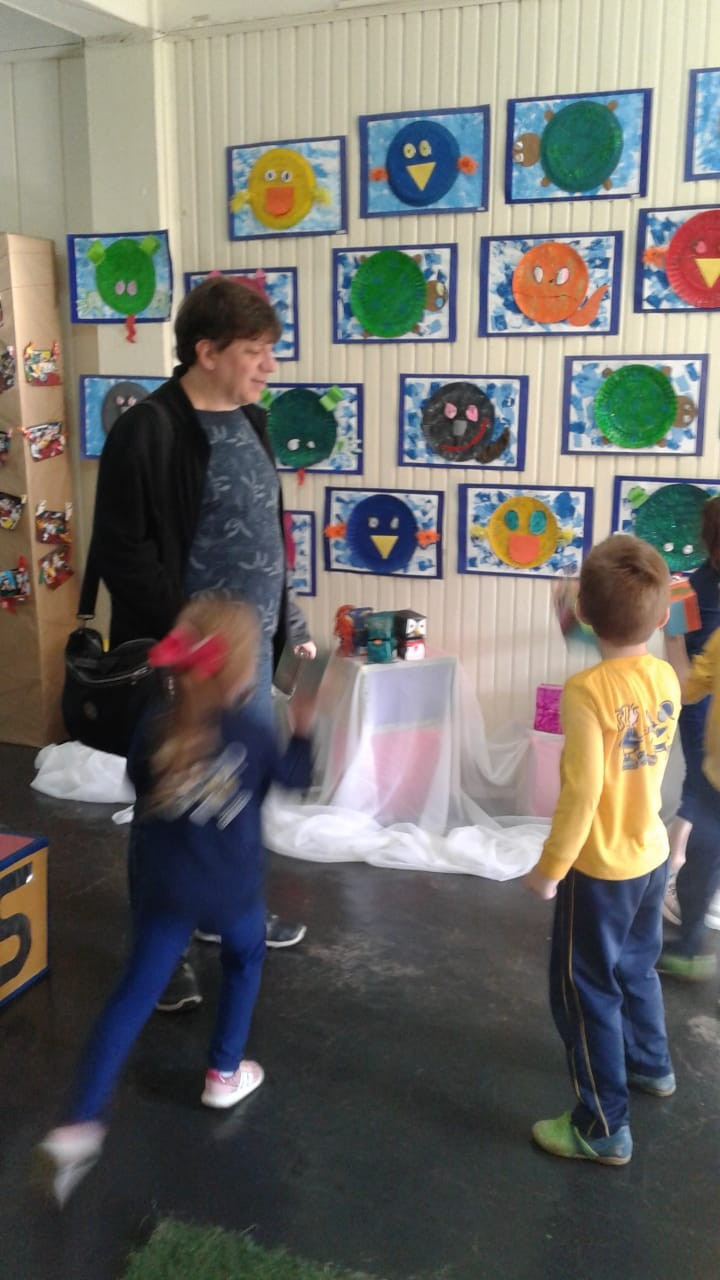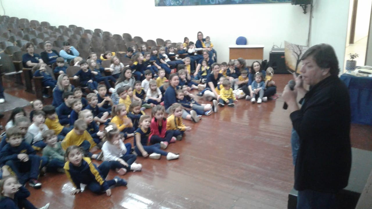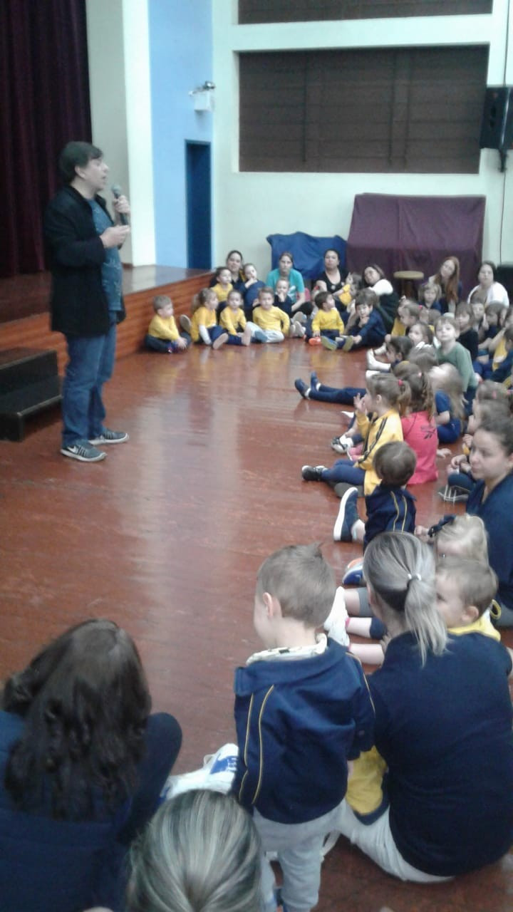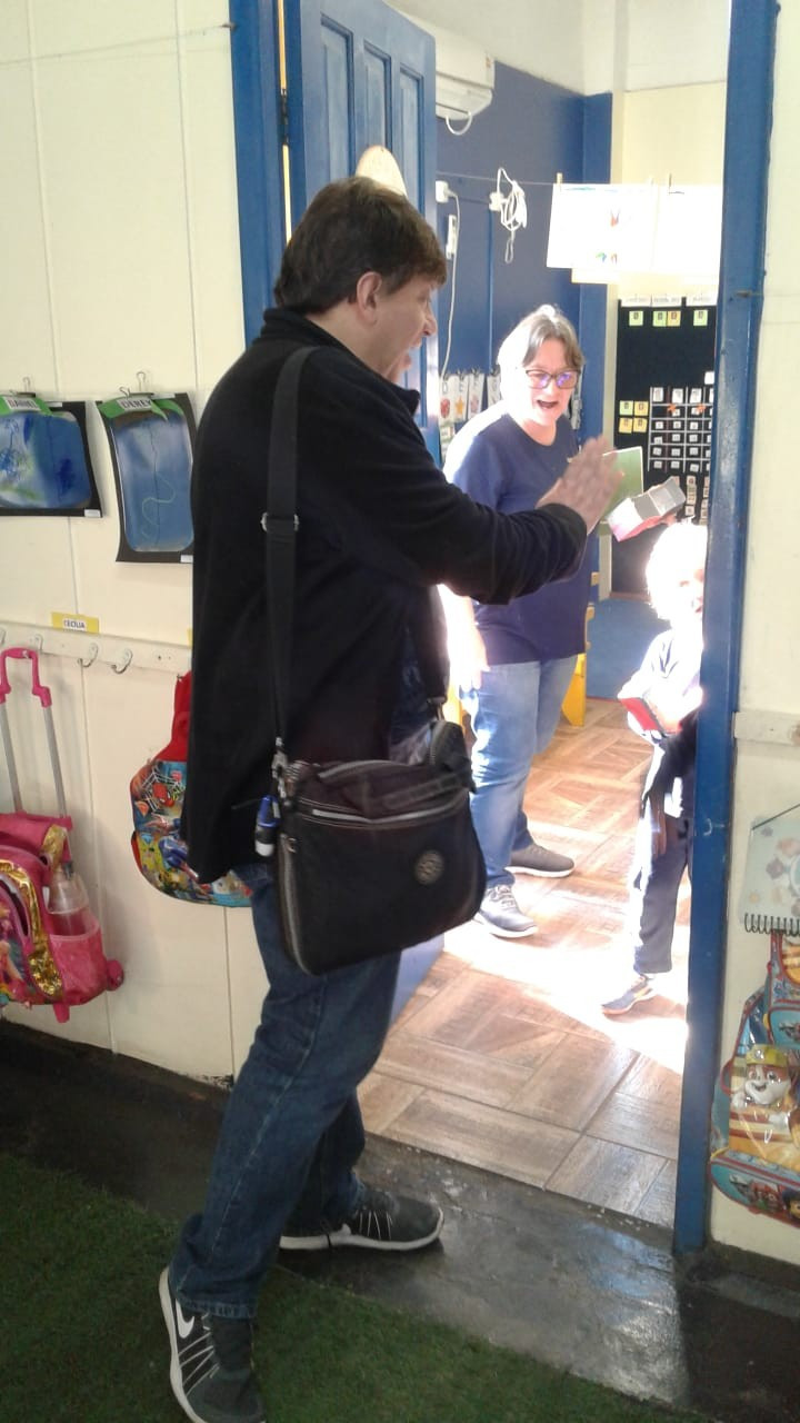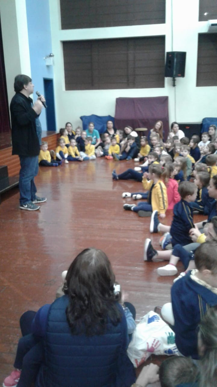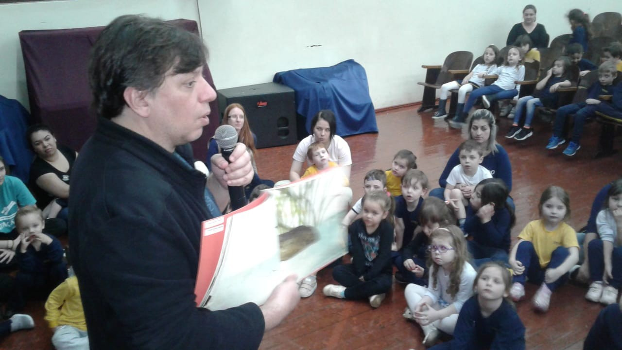 Em visita a escola o autor Leo Cunha, destinou um tempo para estar com os pequenos do CEAPzinho. Além de contar histórias e conversar com eles no auditório, fez questão de visitar e conferir de pertinho o trabalho da Mostra Pedagógica desenvolvido a partir da leitura de suas obras.
