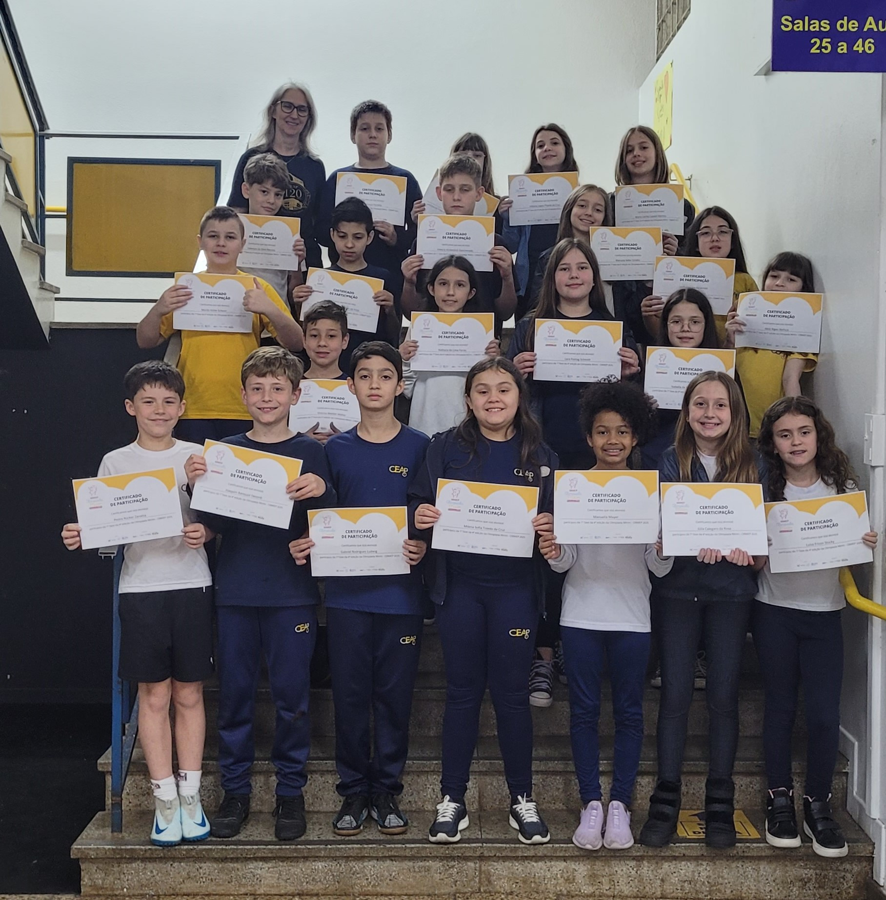 No dia 16 de outubro todos estudantes envolvidos receberam o Certificado de Participação. Também foram anunciados os participantes da 2ª etapa, em 11 de novembro, no CEAP, os quais concorrem a medalhas de Ouro, Prata e Bronze.