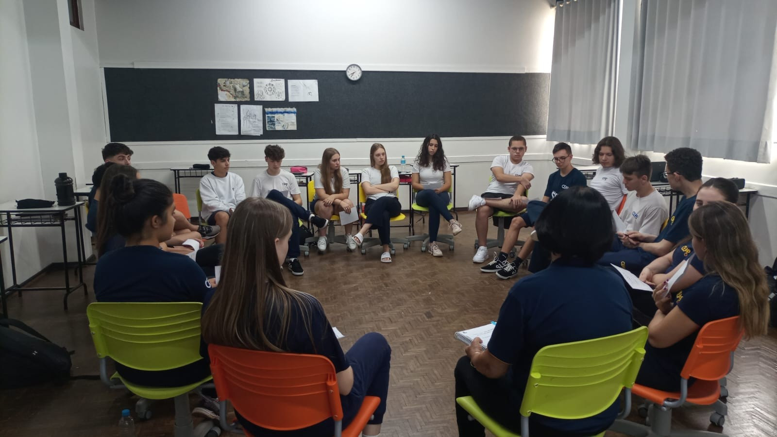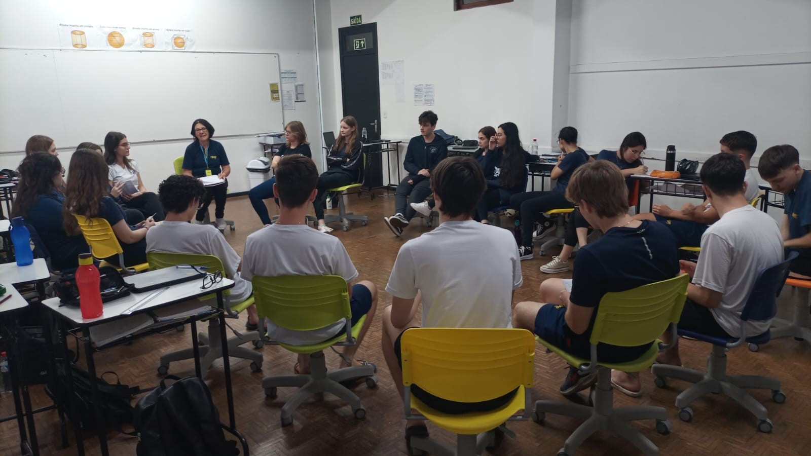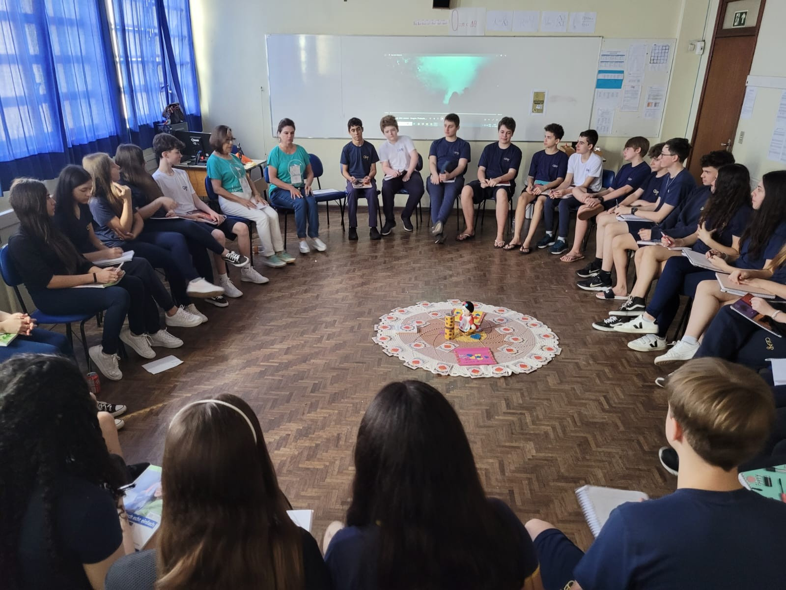 Ainda, neste mesmo dia, os estudantes do oitavo ano mergulharam em uma prática restaurativa repleta de emoções e projeção, com vistas à transição para o nono ano.
