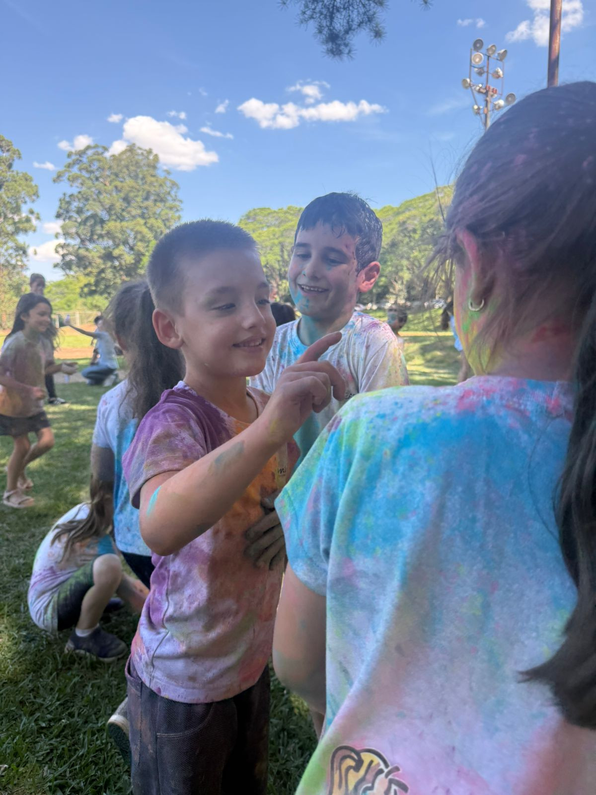 Em conexão com a Natureza, as crianças divertiram-se na Festa das Cores. O objetivo do evento foi celebrar, de forma lúdica e afetiva, todo o percurso construído pelas crianças durante o ano, valorizando as aprendizagens, a autonomia, as investigações e o encantamento característicos da Educação Infantil. A vivência, também marcou oficialmente o encerramento deste ciclo, simbolizando a passagem para uma nova etapa escolar.