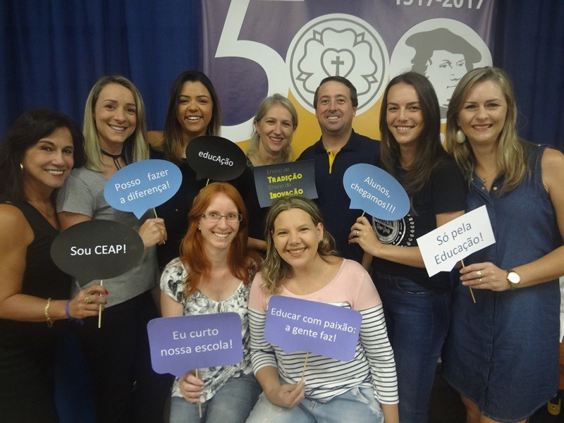 A quarta-feira marcou o retorno ao trabalho dos professores do CEAP. A recepção, no início da manhã, foi marcada pela alegria dos reencontros. E a turma posou com plaquinhas indicando o desejo de realizar um ano letivo de muita produção e construção junto com os alunos (fotos na fanpage e aqui no site). Logo depois, no auditório, após a saudação inicial do diretor Gustavo Malschitzky, o pastor escolar Alberto Gallert fez uma breve reflexão com a turma. Destacou a importância do incentivo de uns para com os outros ao longo do ano, para que os desafios e metas sejam alcançados coletivamente.