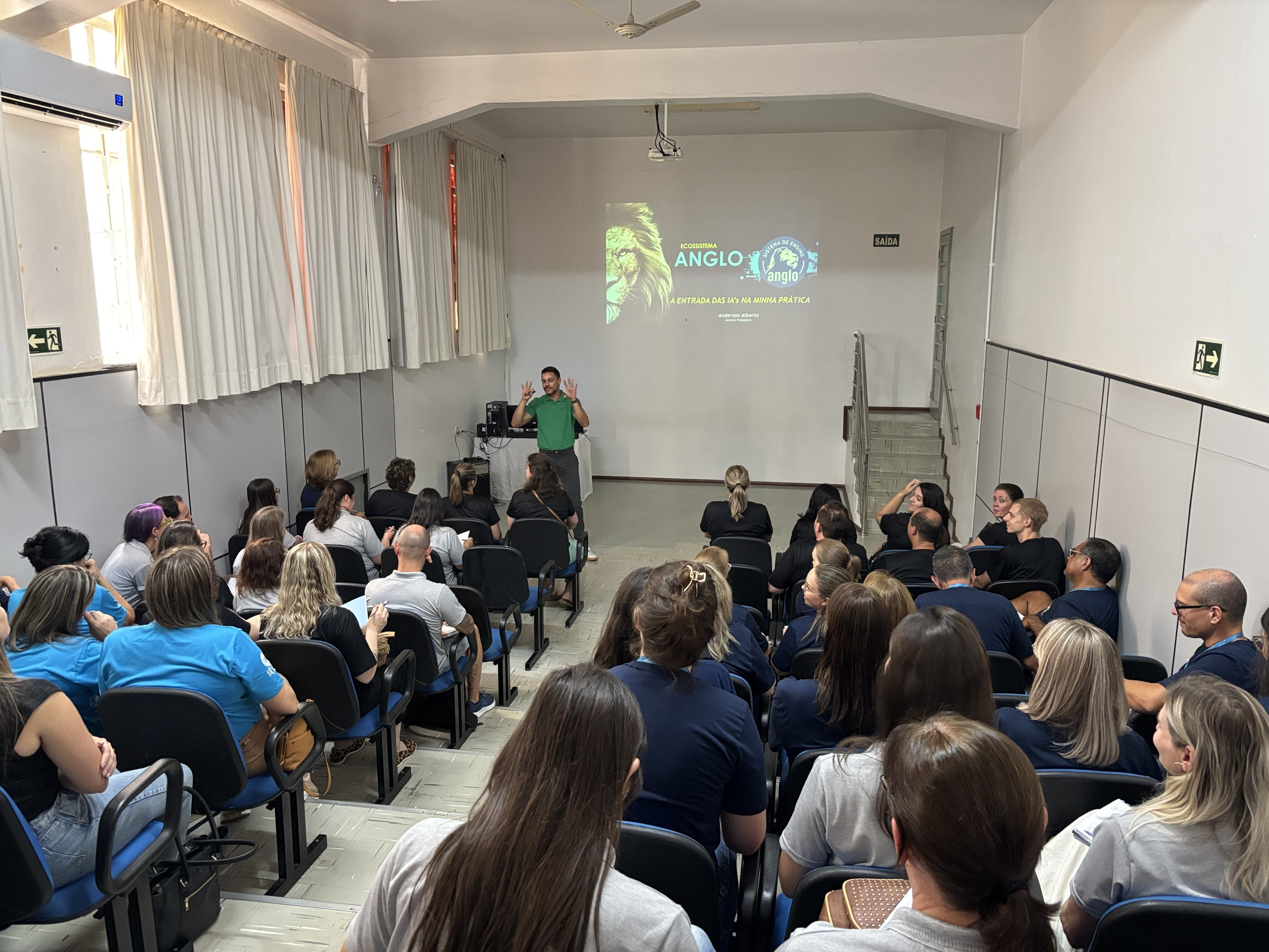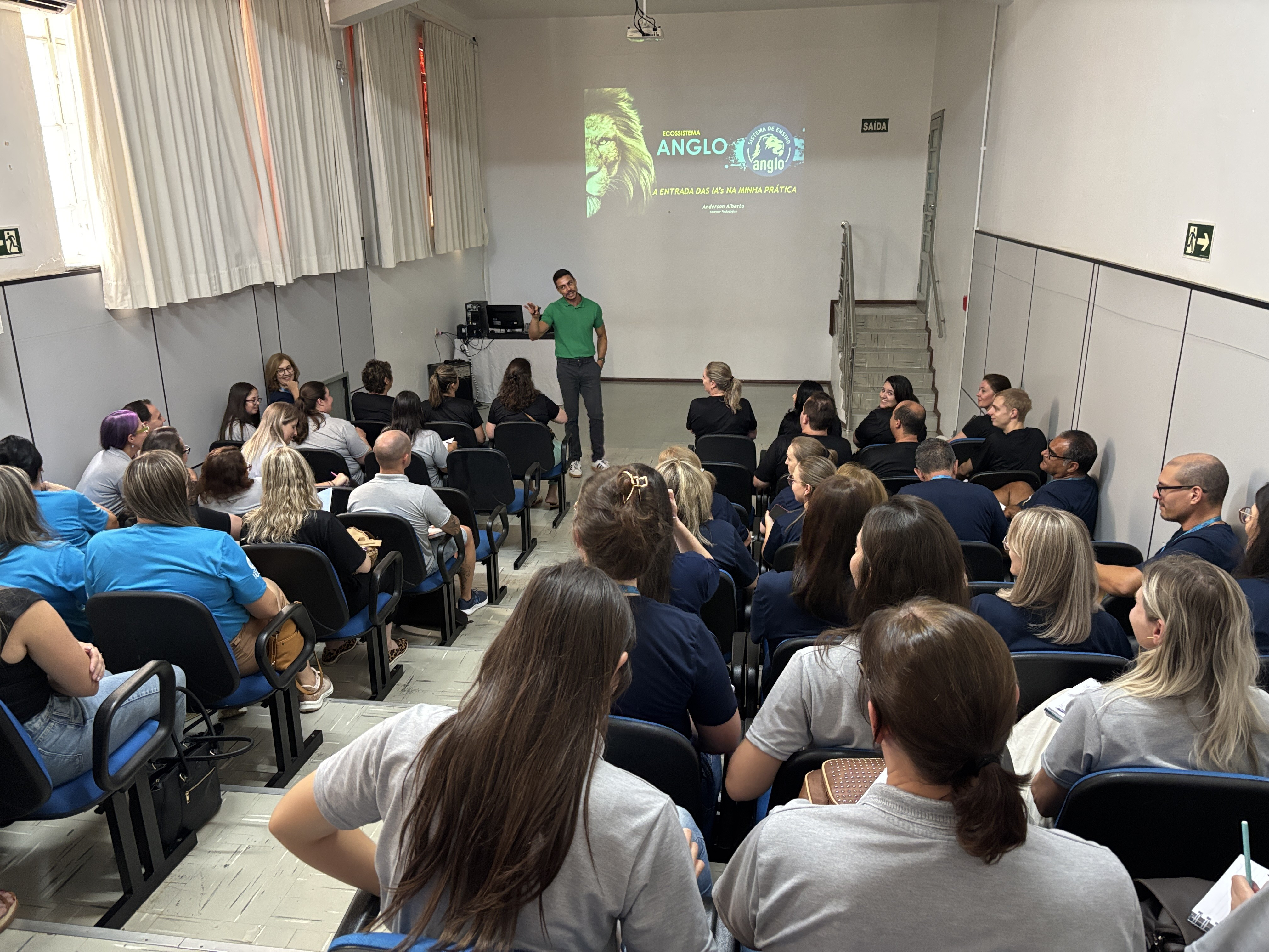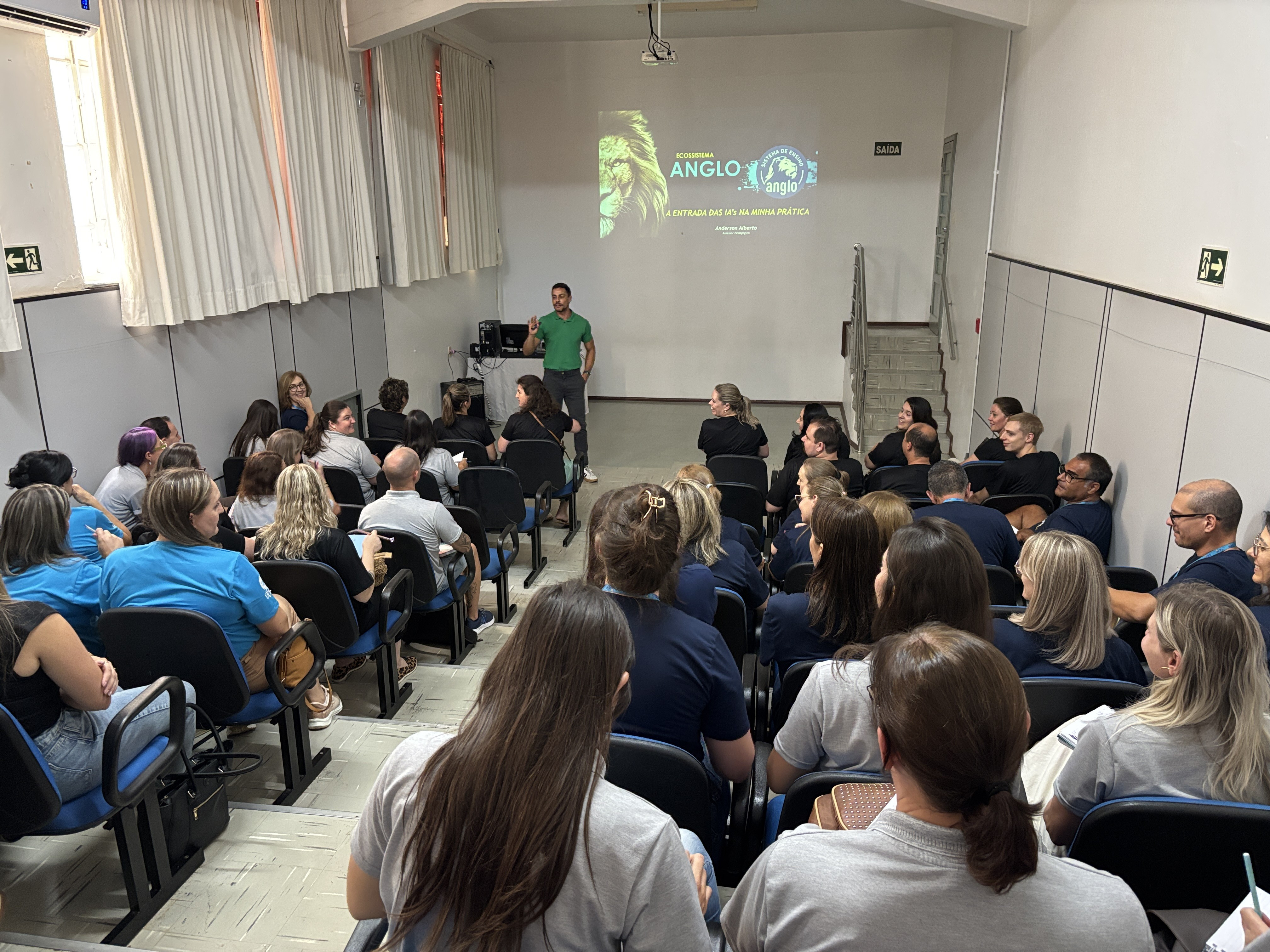 Um dos destaques da programação foi a Formação Anglo, realizada no dia 12 de fevereiro, com foco na qualificação do corpo docente para a implementação do material didático e metodologias inovadoras. Os temas: Fases do Desenvolvimento da Criança e do adolescente e Alta Performance em Sala de Aula, foram tratados pela Assessora Rosane Maria da Silva enquanto o tema da fala do Assessor Anderson Alberto da Silva, foi a Entrada do Plural IA na Minha Prática.