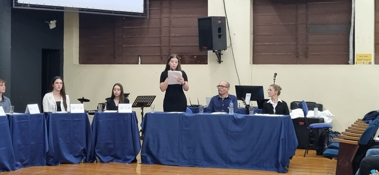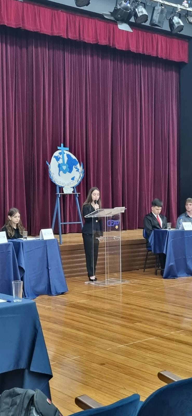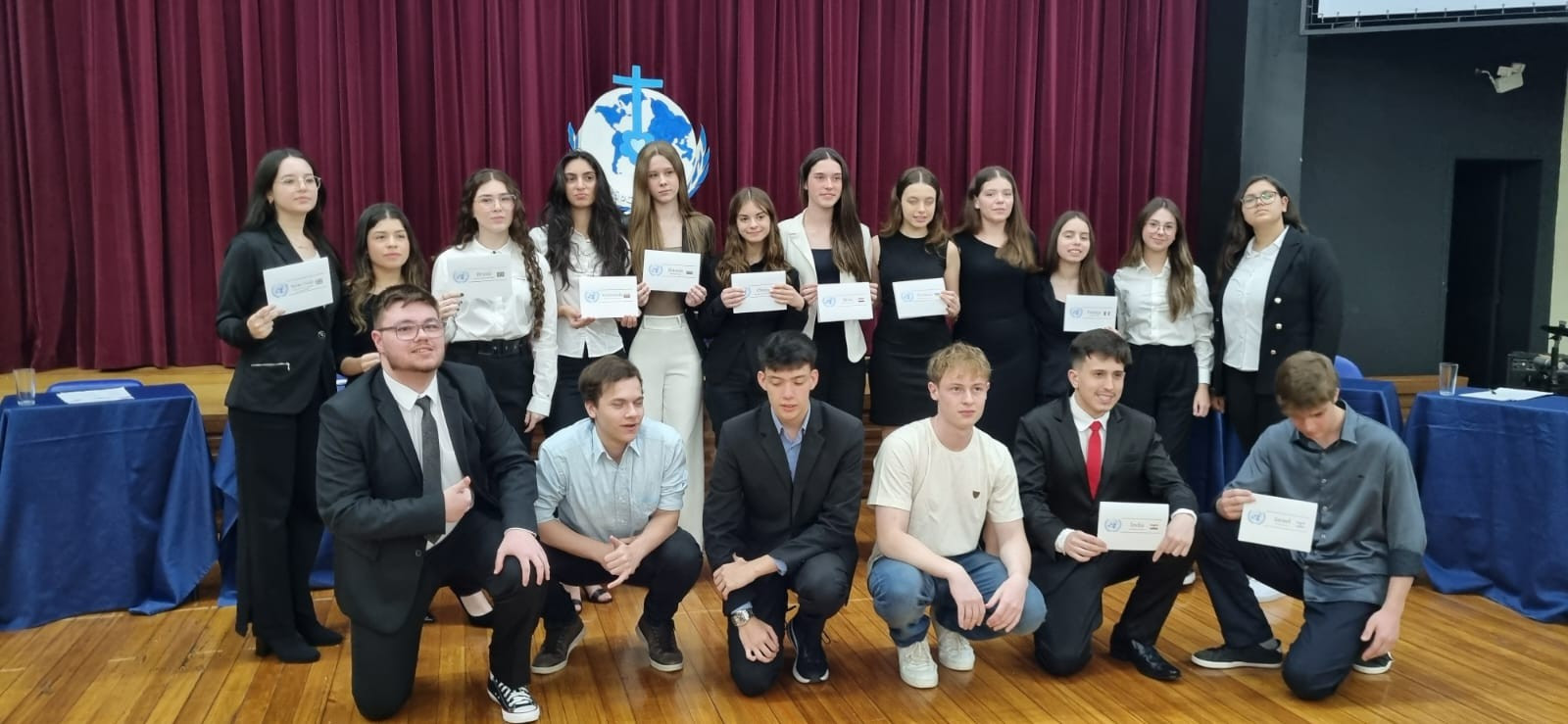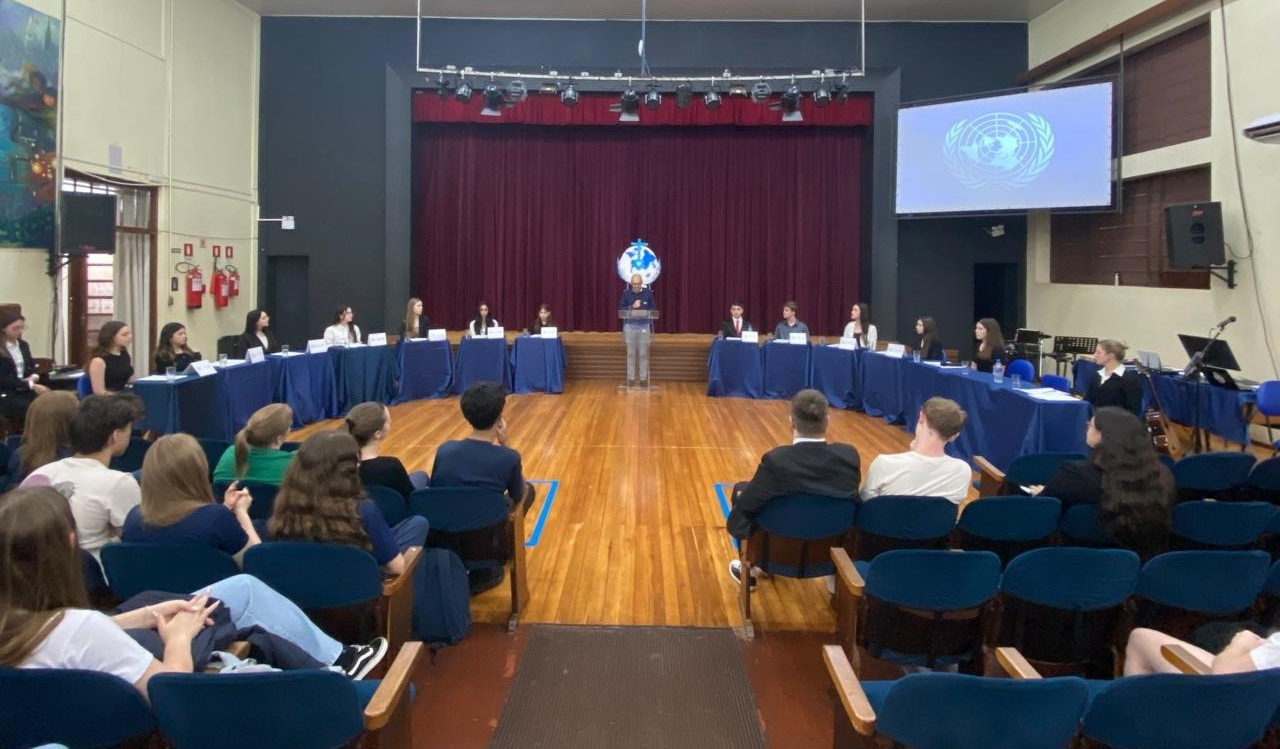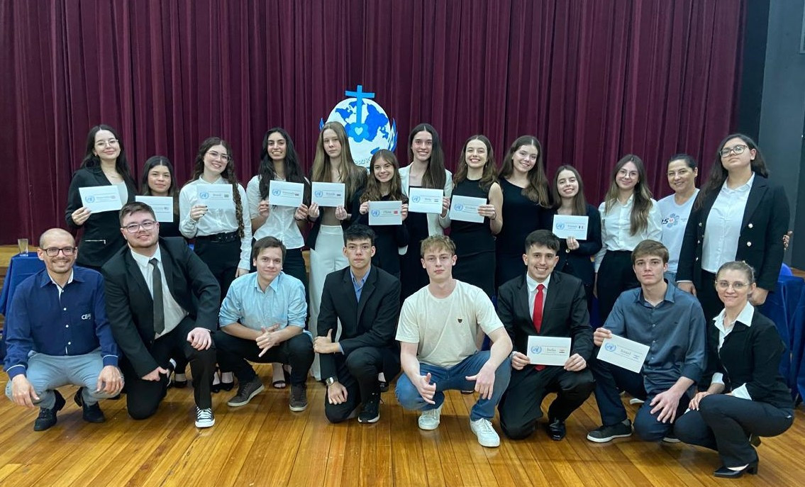 A atividade foi acompanhada pelos professores das áreas de Ciências Humanas e Linguagens, Uiliam Michael, Valdete Mülbeier, Ítalo Drago e Fabiana Bronzato, que orientaram os estudantes no desenvolvimento de estratégias de debate, redação de discursos e construção de argumentos. Além disso, os alunos demonstraram criatividade na caracterização de suas delegações, tornando a experiência ainda mais imersiva.