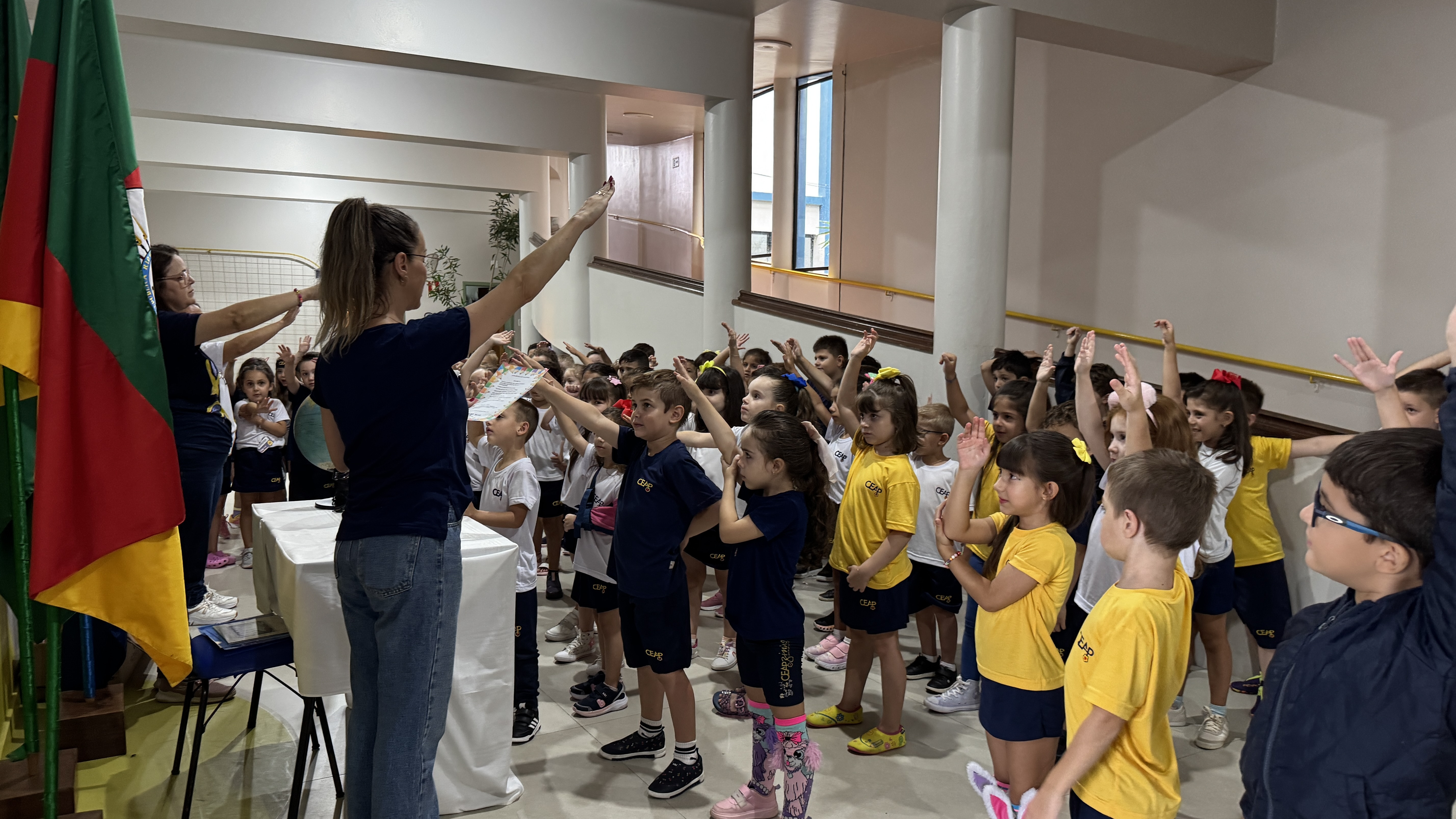 O momento culminou em um juramento simbólico, no qual os pequenos estudantes assumiram o compromisso de cuidar do material e dedicar-se, com responsabilidade, à construção de sua trajetória escolar.