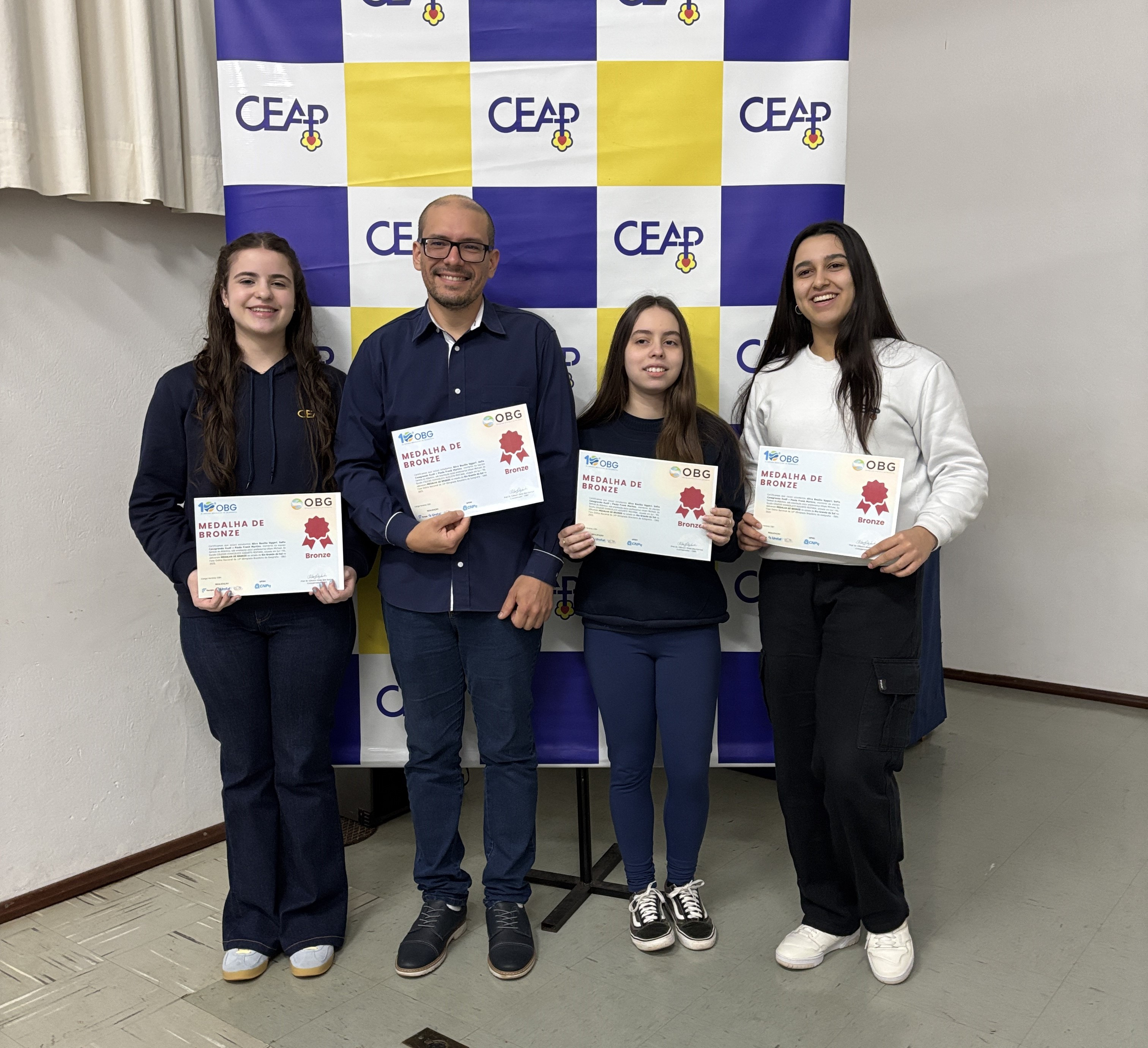 Mais uma vez, o Colégio Evangélico Augusto Pestana (CEAP) de Ijuí comemora o excelente desempenho de seus estudantes, orientados pelo professor Uiliam Michael, que já havia orientado medalhistas na edição anterior. Nesta edição, nas três fases online da OBG, o CEAP alcançou resultados expressivos: